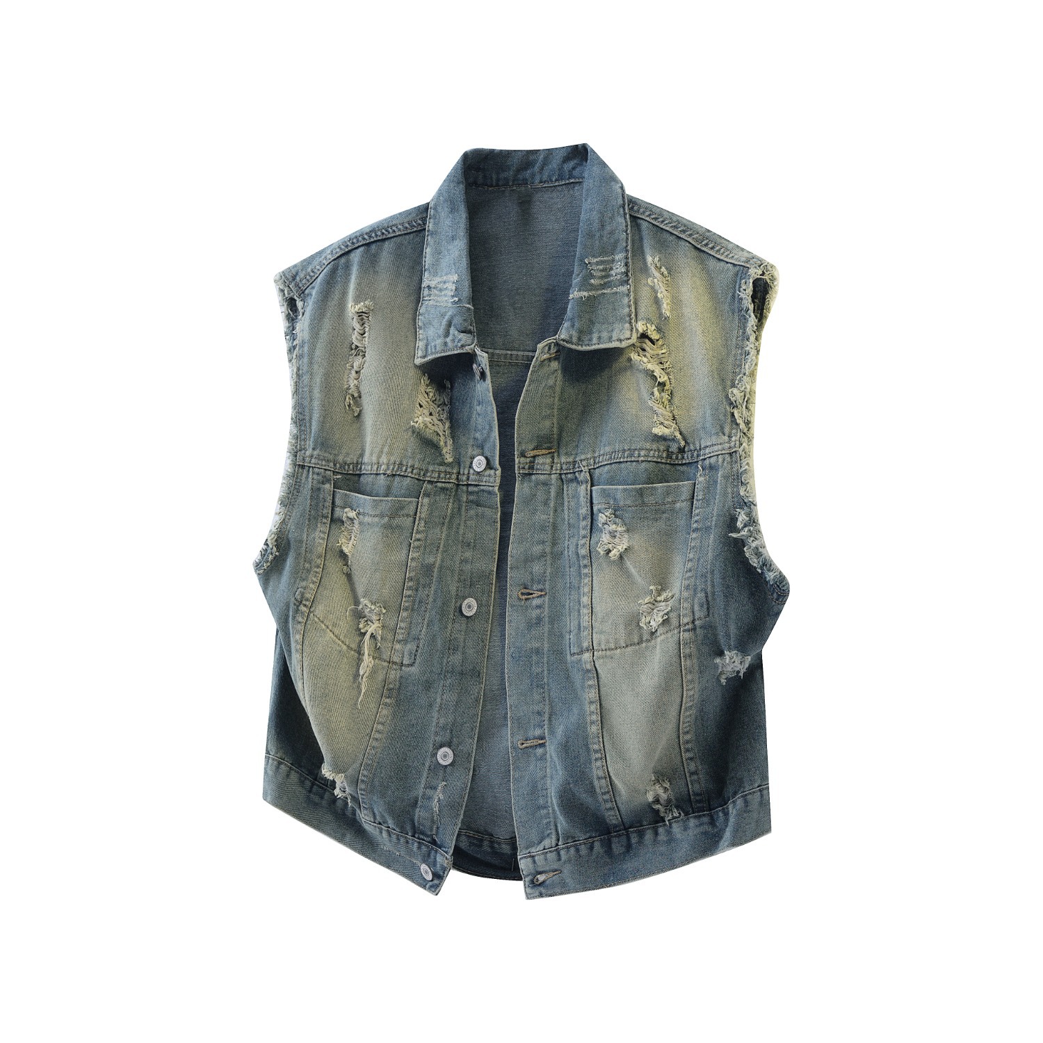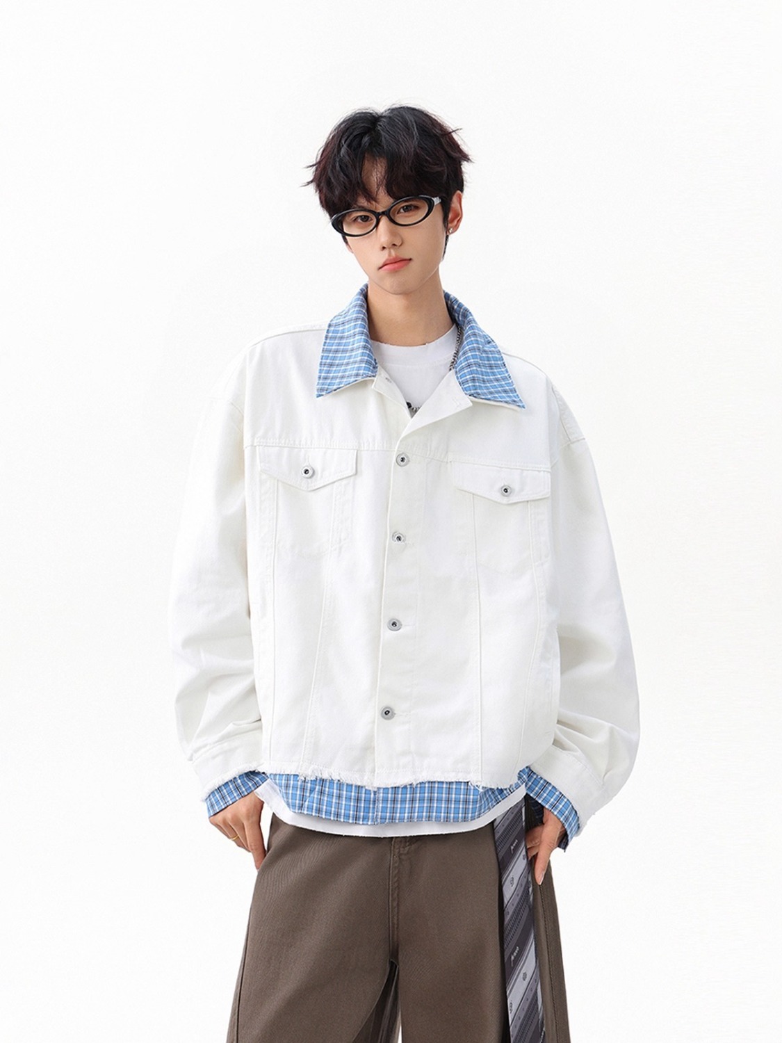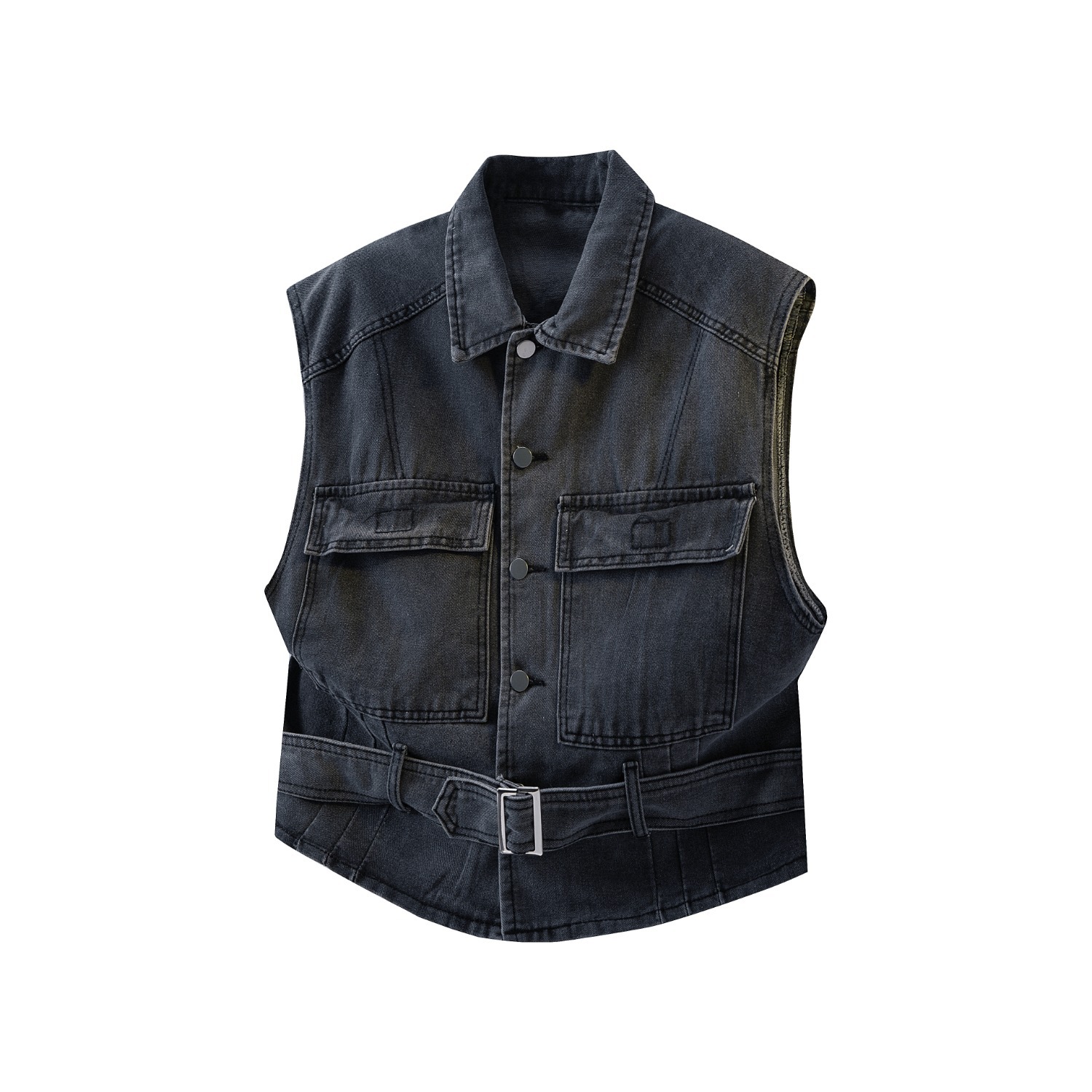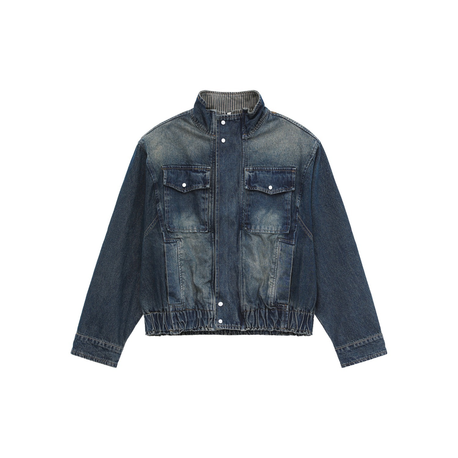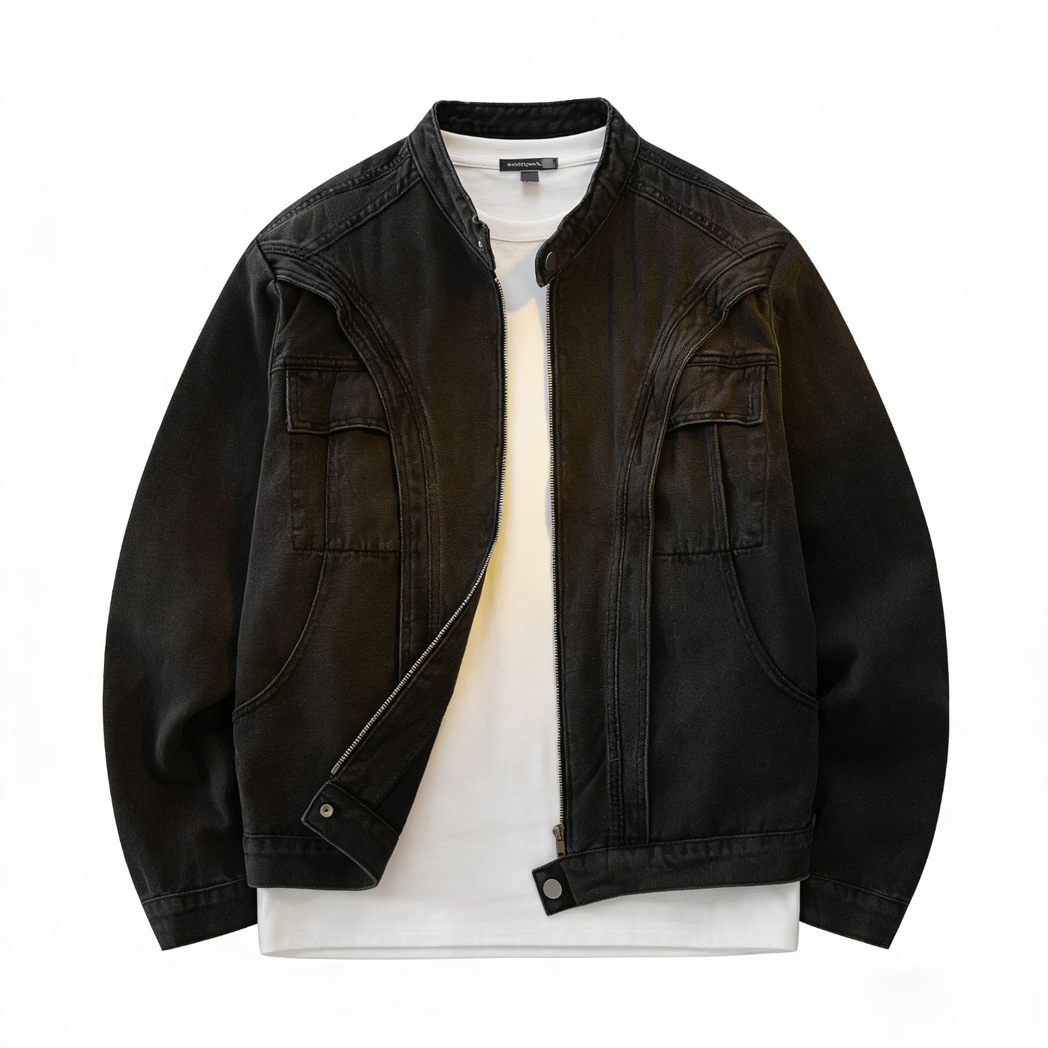 2024 새로운 미니멀리스트 프로필 틈새 하이 엔드 쇼트 데님 재킷 남자 복고풍 세탁 디자인 숄더 패드 재킷