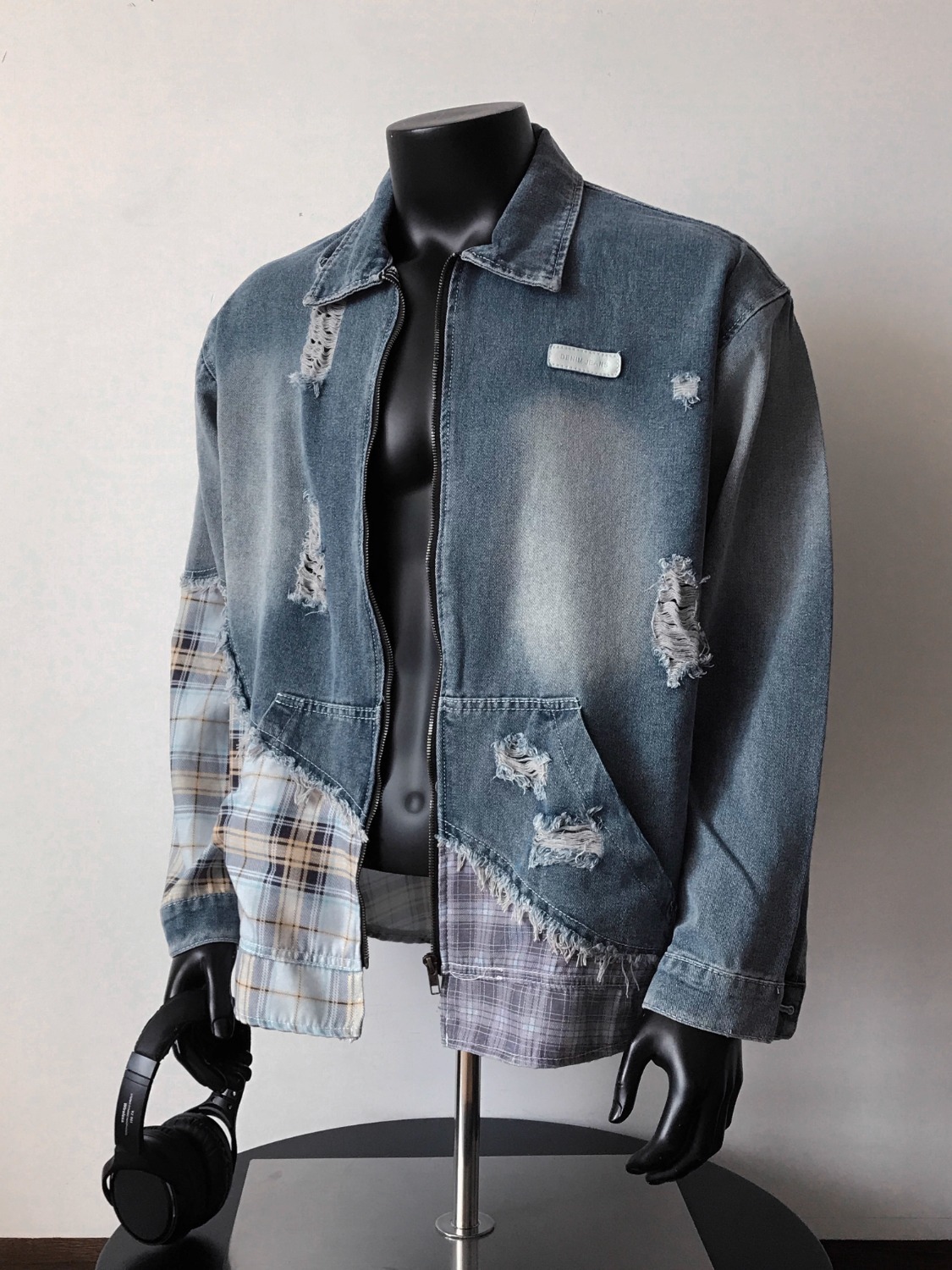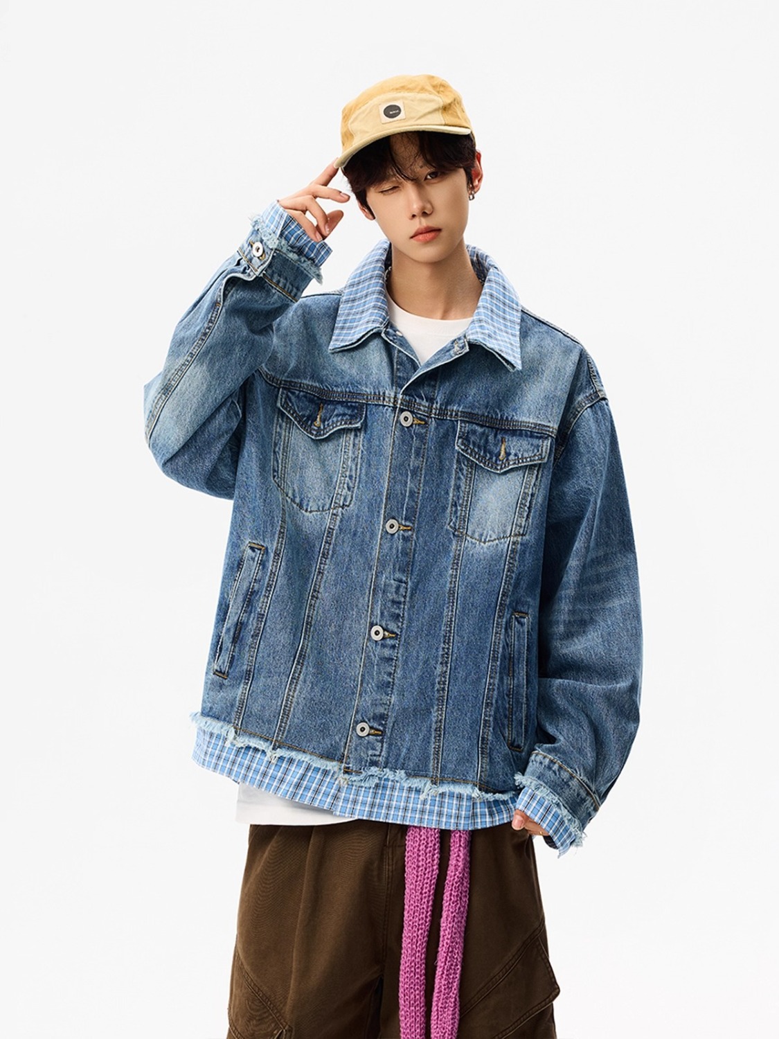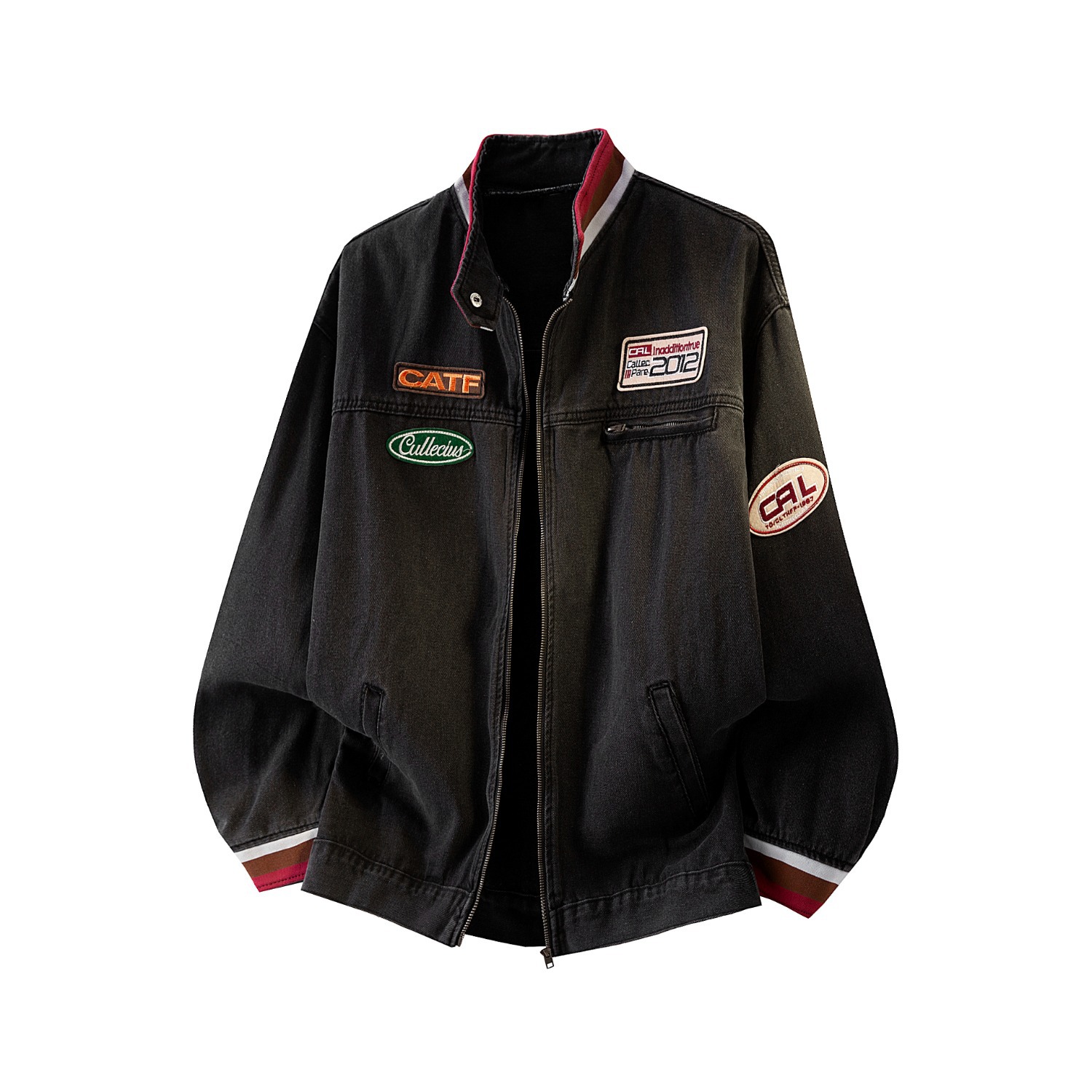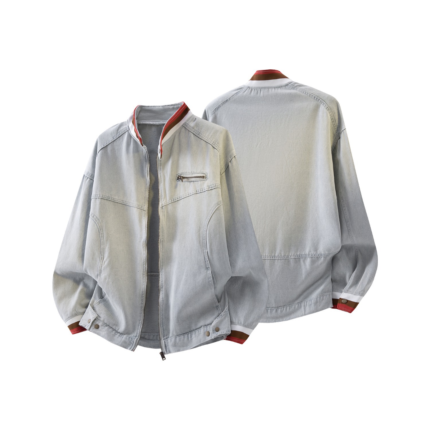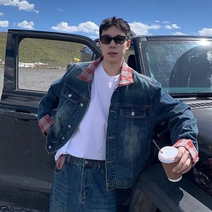 2024 새로운 미니멀리스트 프로필 틈새 하이 엔드 쇼트 데님 재킷 남자 복고풍 세탁 디자인 숄더 패드 재킷스토어 가기