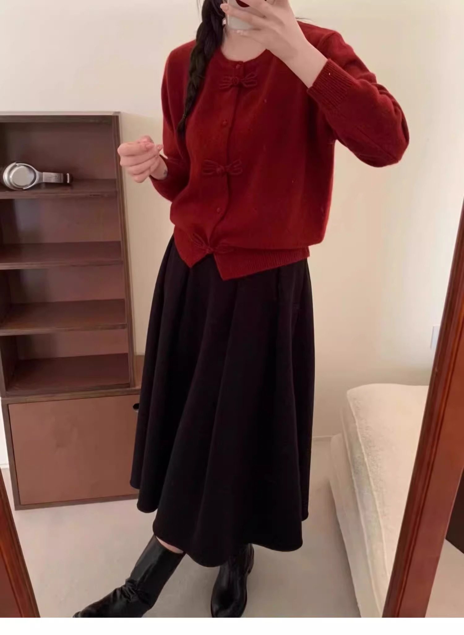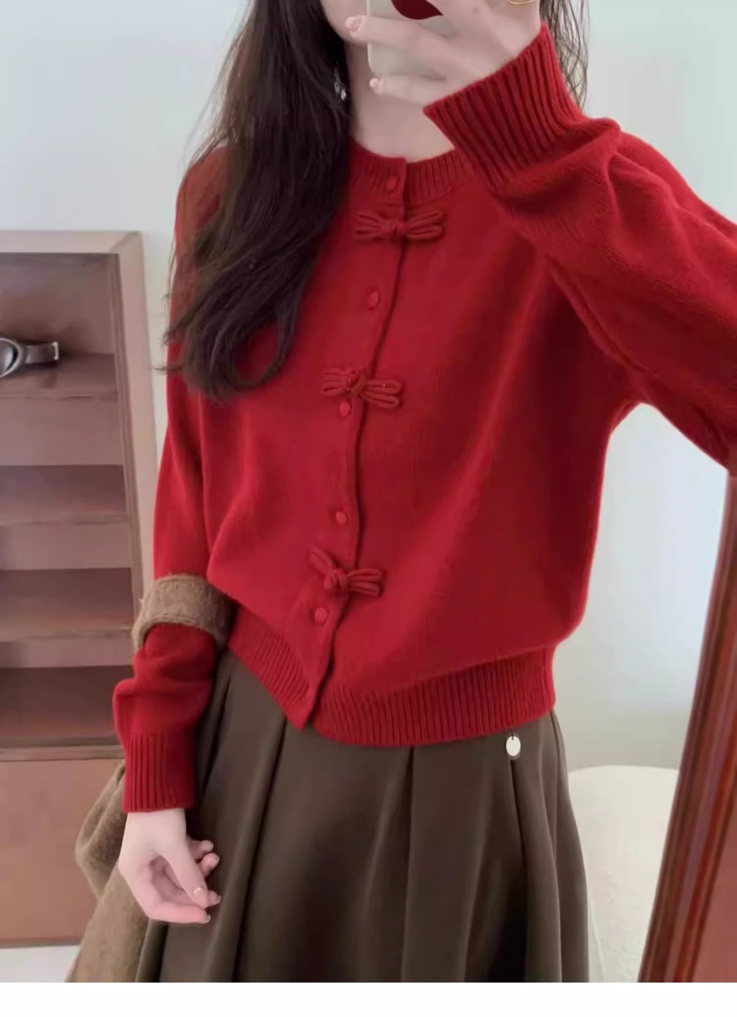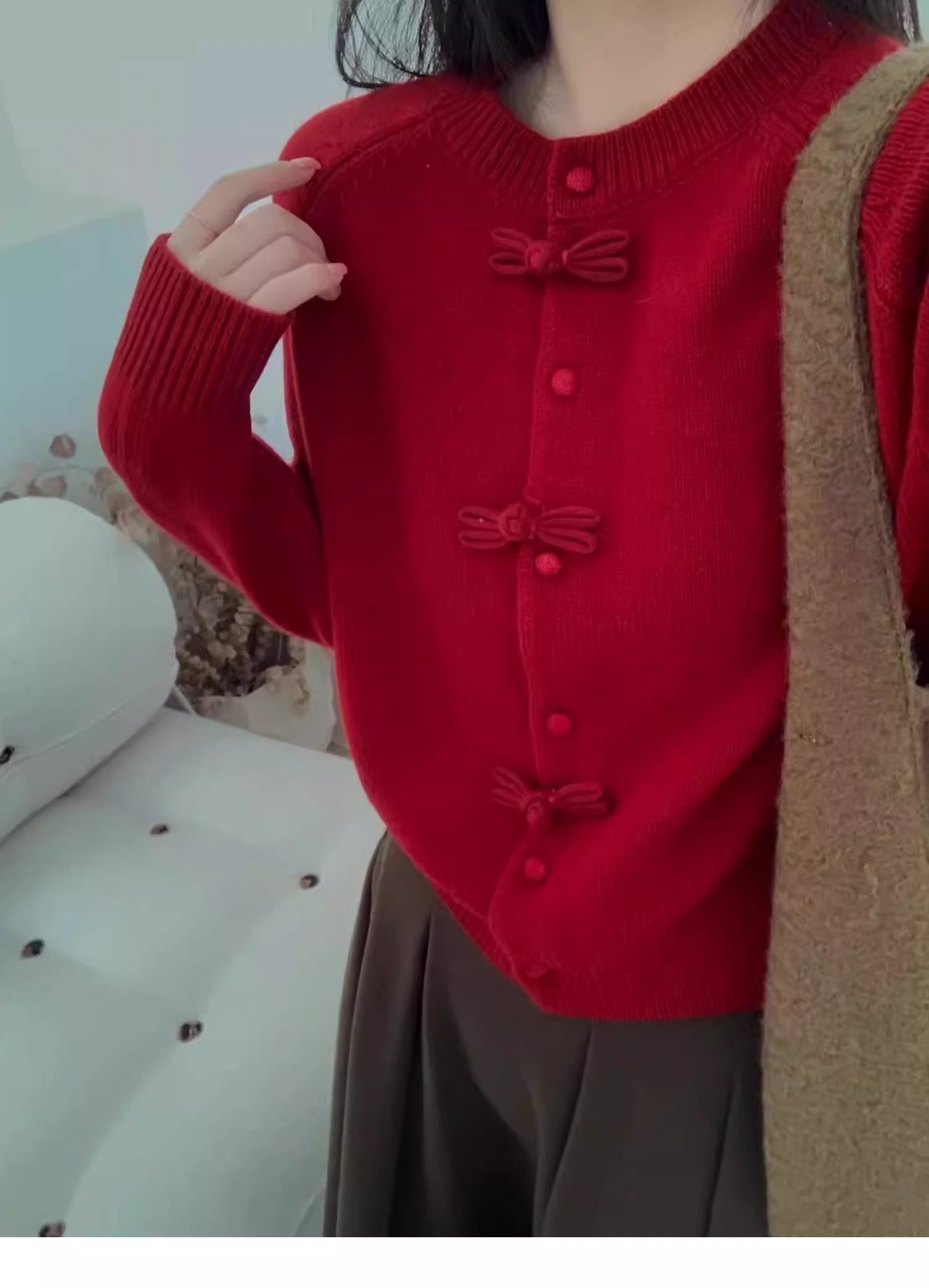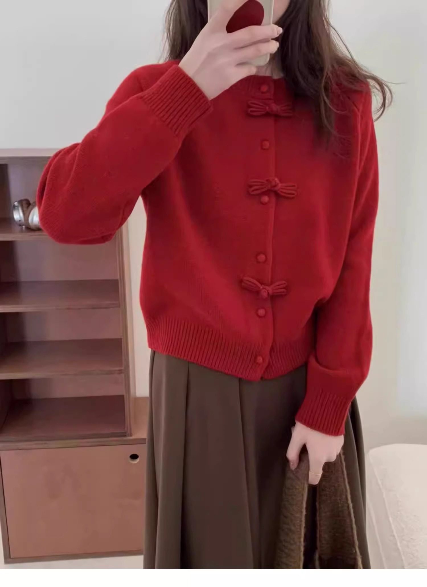 새해 빨간 활 버튼 국가 스타일 니트 카디건 여성 유럽 역 여름 스웨터 코트 디자인 탑스토어 가기