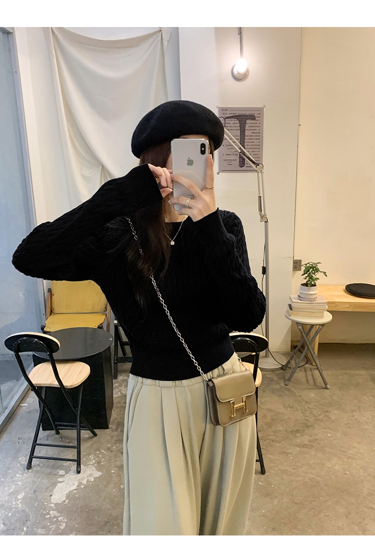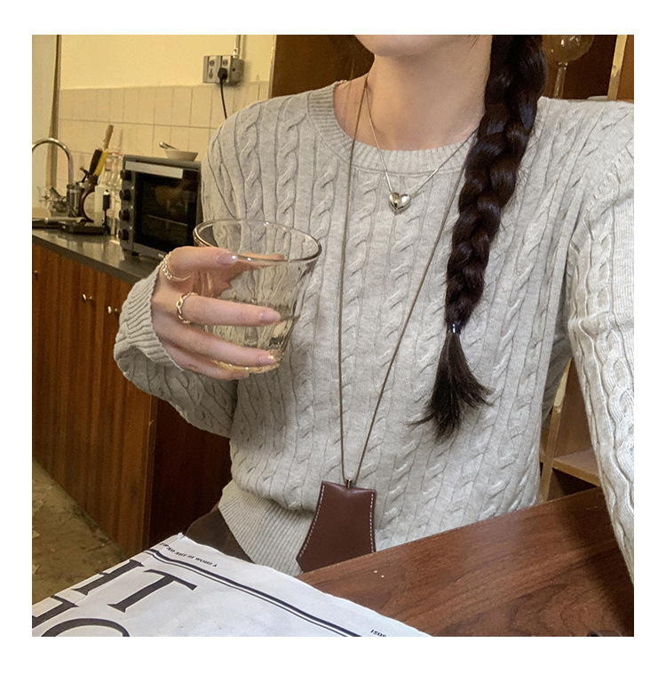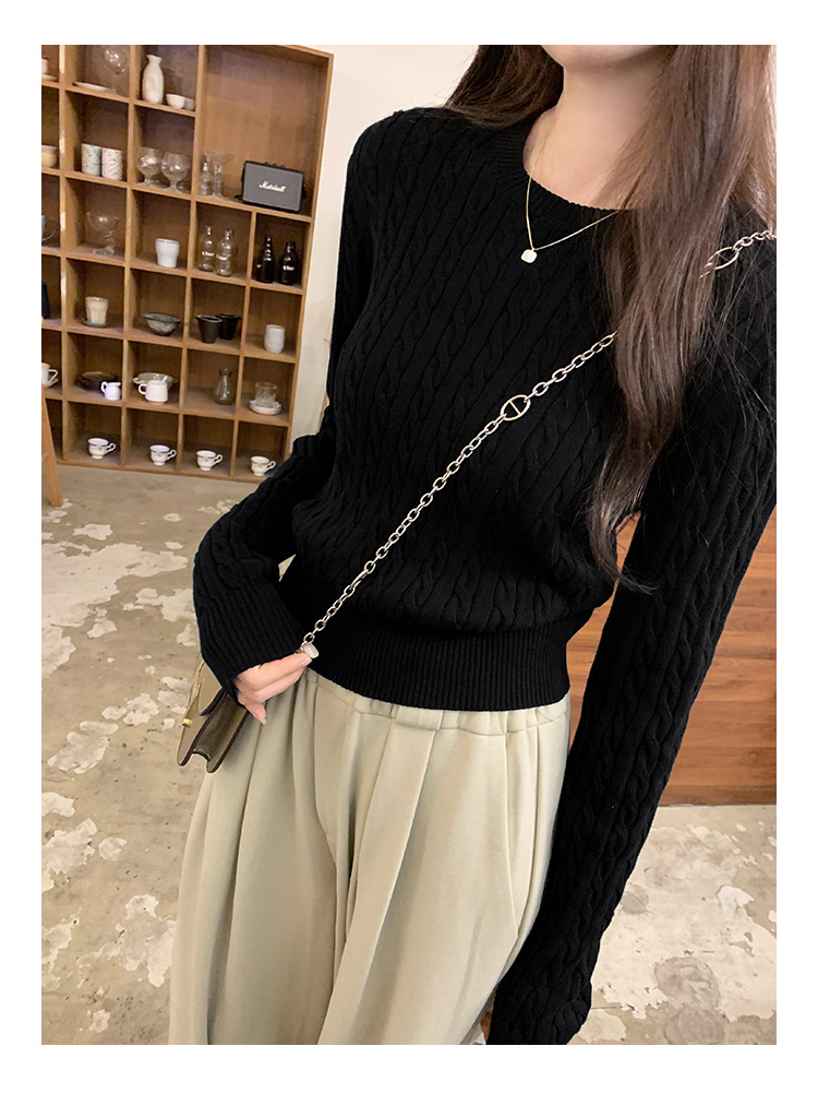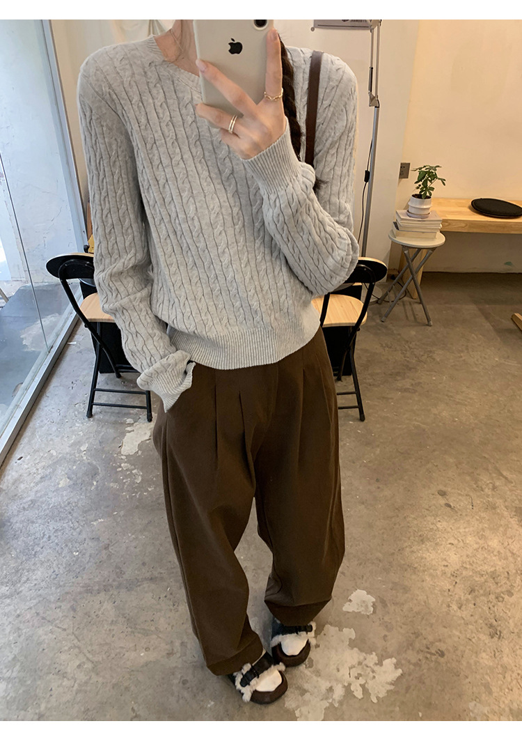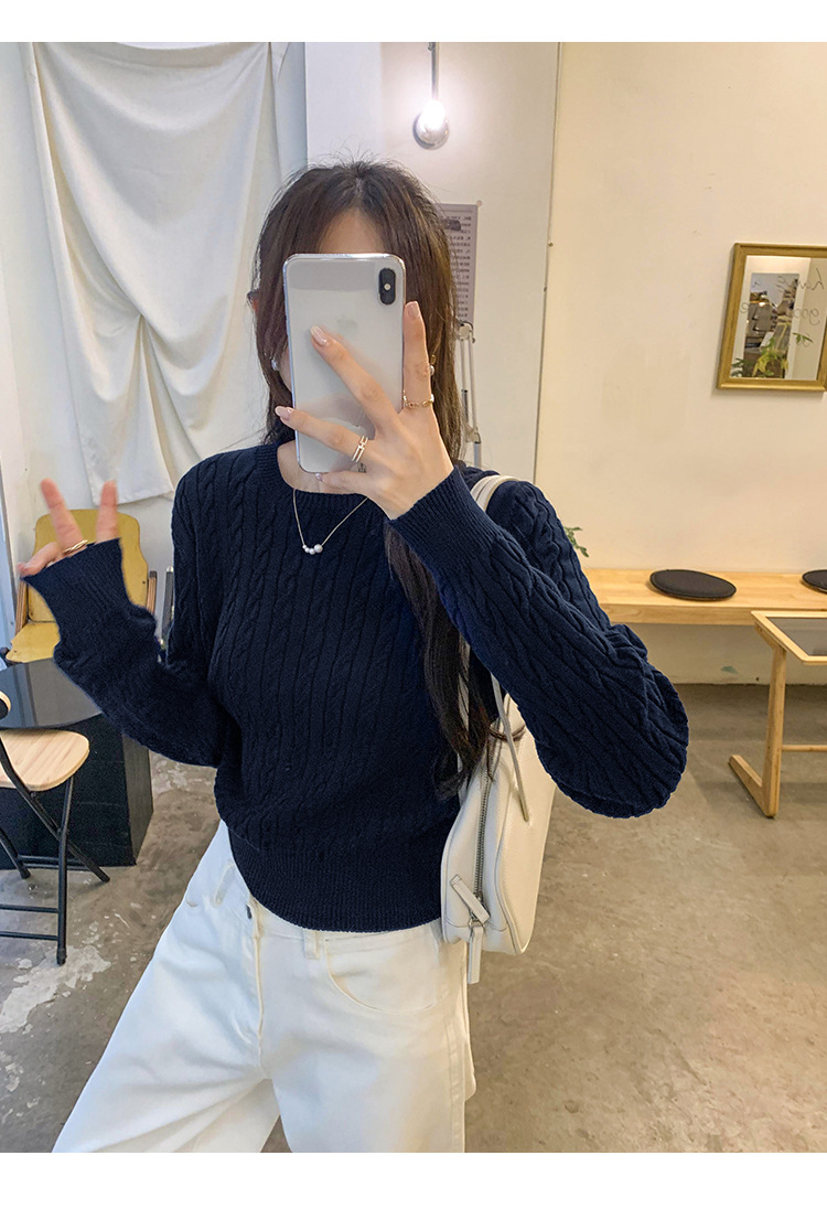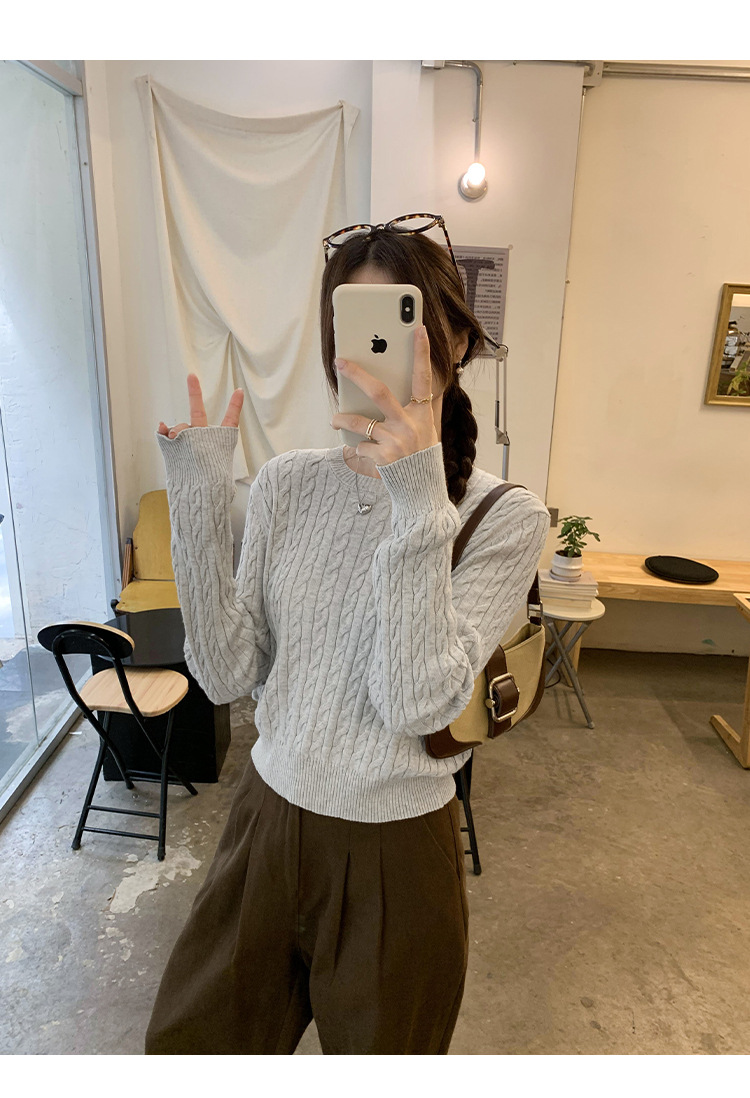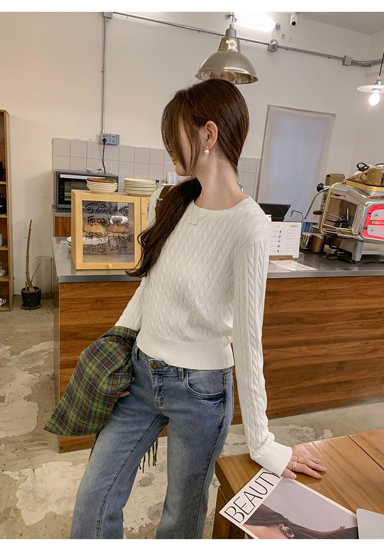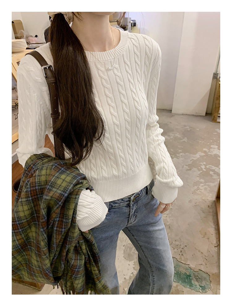 빈티지 트위스트 풀오버 스웨터 면 하이 엔드 니트 스웨터 여성 2024 년 신가을 겨울 한국복 쇼트 탑