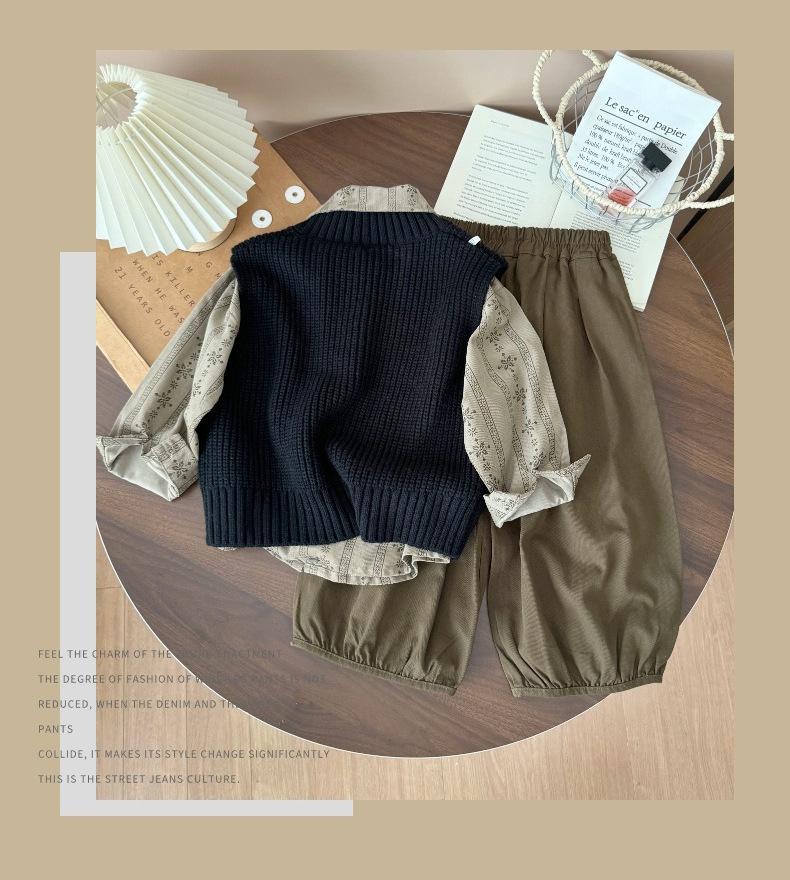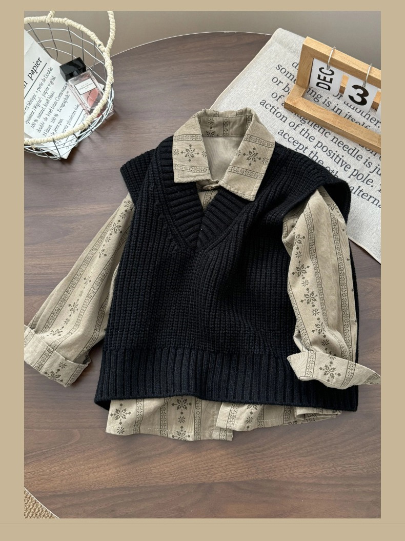 어린이 조끼 니트 조끼 소년 2025 가을 새로운 겉옷 아기 소년 양모 소년 검은 스웨터 유행스토어 가기