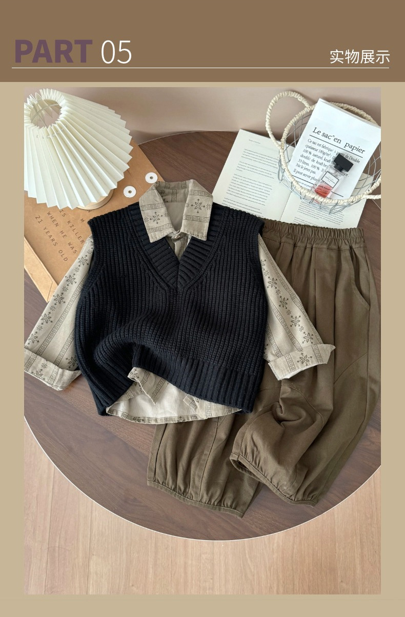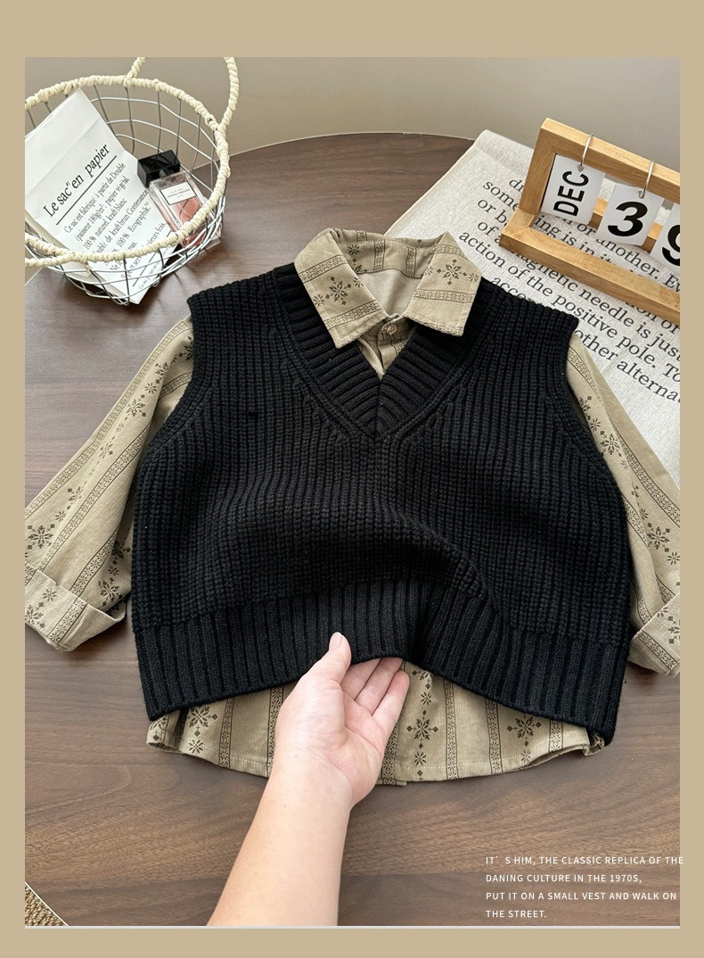 어린이 조끼 니트 조끼 소년 2025 가을 새로운 겉옷 아기 소년 양모 소년 검은 스웨터 유행
