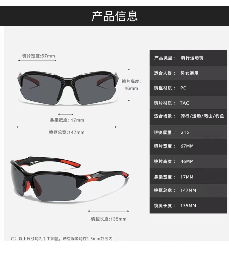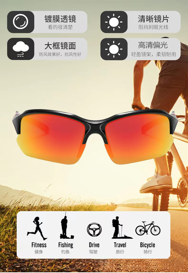 아마존 스포츠 하프 프레임 편광 선글라스 남자 국경 승마 달리기 낚시 선글라스 경량 고글