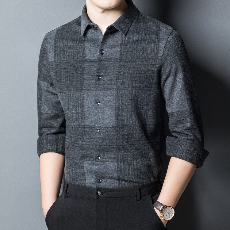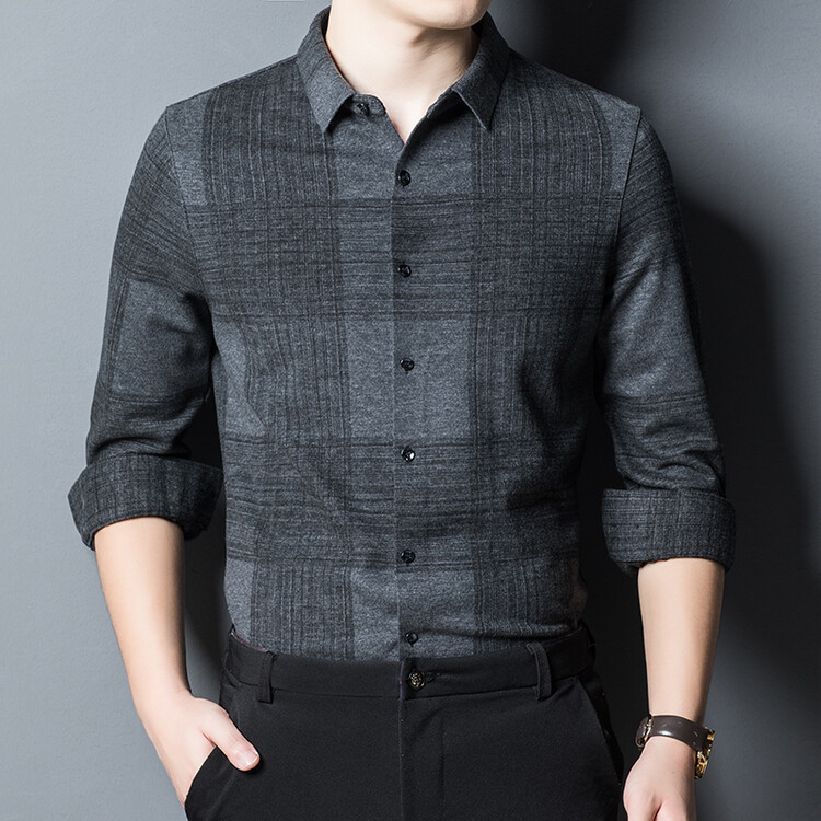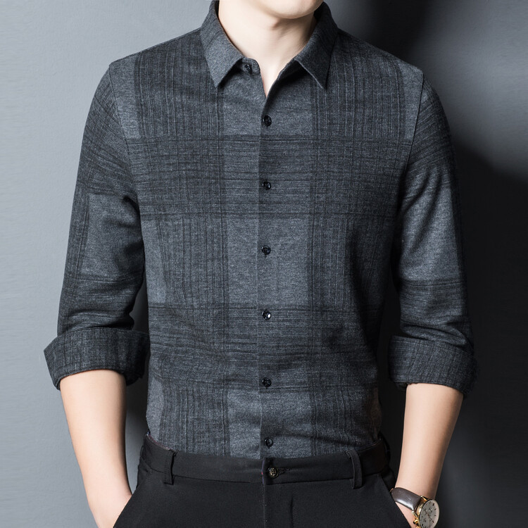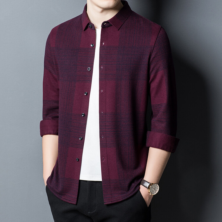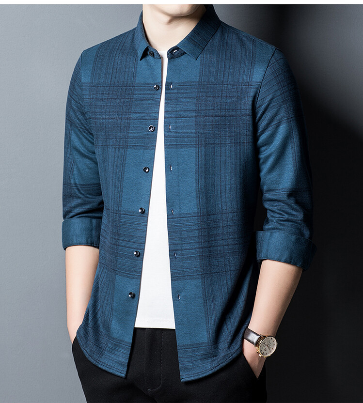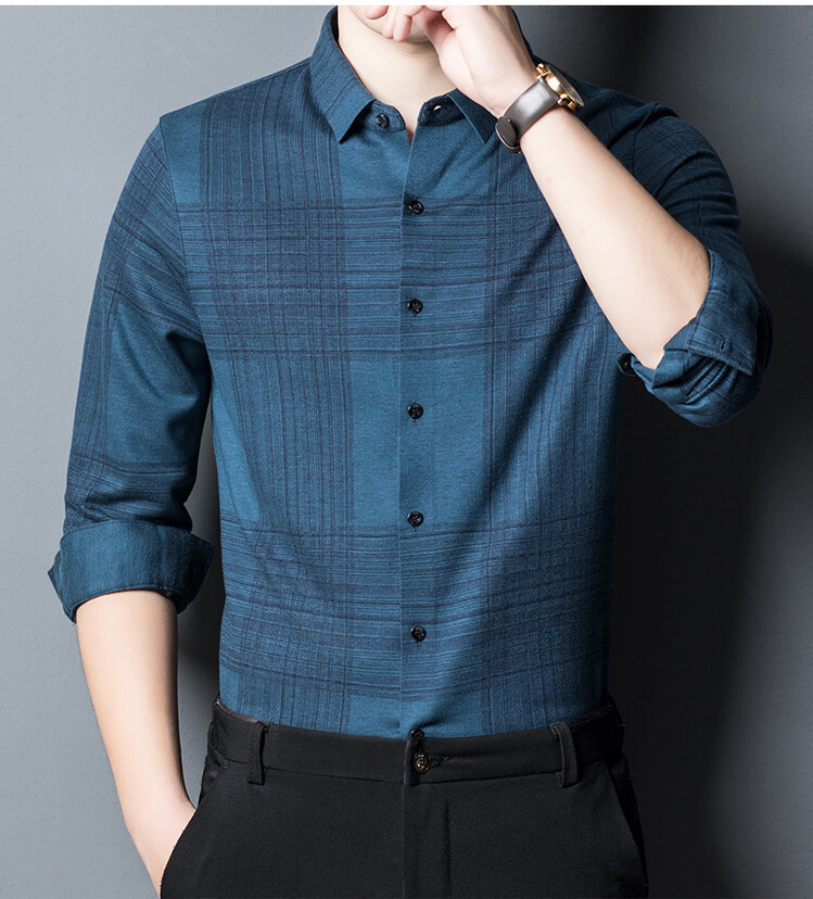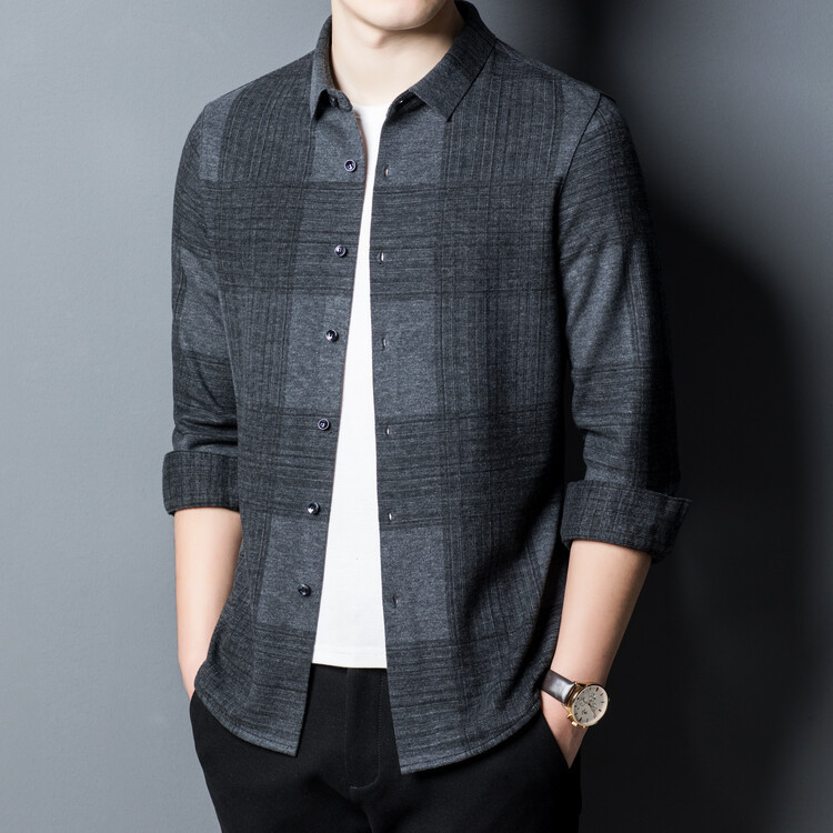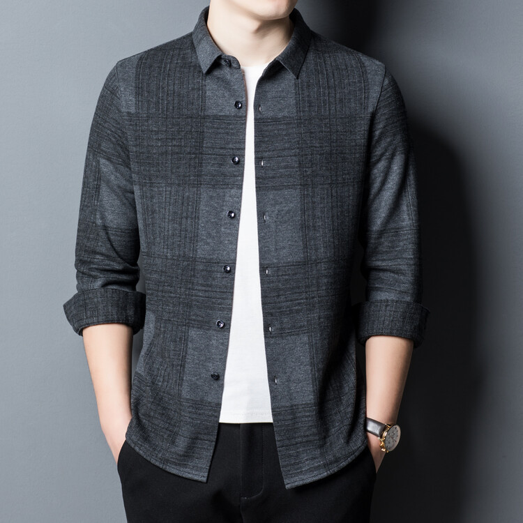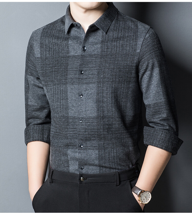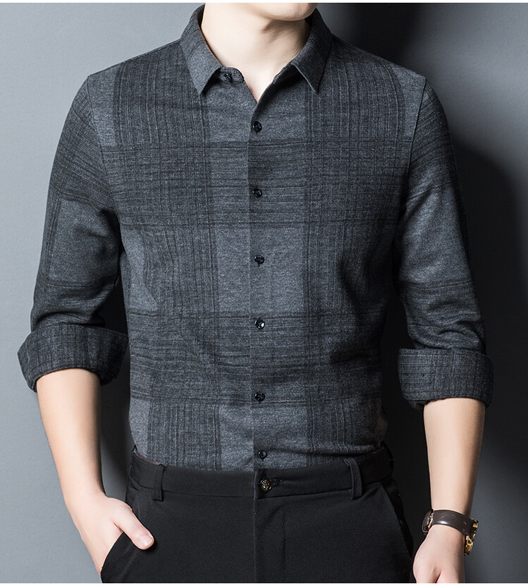 봄과 가을 새로운 남자의 긴 소매 셔츠 줄무늬 비 다림질 셔츠 양모 두꺼운 캐주얼 탑 유행 셔츠