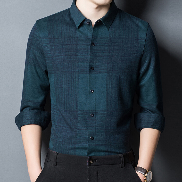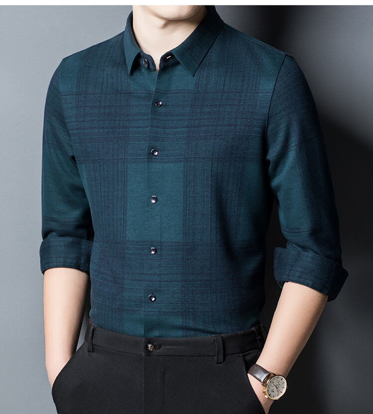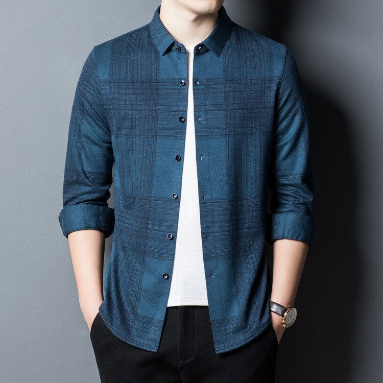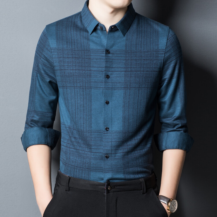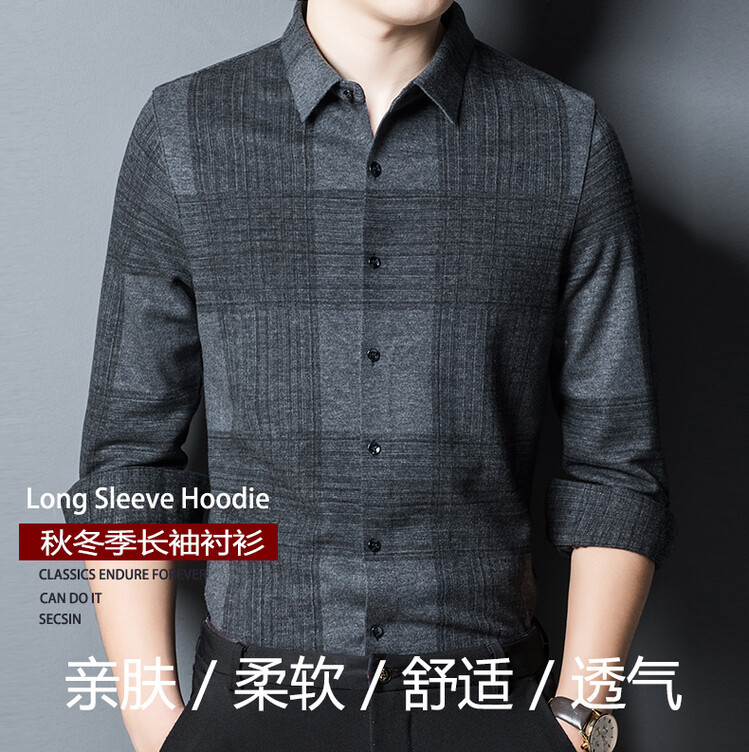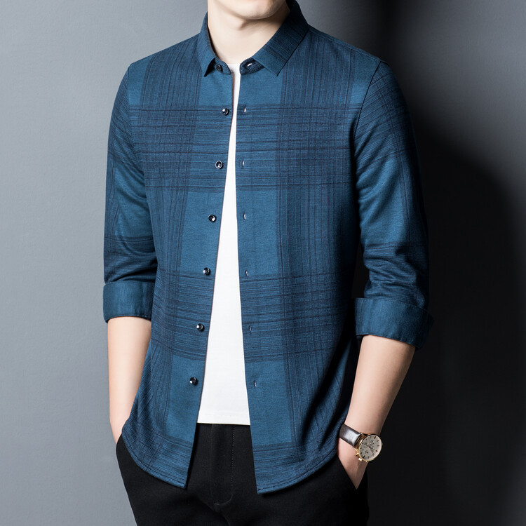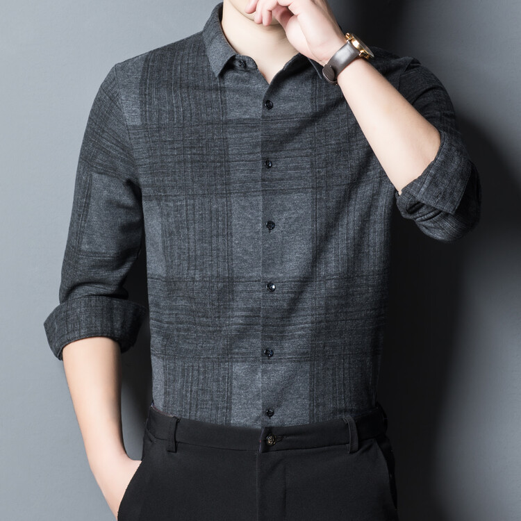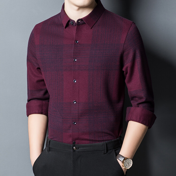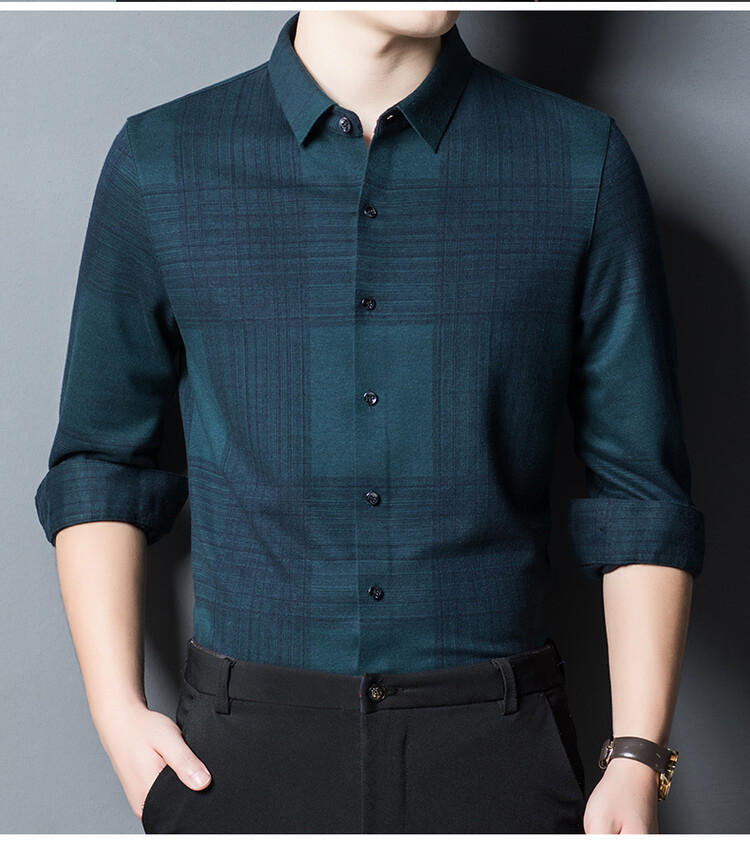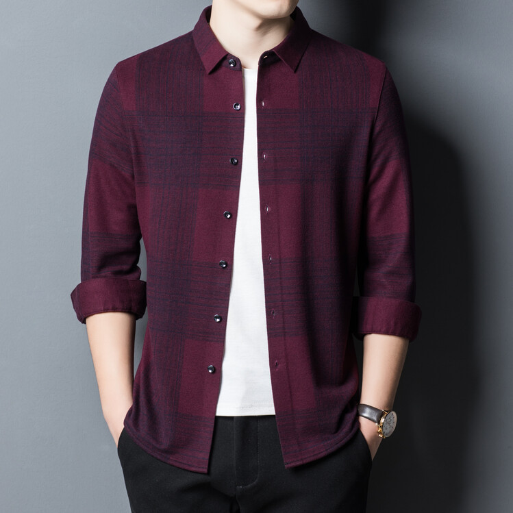 봄과 가을 새로운 남자의 긴 소매 셔츠 줄무늬 비 다림질 셔츠 양모 두꺼운 캐주얼 탑 유행 셔츠