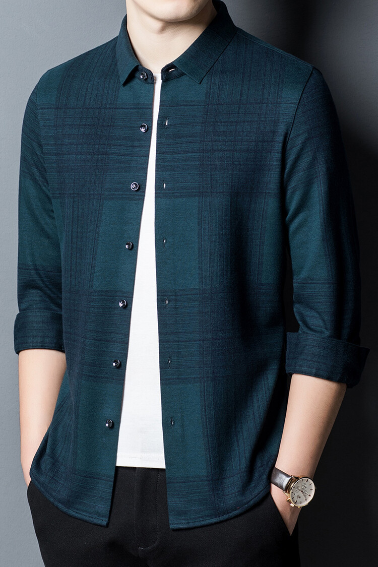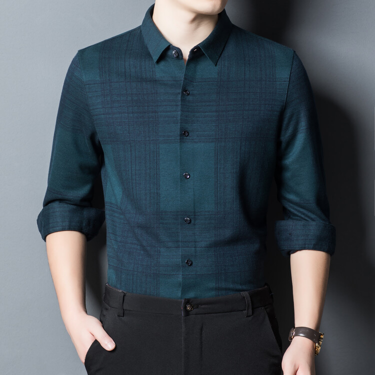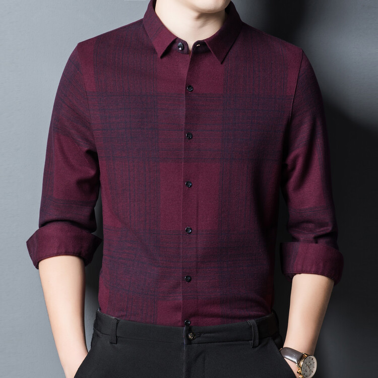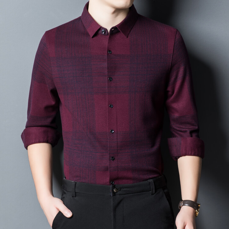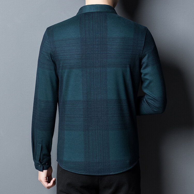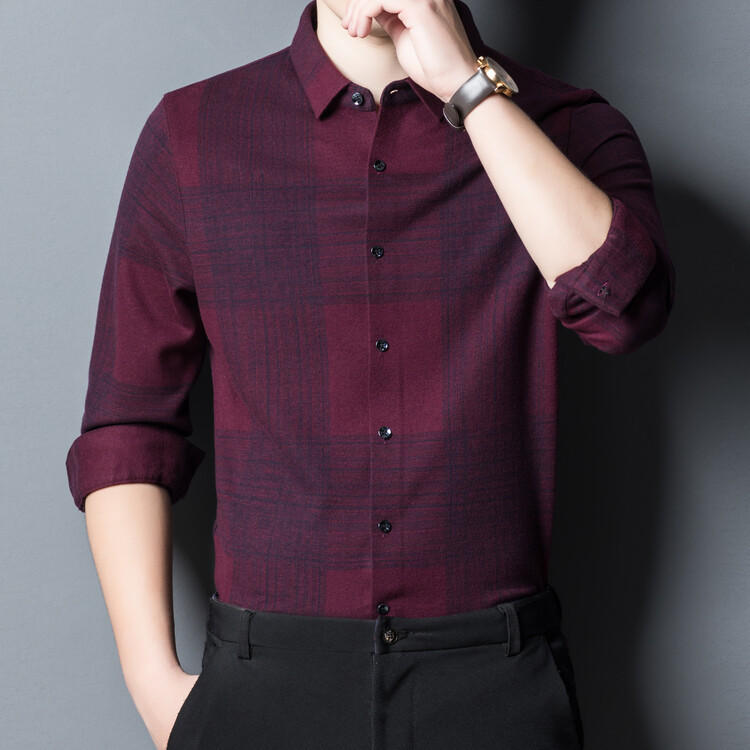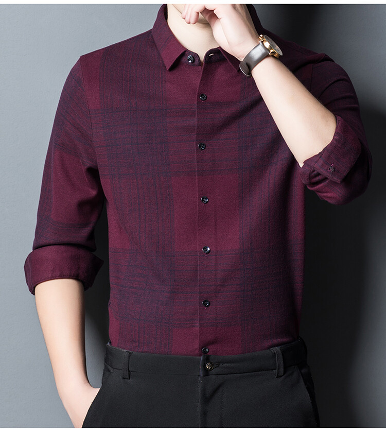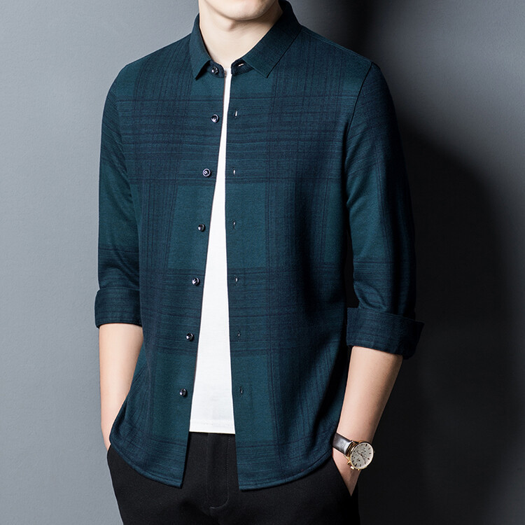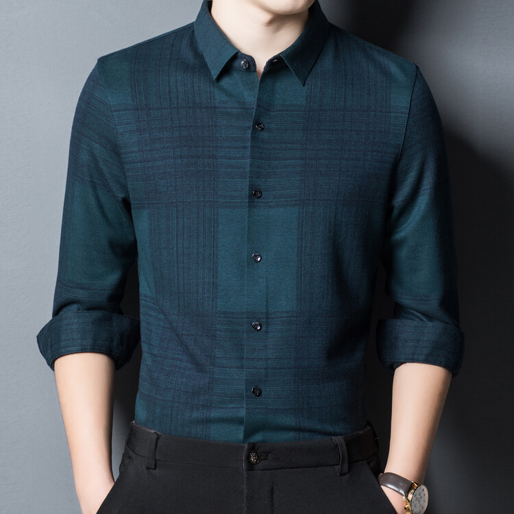 봄과 가을 새로운 남자의 긴 소매 셔츠 줄무늬 비 다림질 셔츠 양모 두꺼운 캐주얼 탑 유행 셔츠