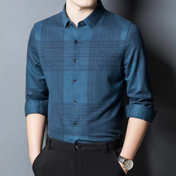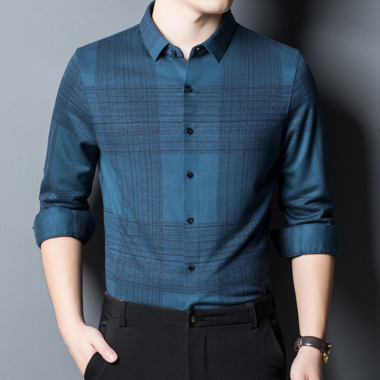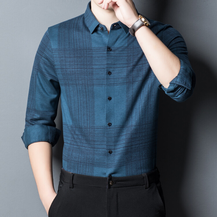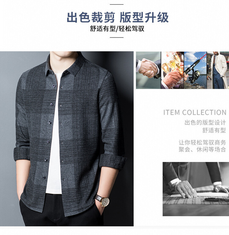 봄과 가을 새로운 남자의 긴 소매 셔츠 줄무늬 비 다림질 셔츠 양모 두꺼운 캐주얼 탑 유행 셔츠스토어 가기