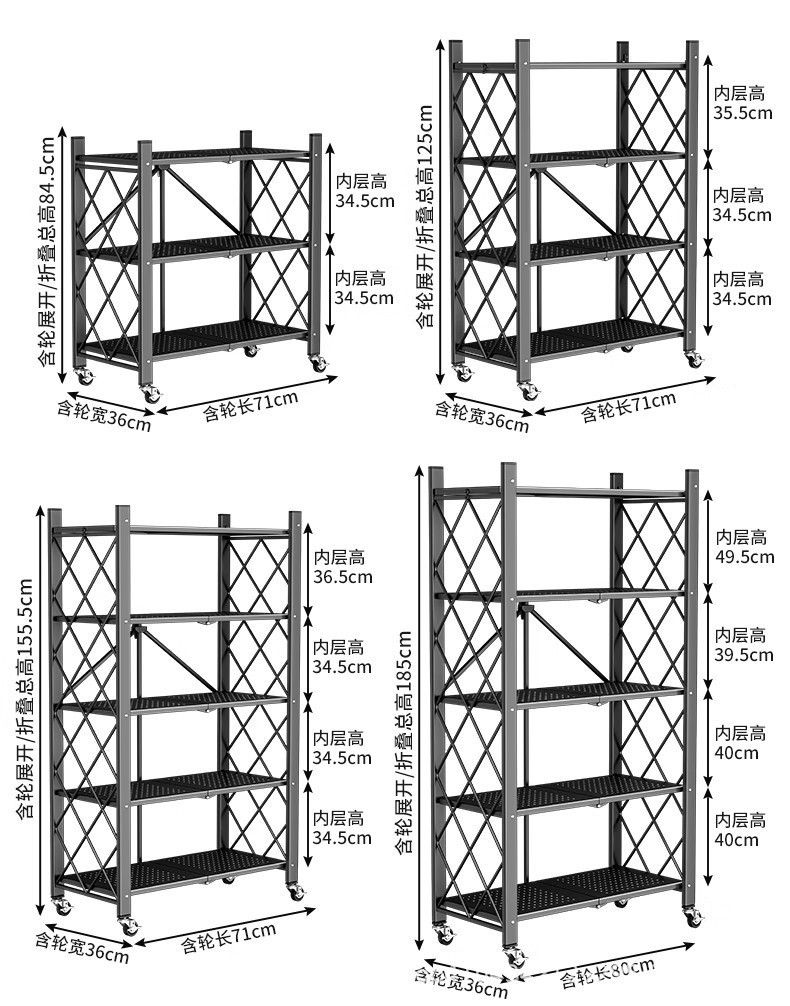 가정용 접이식 스토리지 랙 도매 설치-무료 간단한 주방 바닥-서있는 이동식 스토리지 랙 다층 스토리지 랙