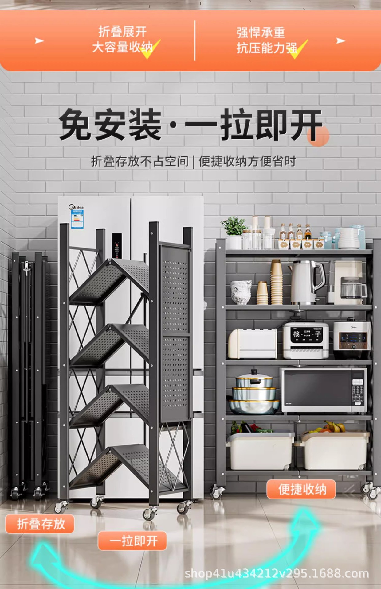 가정용 접이식 스토리지 랙 도매 설치-무료 간단한 주방 바닥-서있는 이동식 스토리지 랙 다층 스토리지 랙스토어 가기