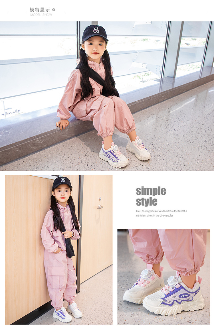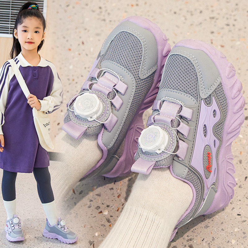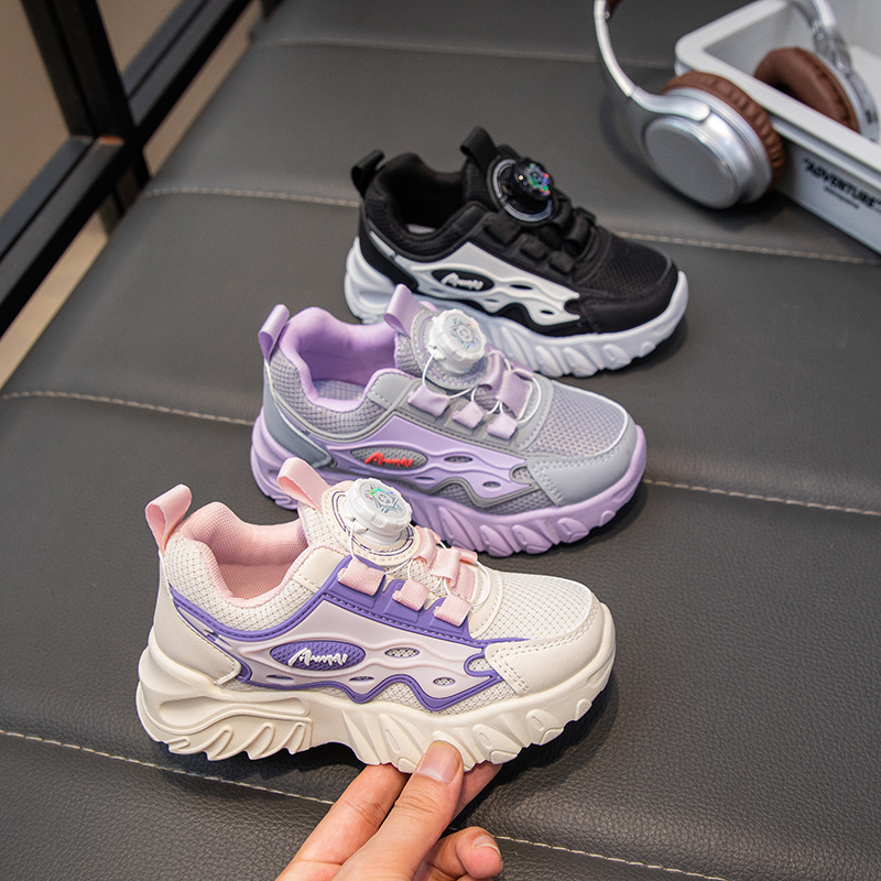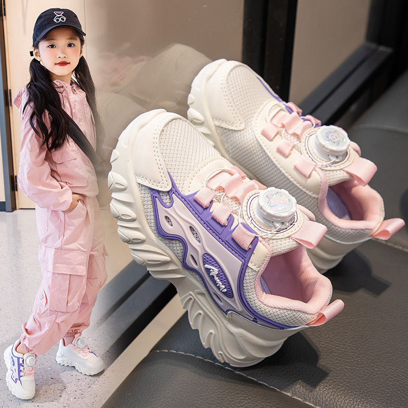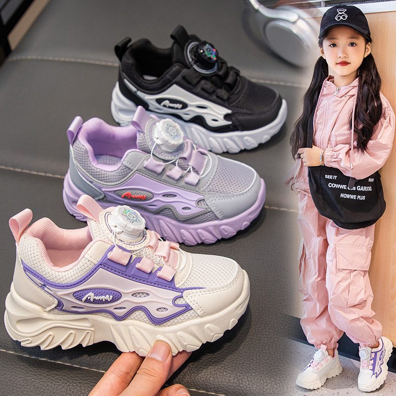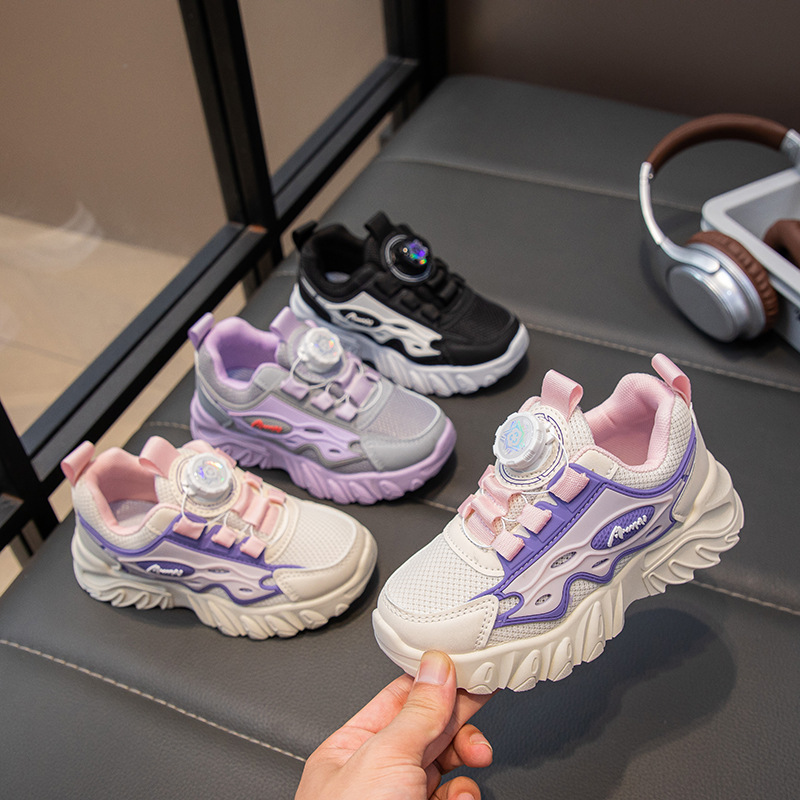 어린이 신발 소녀 2024 가을 새로운 어린이 운동화 중 큰 어린이 회전 버튼 신발 소년의 통기성 토르 신발스토어 가기