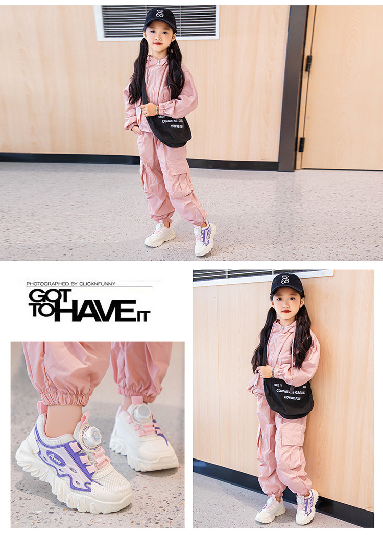 어린이 신발 소녀 2024 가을 새로운 어린이 운동화 중 큰 어린이 회전 버튼 신발 소년의 통기성 토르 신발