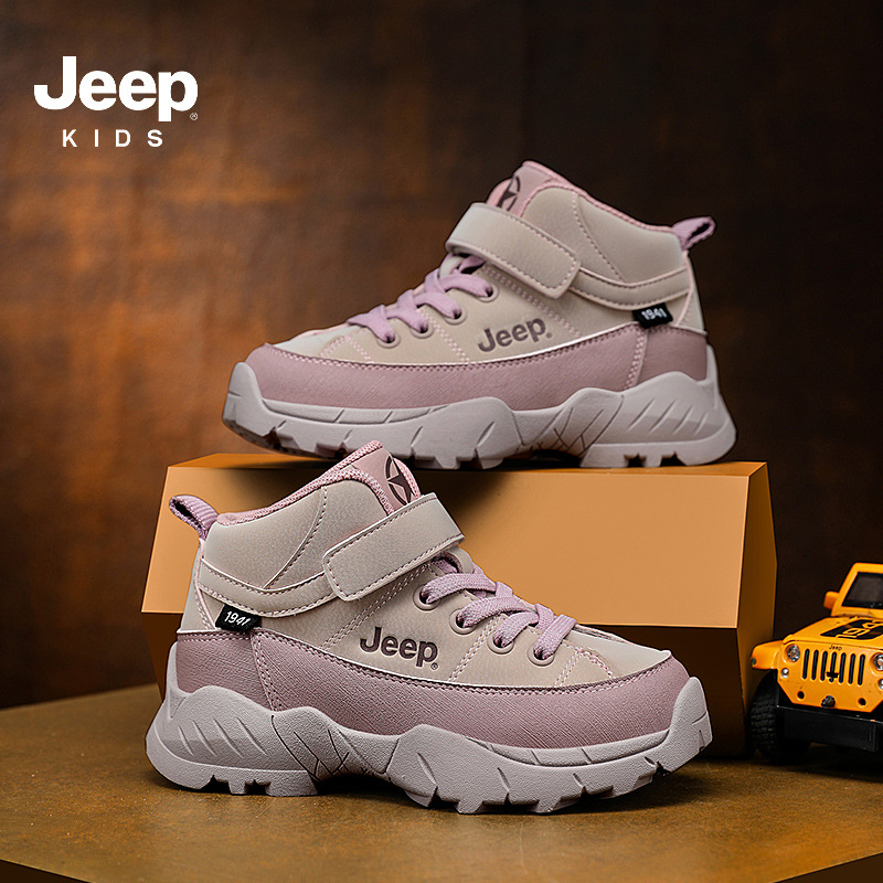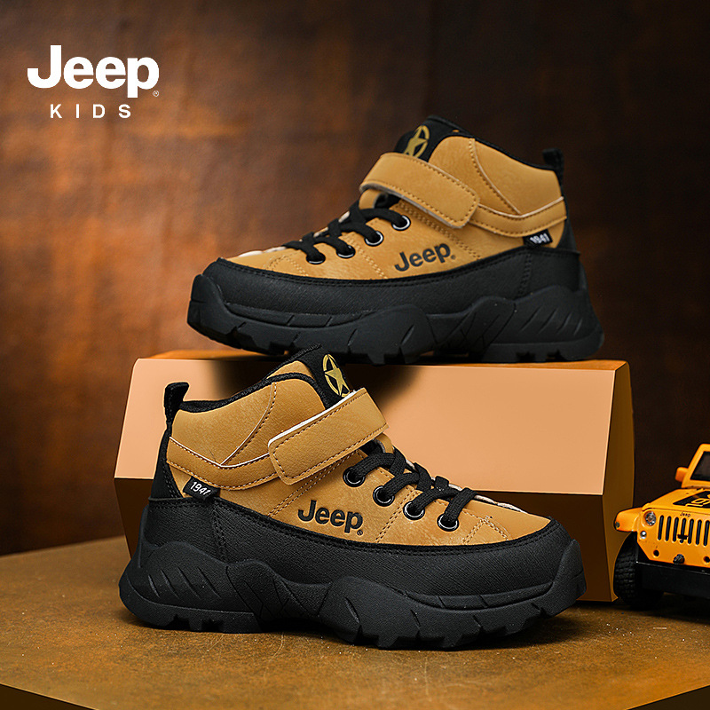 지프 어린이 신발 2024 가을과 겨울 새로운 가죽 방수 운동화 하이탑 후크와 루프 미끄럼 방지 소년 신발 조수