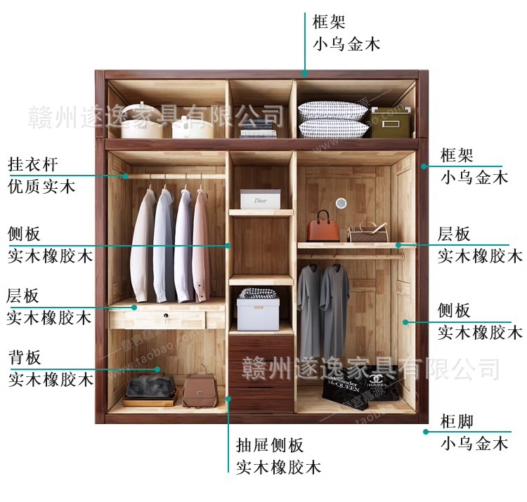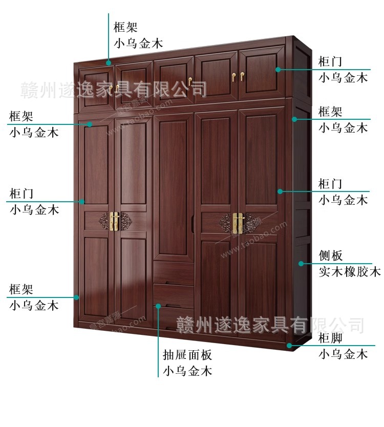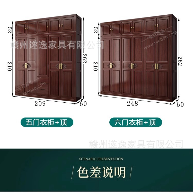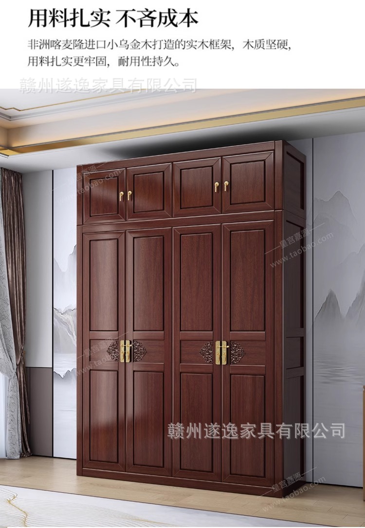 새로운 중국 스타일 우진 나무 옷장 침실 홈 가득 차있는 단단한 나무 큰 옷장 코너 저장 옷 교수형 캐비닛 새로운 스타일 2024