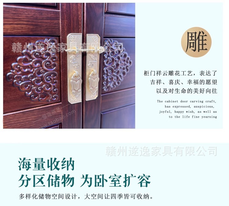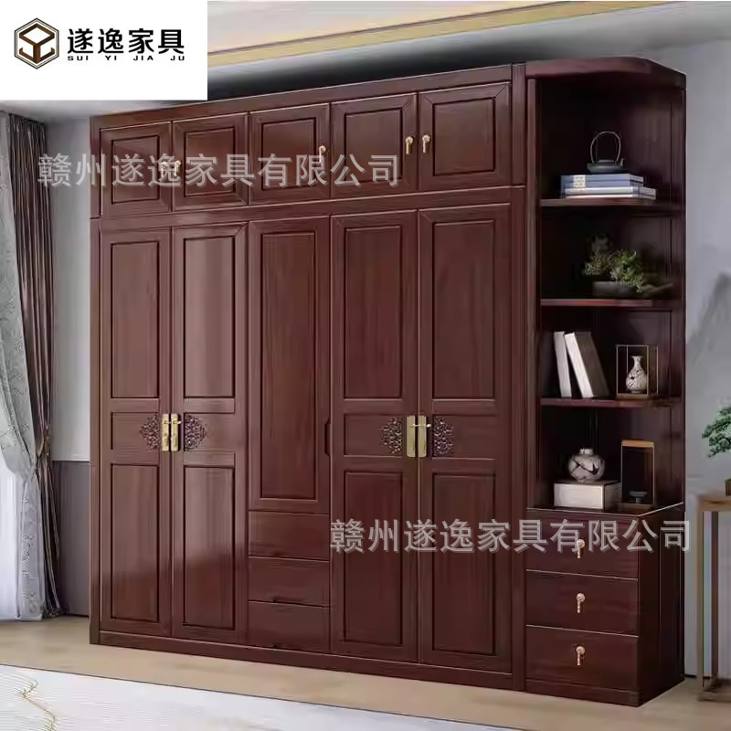 새로운 중국 스타일 우진 나무 옷장 침실 홈 가득 차있는 단단한 나무 큰 옷장 코너 저장 옷 교수형 캐비닛 새로운 스타일 2024스토어 가기