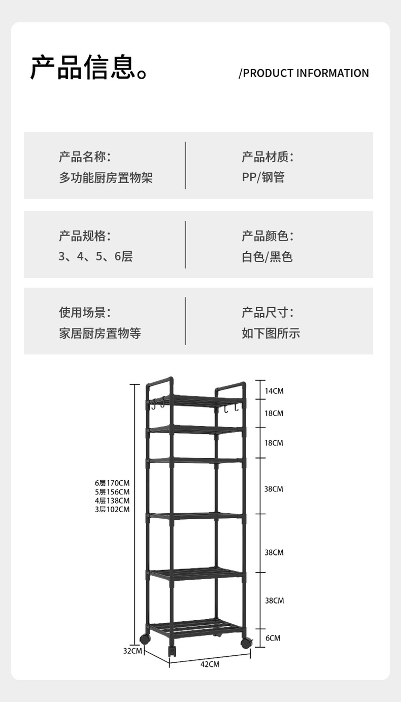 商品尺寸:3层42*32*102cm 4层42*32*108cm 5层42*32*156cm 6层42*32*170cm