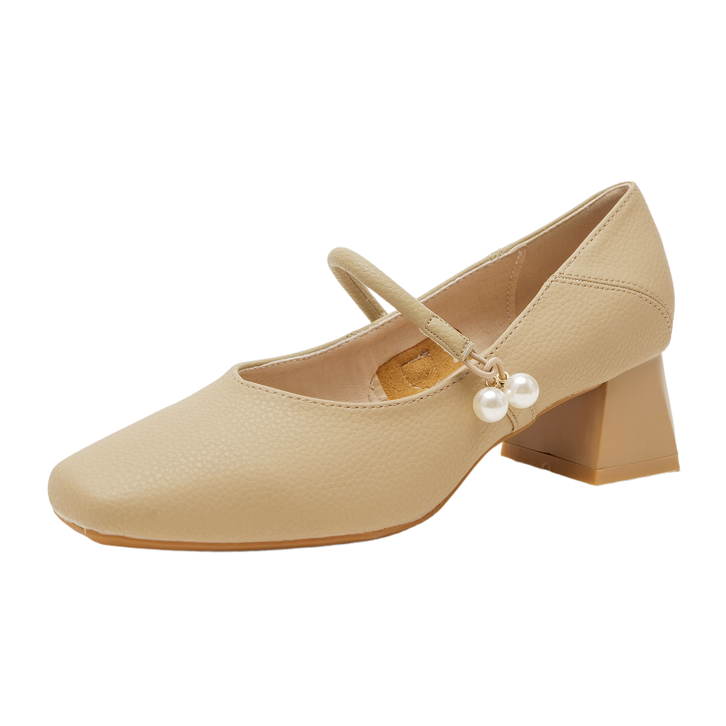 광장 발가락 두꺼운 힐 메리 제인 신발 여성의 2025 봄 새로운 부드러운 가죽 복고풍 프렌치 얕은 입 저발 3cm 싱글 레이어 신발스토어 가기