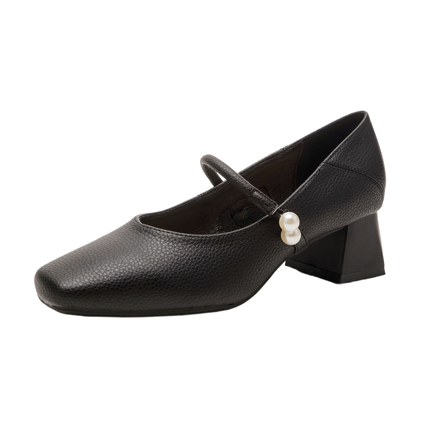 광장 발가락 두꺼운 힐 메리 제인 신발 여성의 2025 봄 새로운 부드러운 가죽 복고풍 프렌치 얕은 입 저발 3cm 싱글 레이어 신발