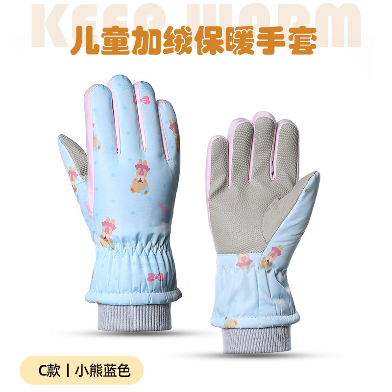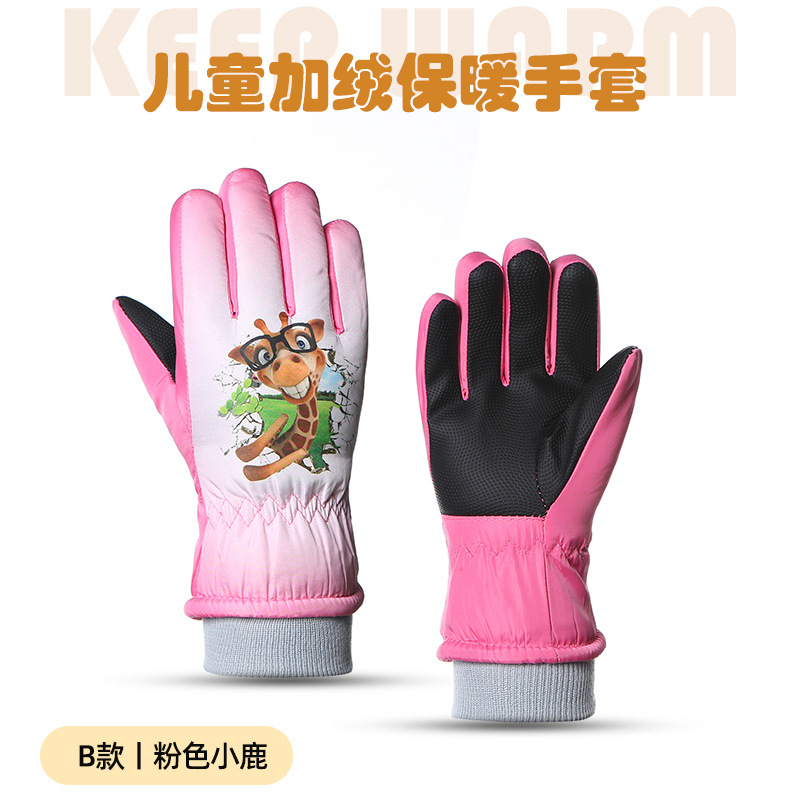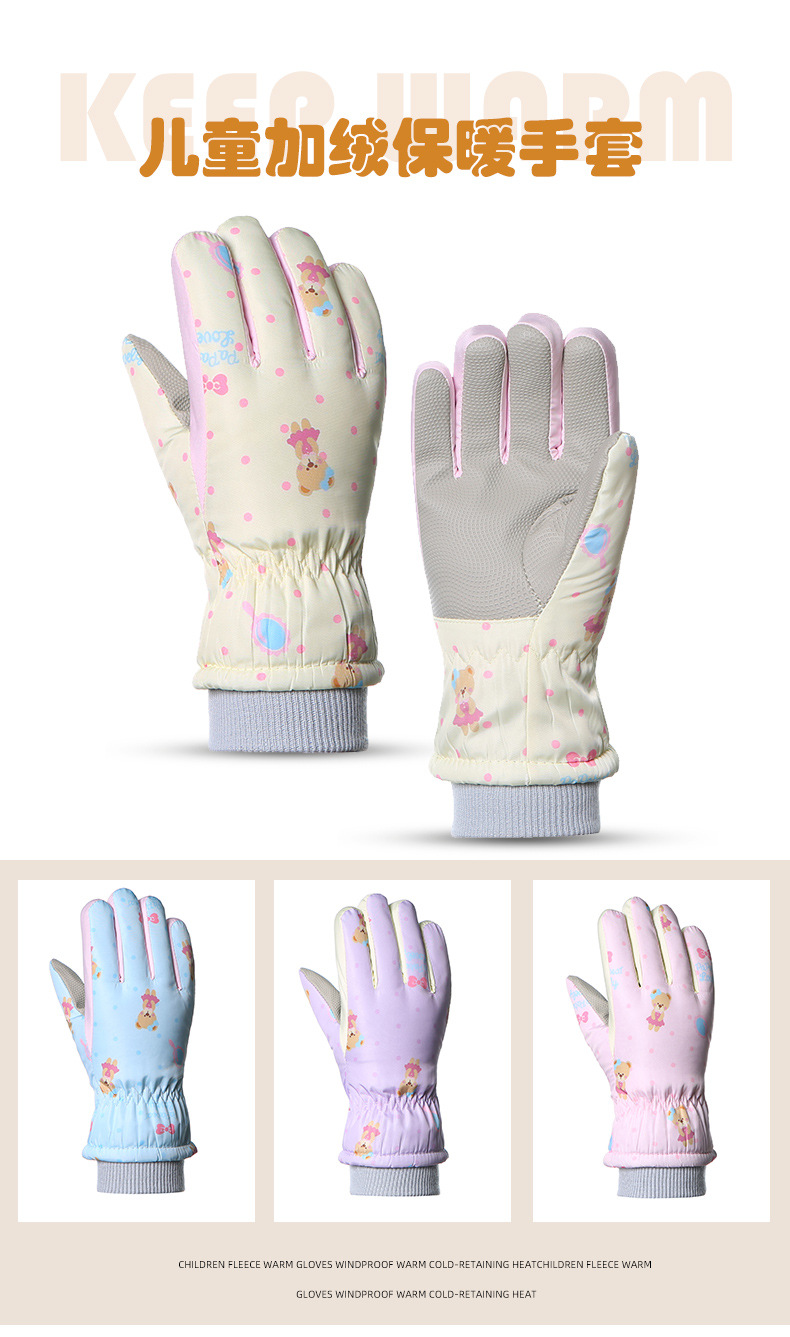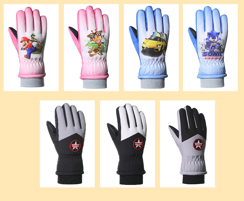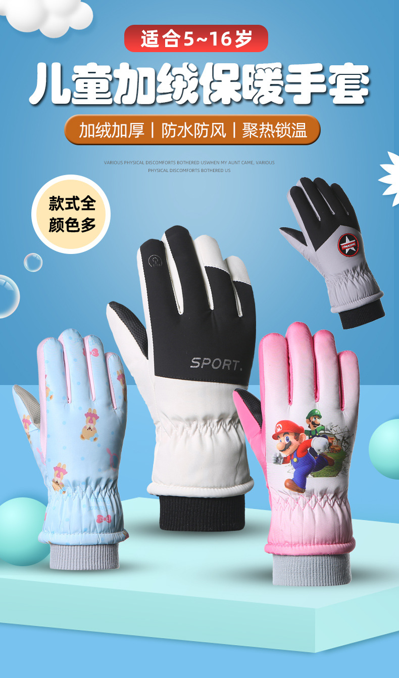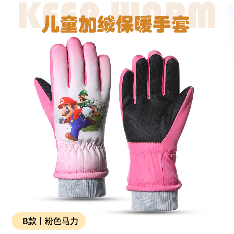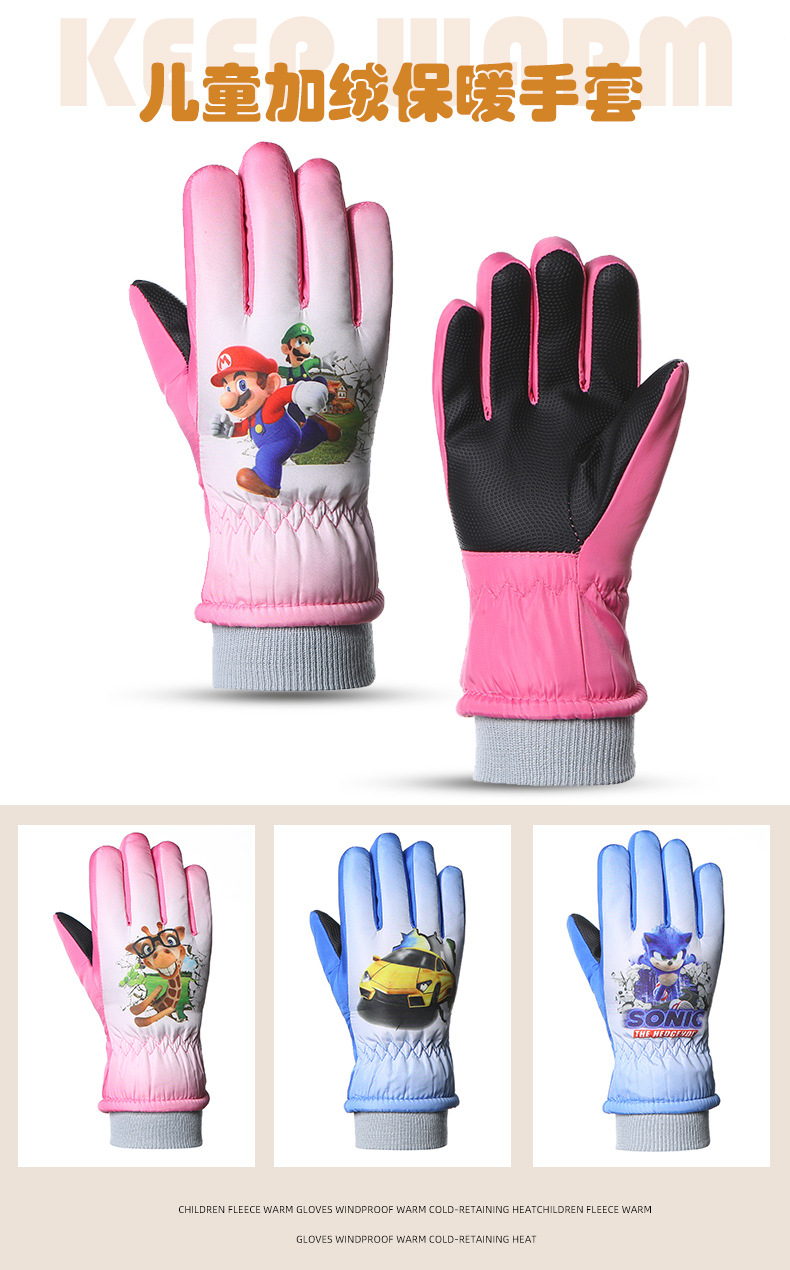 겨울 어린이 따뜻한 장갑, 만화 아기 스키 야외 사이클링 방수 및 방풍 플러스 벨벳, 프리 사이즈 야외 방풍