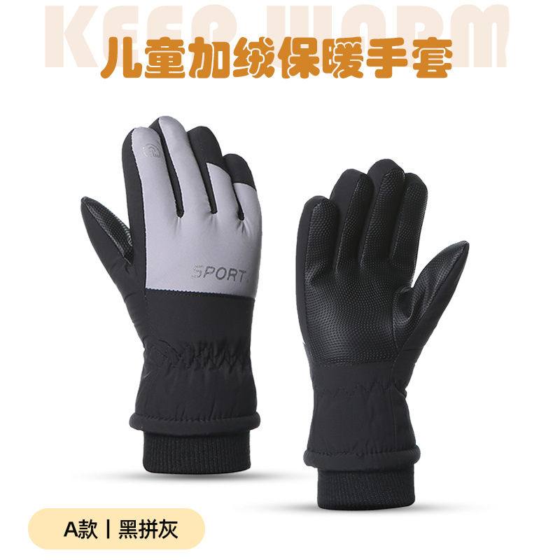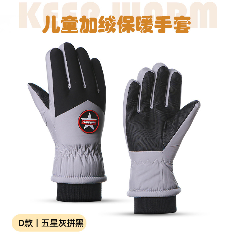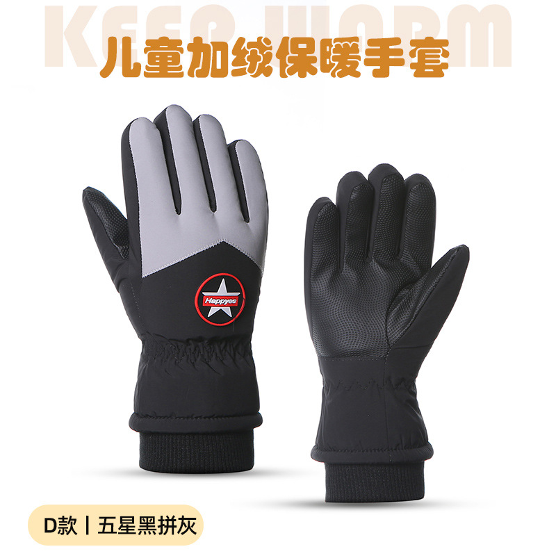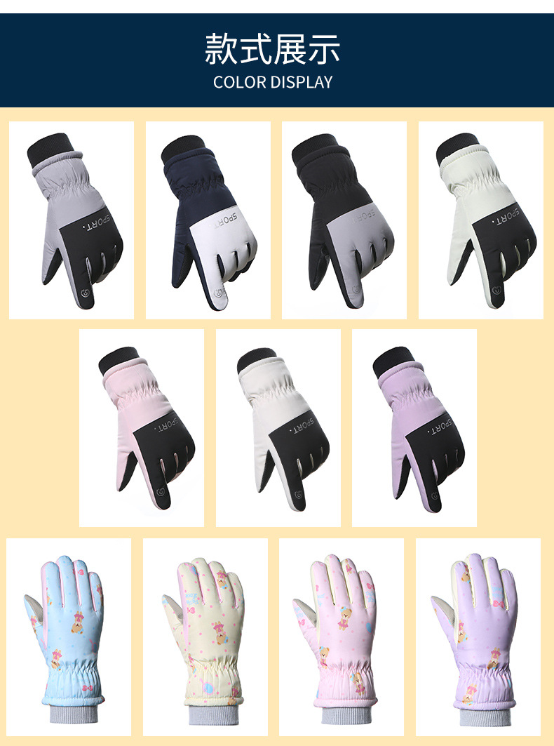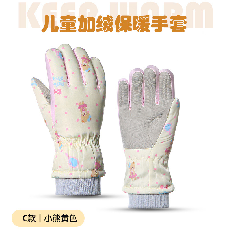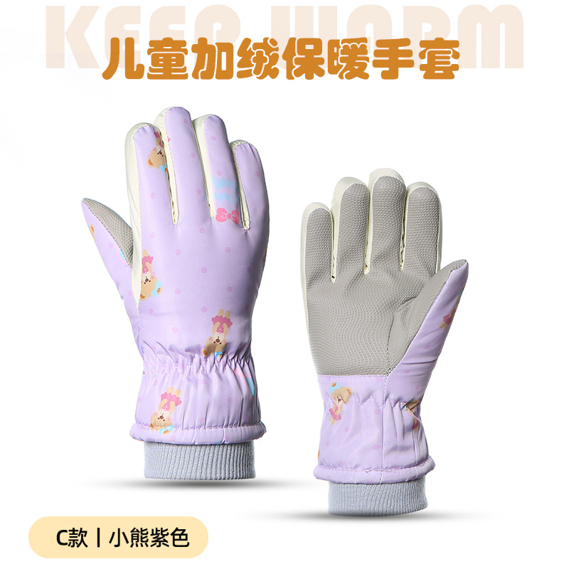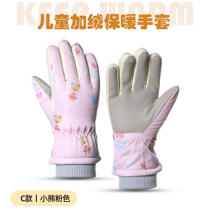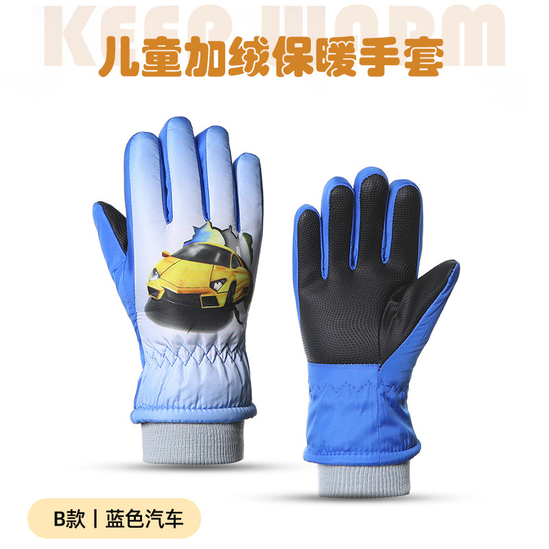 겨울 어린이 따뜻한 장갑, 만화 아기 스키 야외 사이클링 방수 및 방풍 플러스 벨벳, 프리 사이즈 야외 방풍