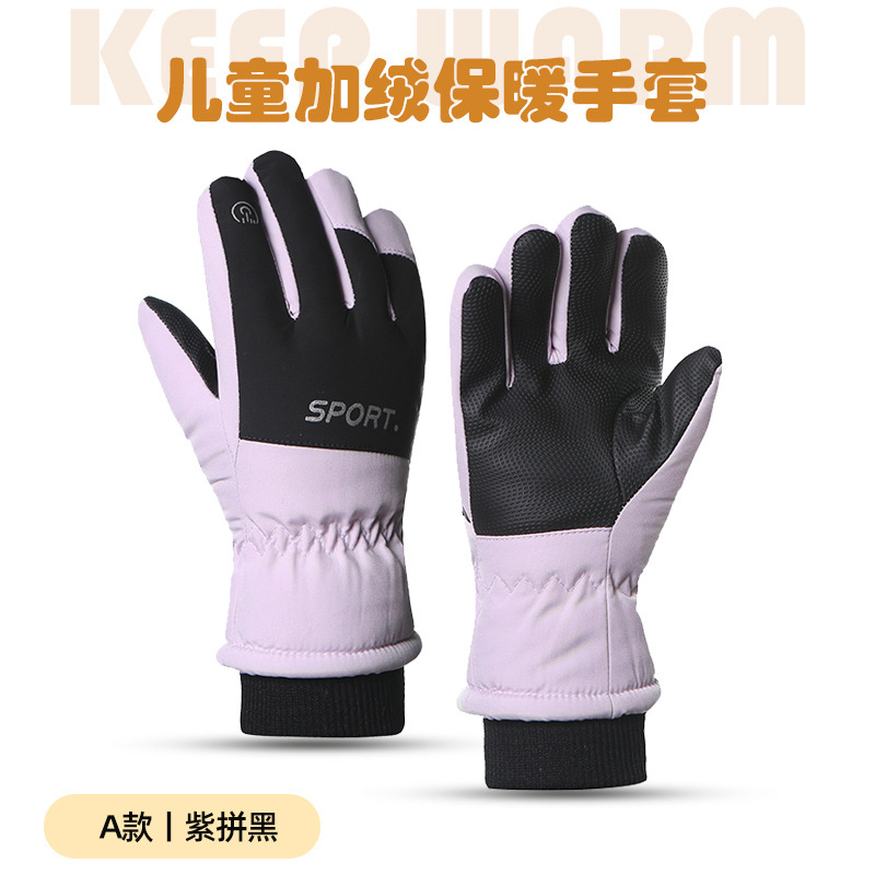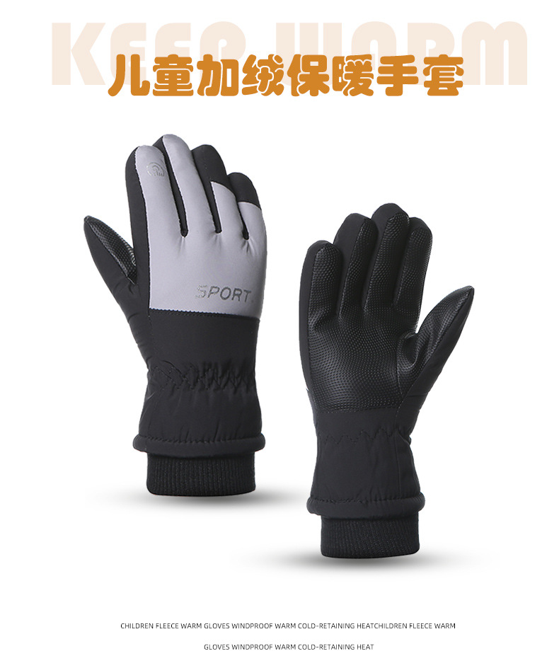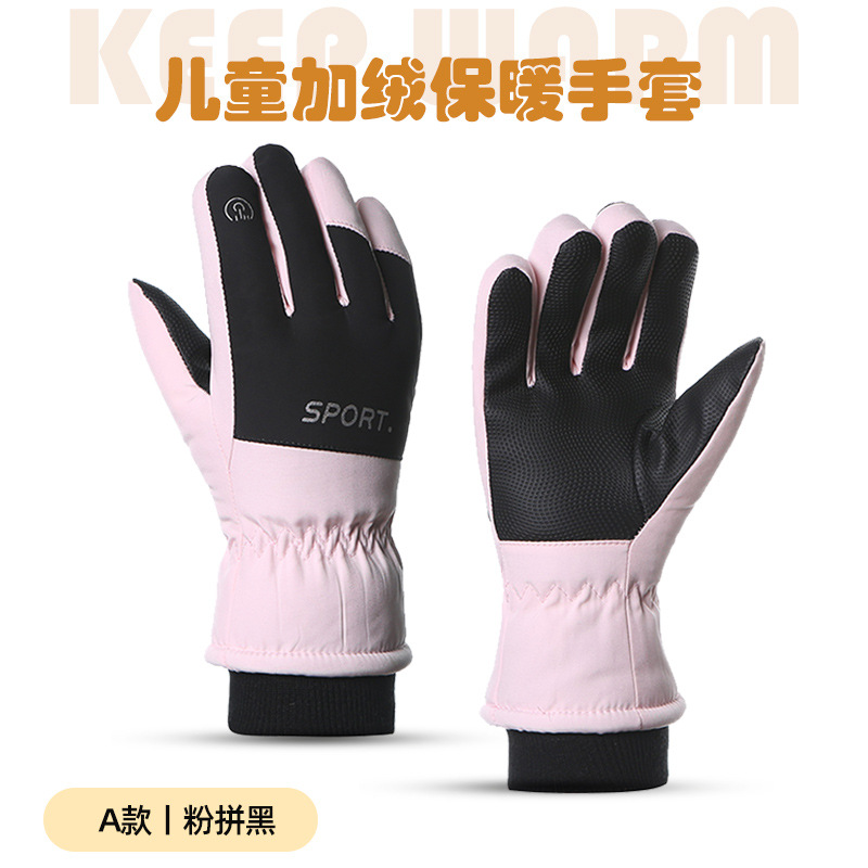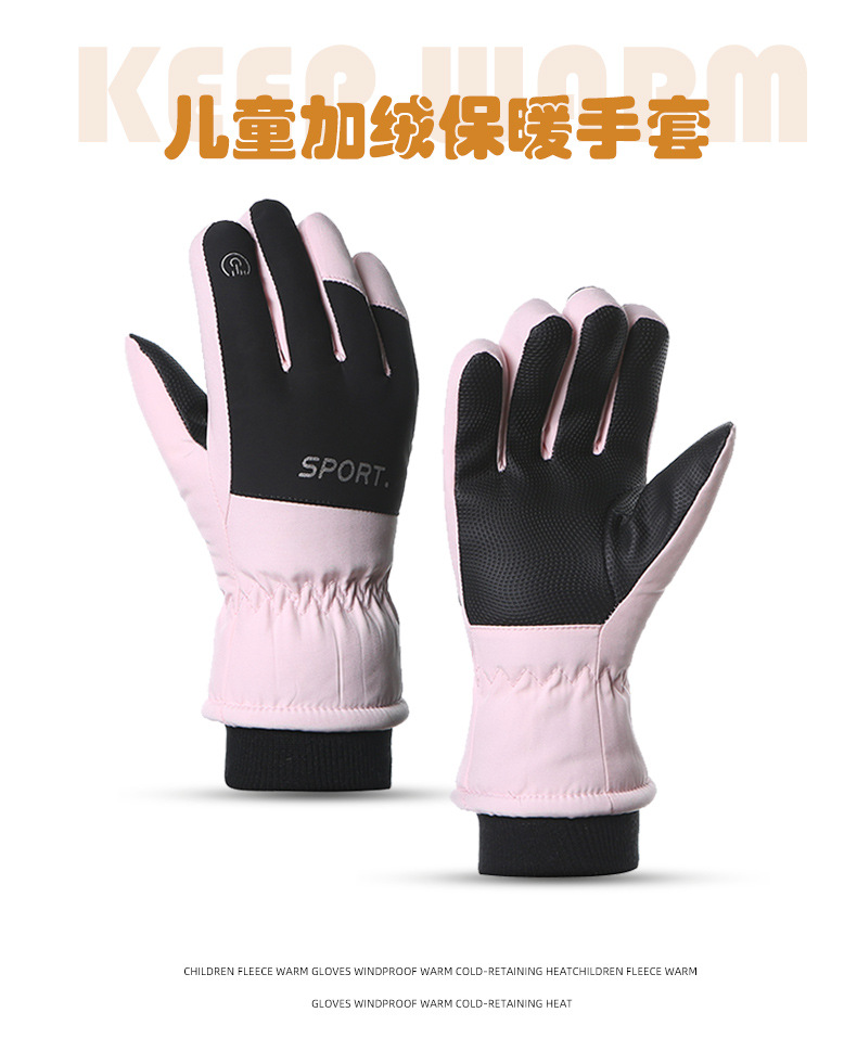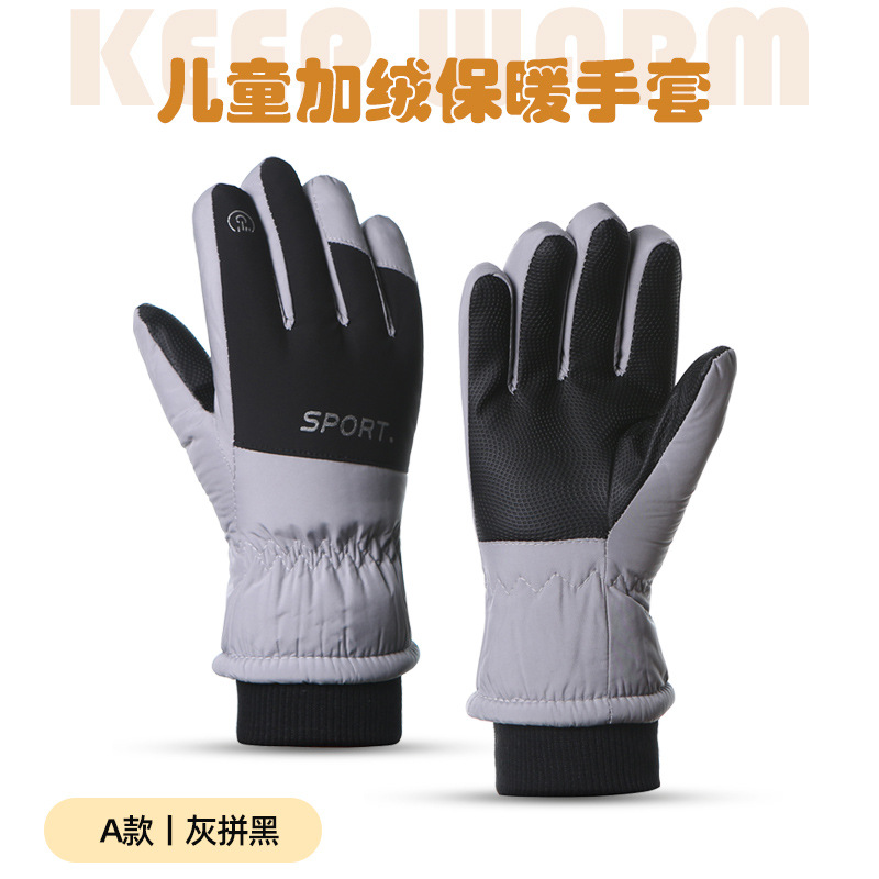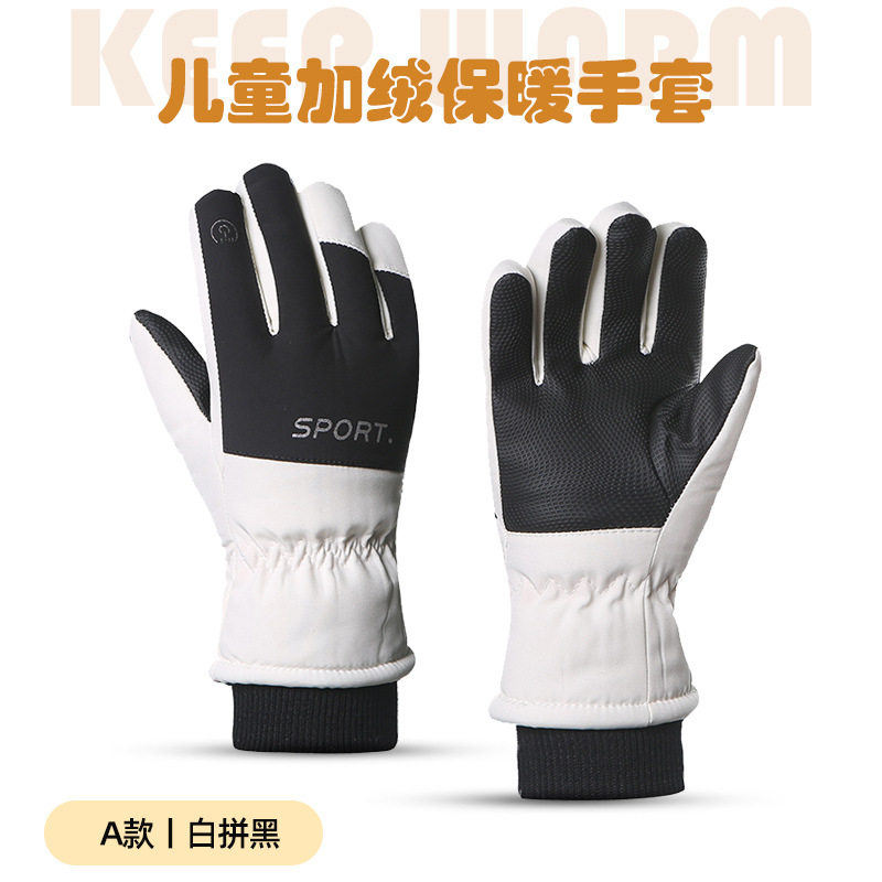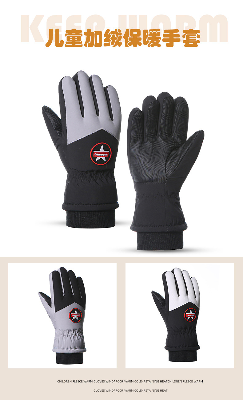 겨울 어린이 따뜻한 장갑, 만화 아기 스키 야외 사이클링 방수 및 방풍 플러스 벨벳, 프리 사이즈 야외 방풍