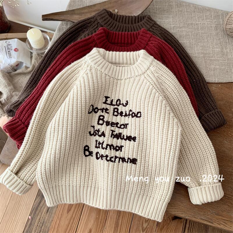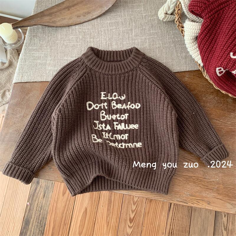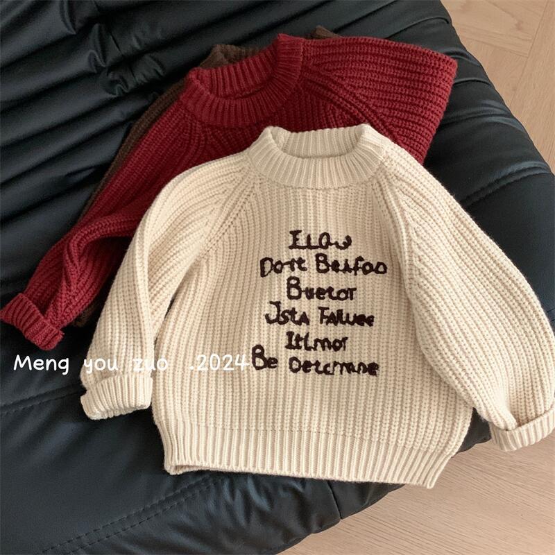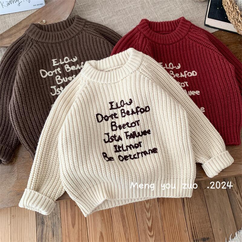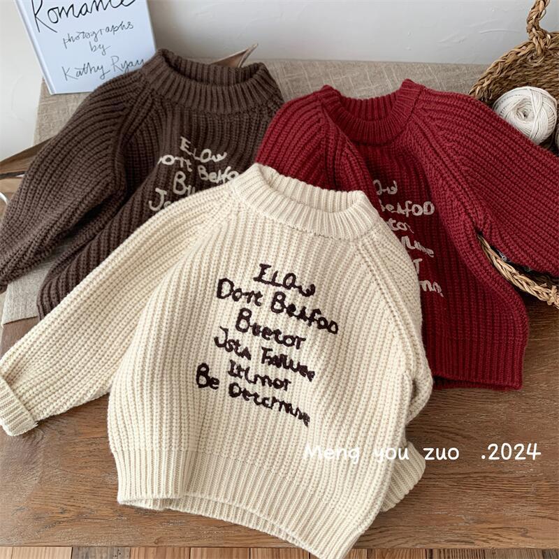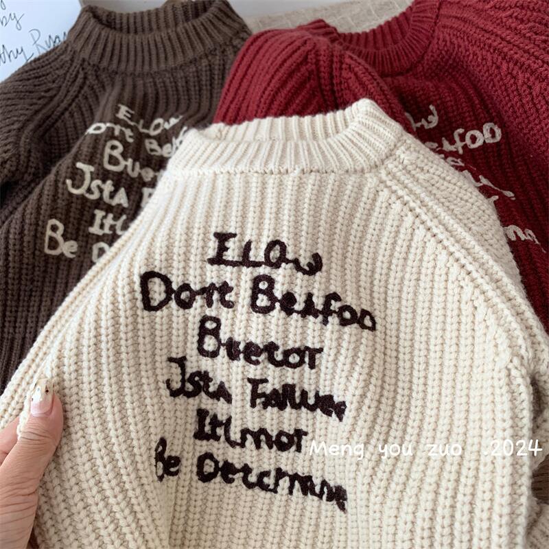 2024 가을과 겨울 새로운 어린이 니트 스웨터 풀오버 남녀 한국 스타일 간단한 영어 다양한 패션스토어 가기
