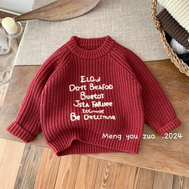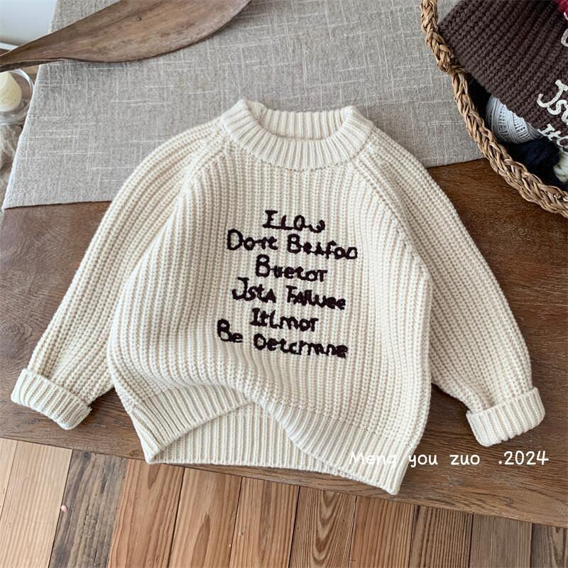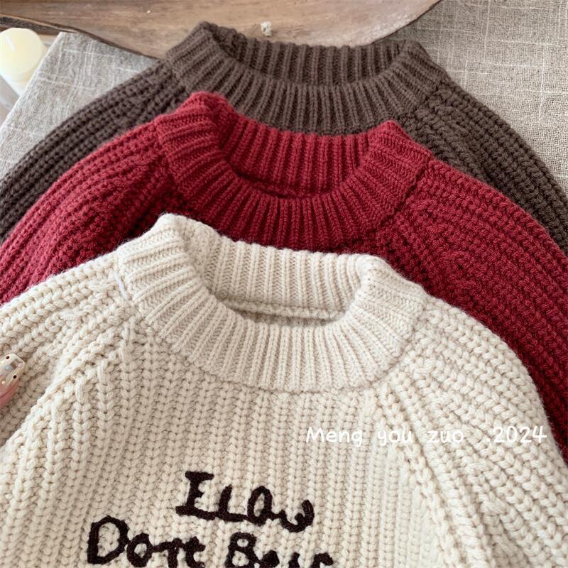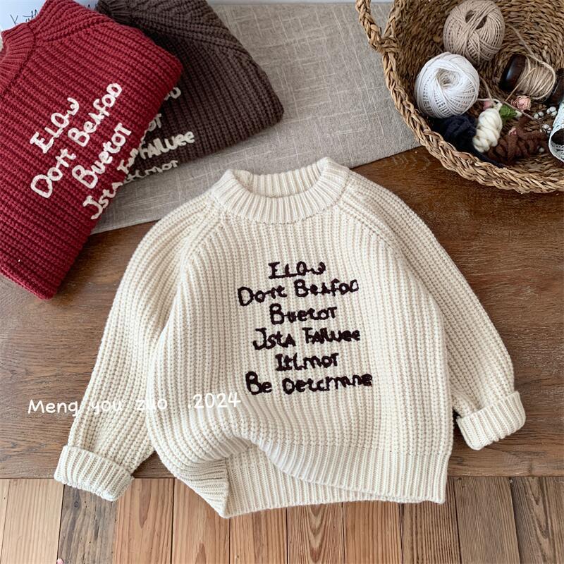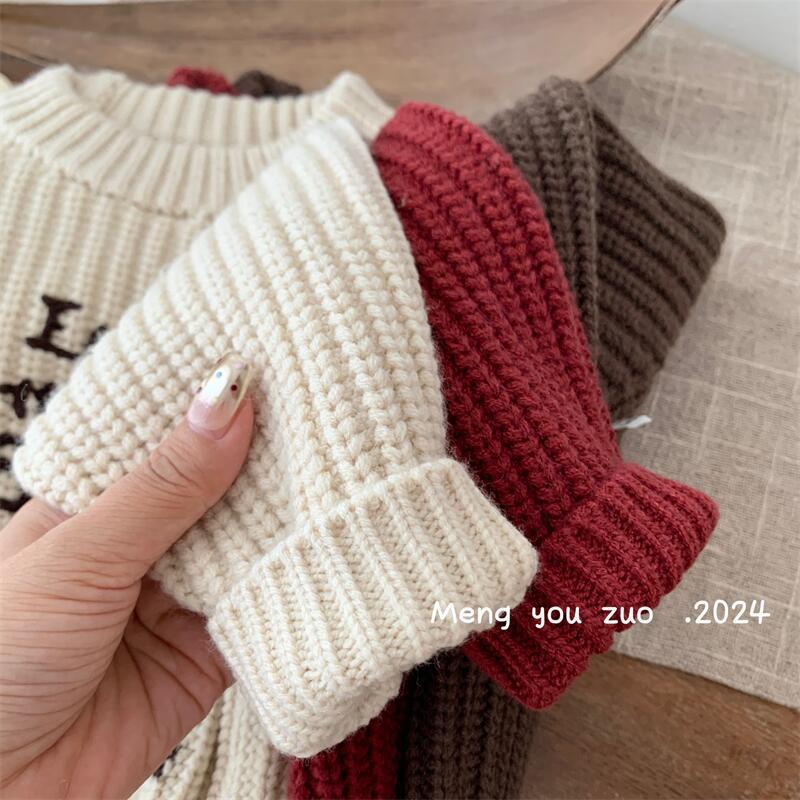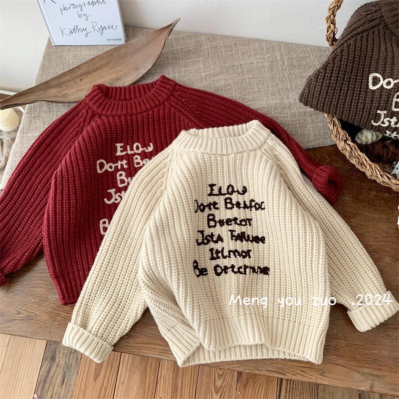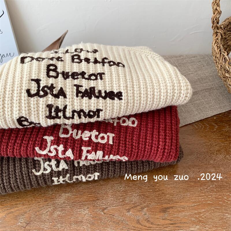 2024 가을과 겨울 새로운 어린이 니트 스웨터 풀오버 남녀 한국 스타일 간단한 영어 다양한 패션스토어 가기