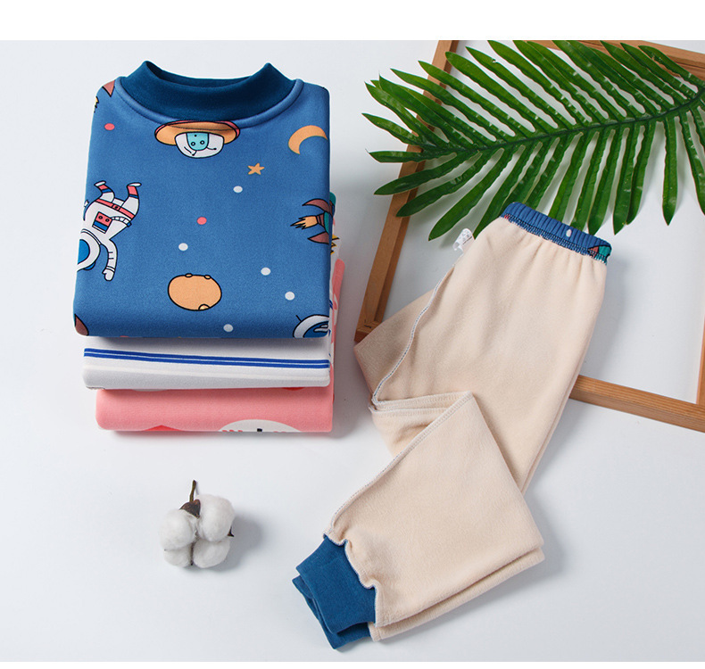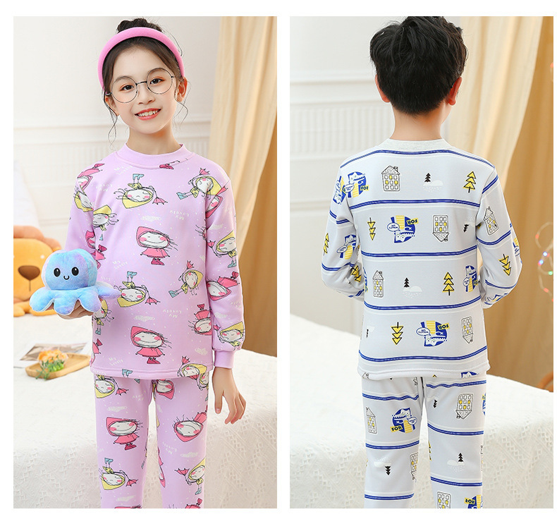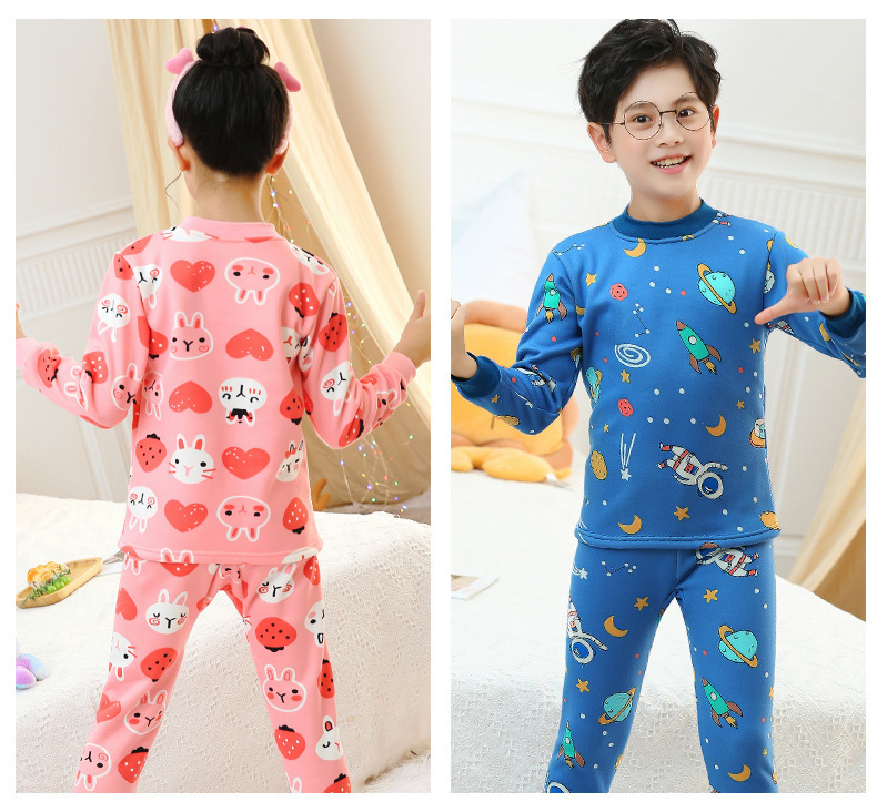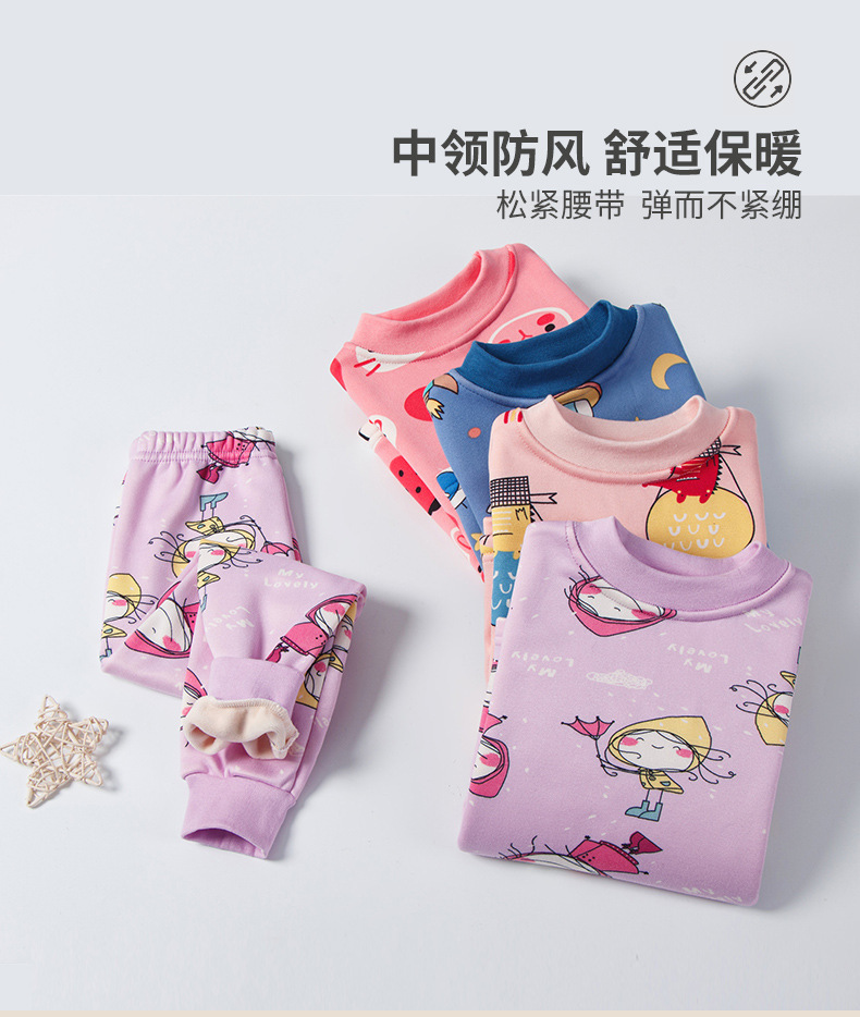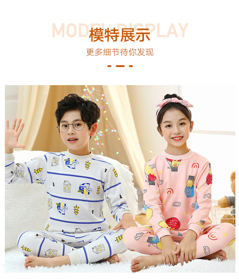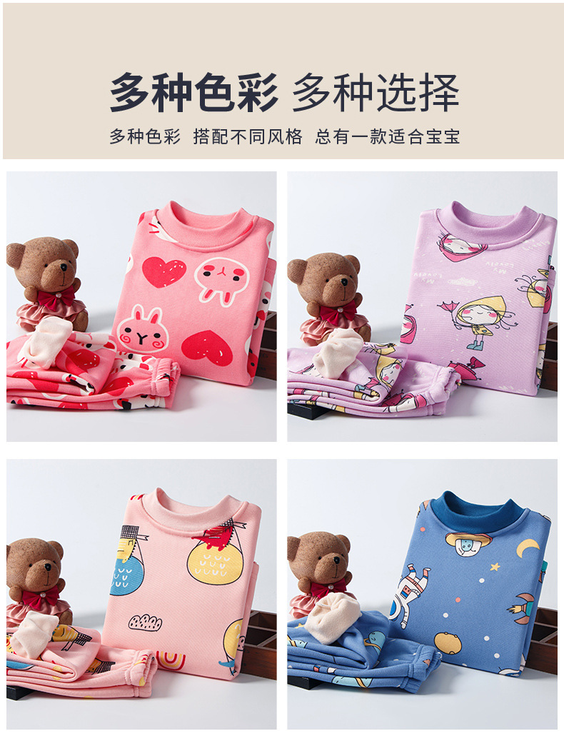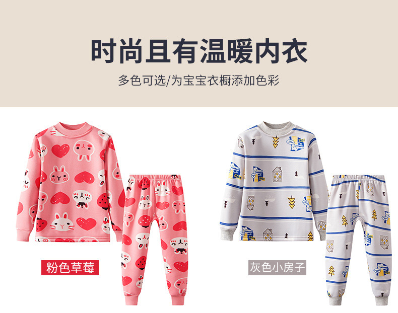 H2024秋冬儿童加绒加厚秋衣秋裤中小男童女童中领打底保暖内衣套