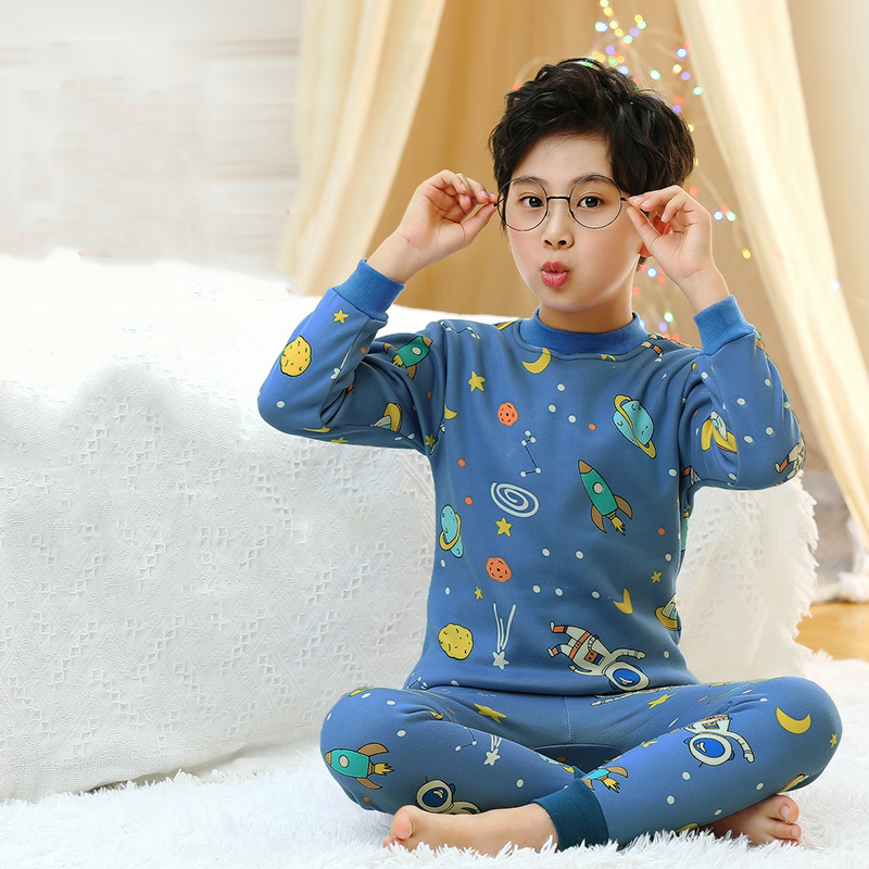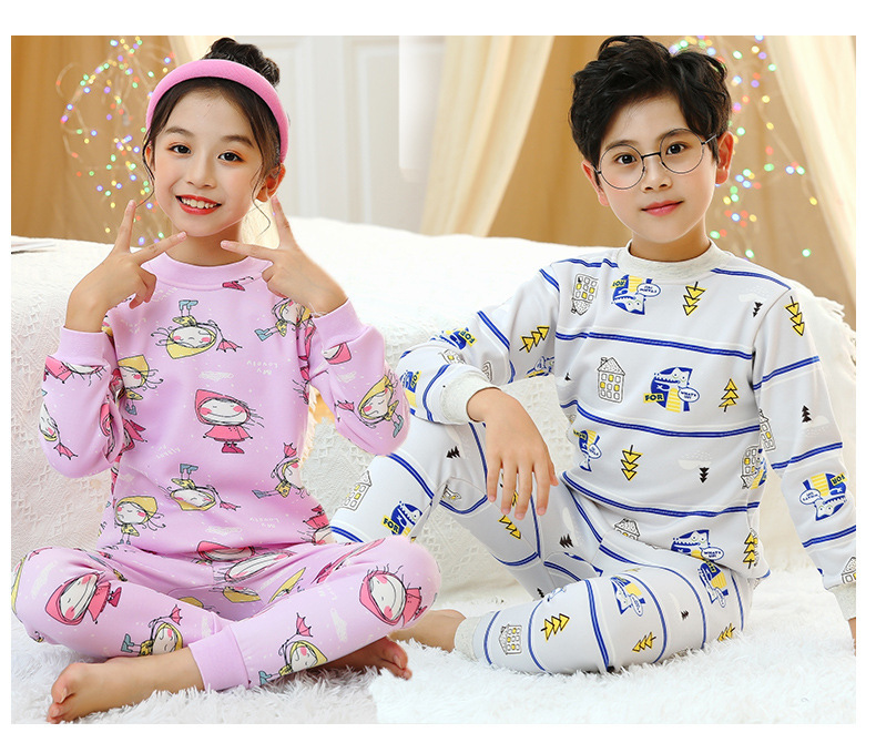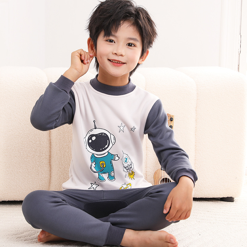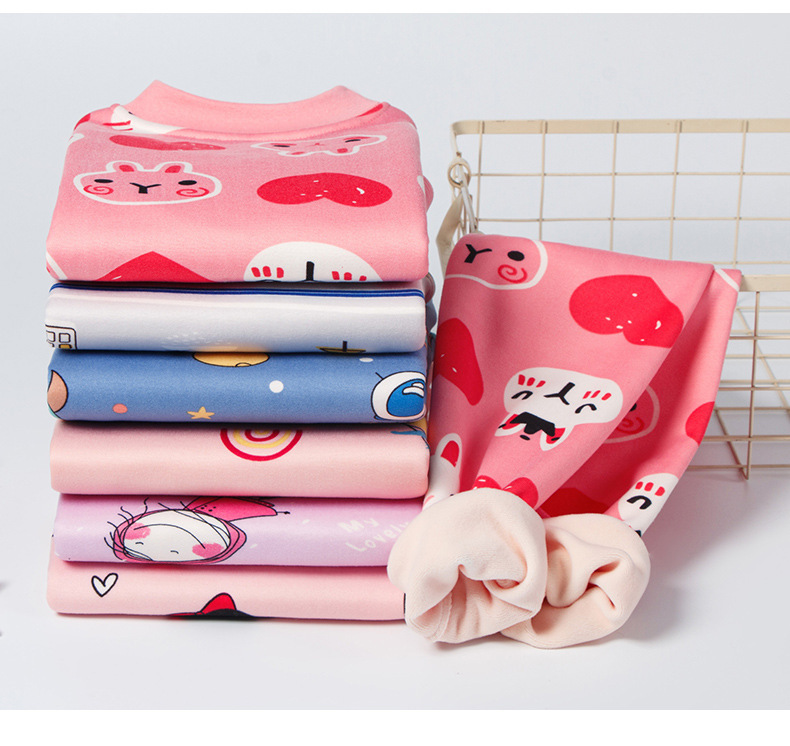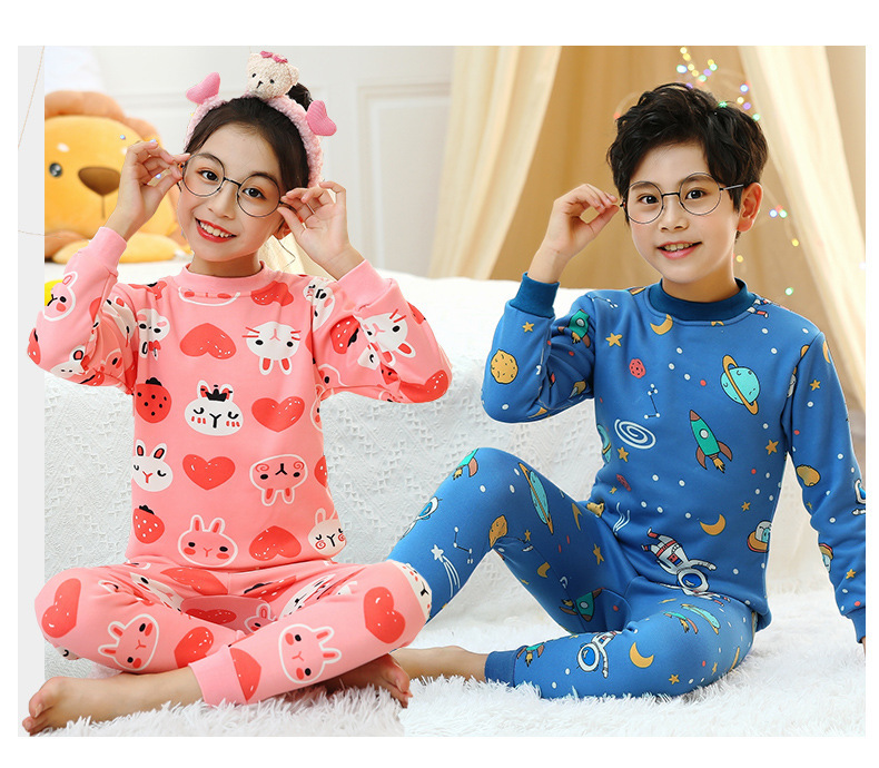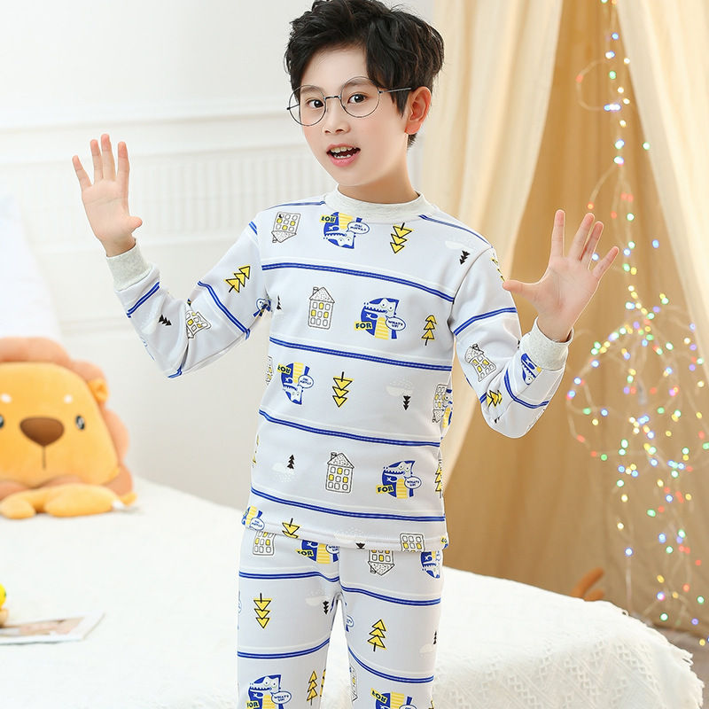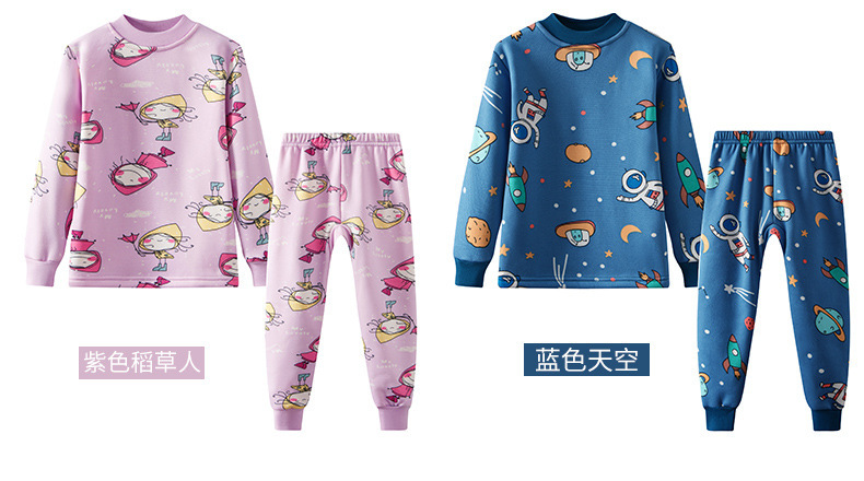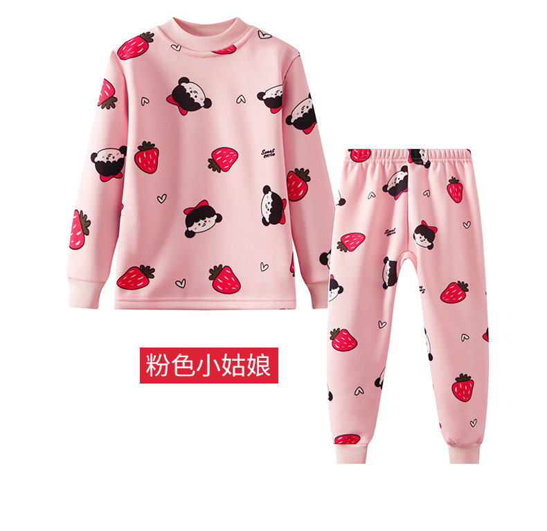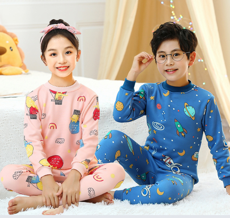 H2024秋冬儿童加绒加厚秋衣秋裤中小男童女童中领打底保暖内衣套