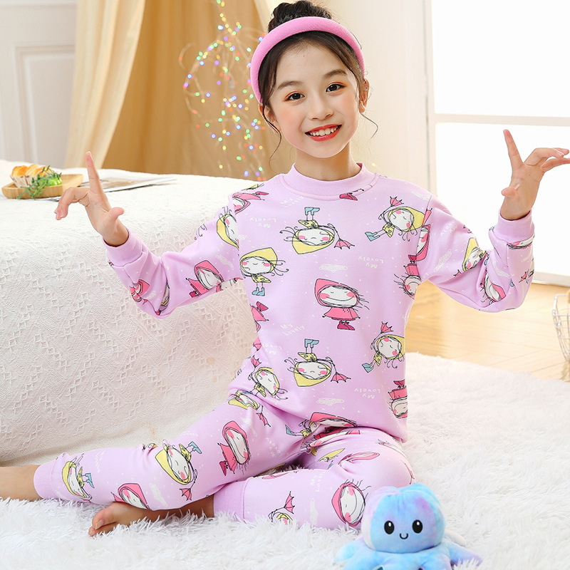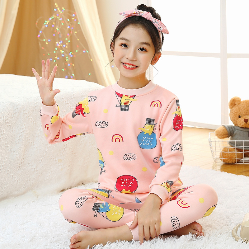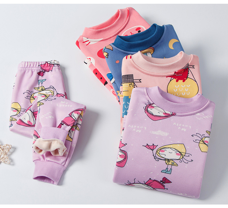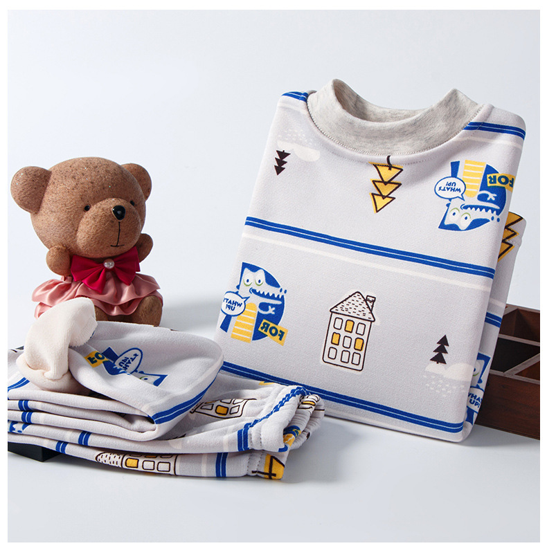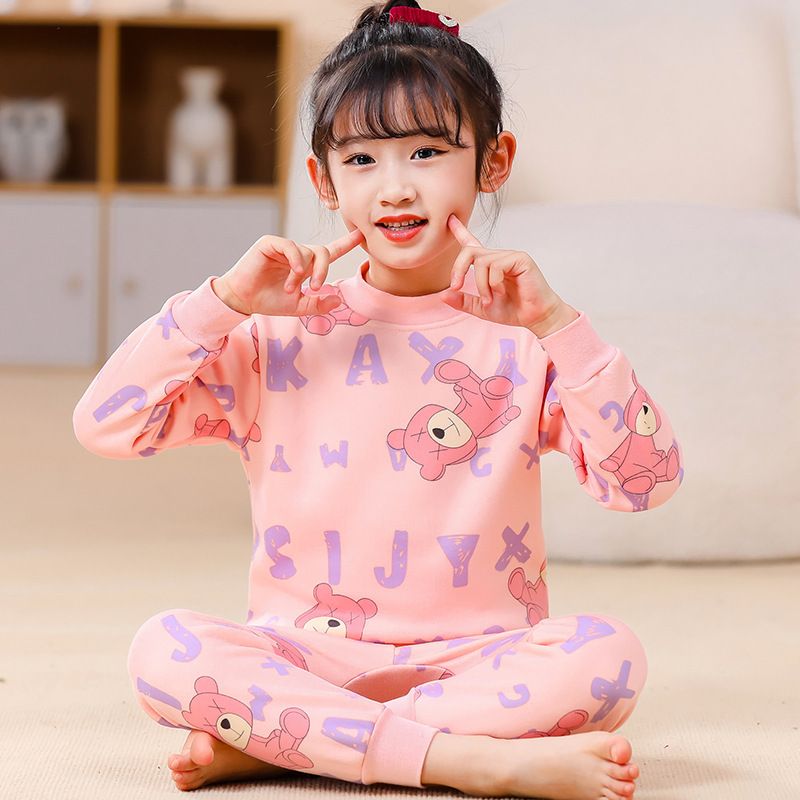2024 가을/겨울 어린이 기모 소년 소녀를위한 두꺼운 가을 옷과 바지 중간 칼라베이스 따뜻한 속옷 세트