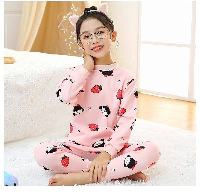 2024 가을/겨울 어린이 기모 소년 소녀를위한 두꺼운 가을 옷과 바지 중간 칼라베이스 따뜻한 속옷 세트스토어 가기