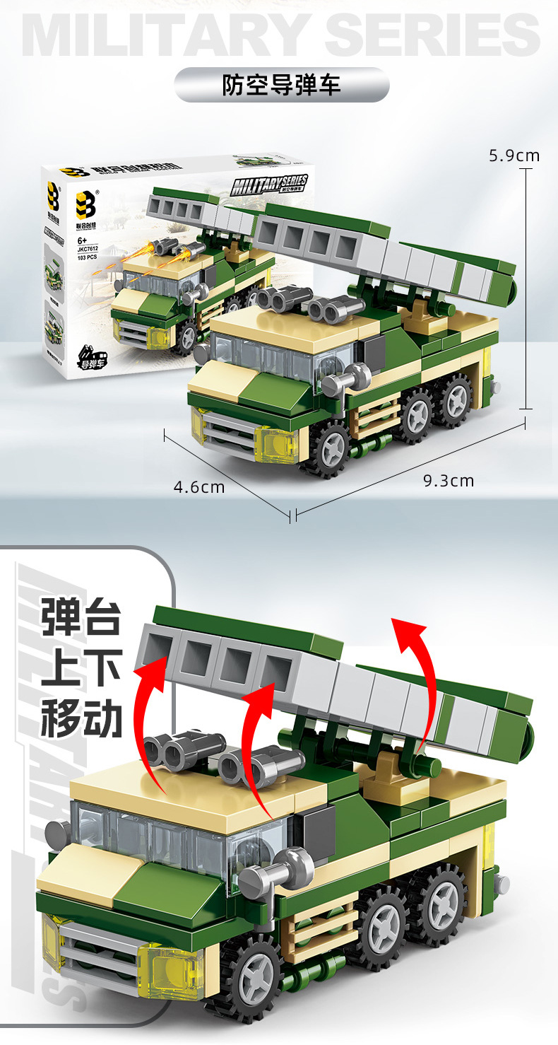 유나이티드 크리에이티브 밀리터리 시리즈 JKC7612 대공 미사일 차량 조립 장난감 블록 교육용 도매 및 배송