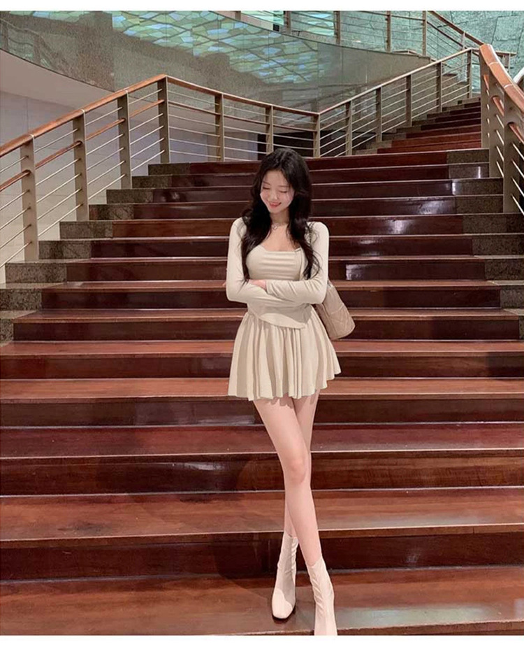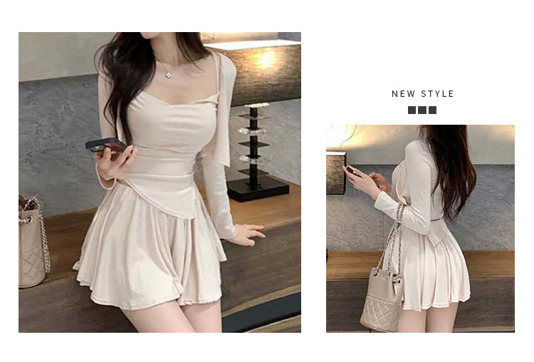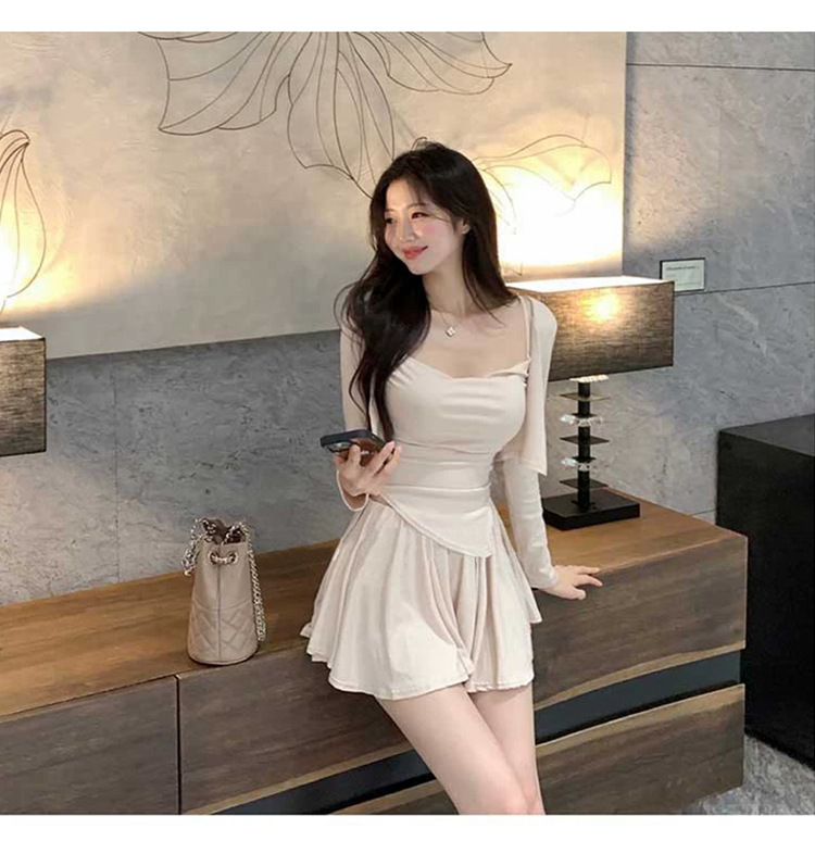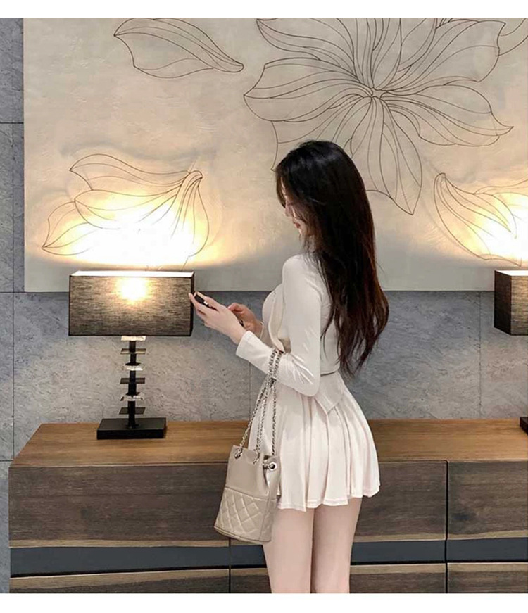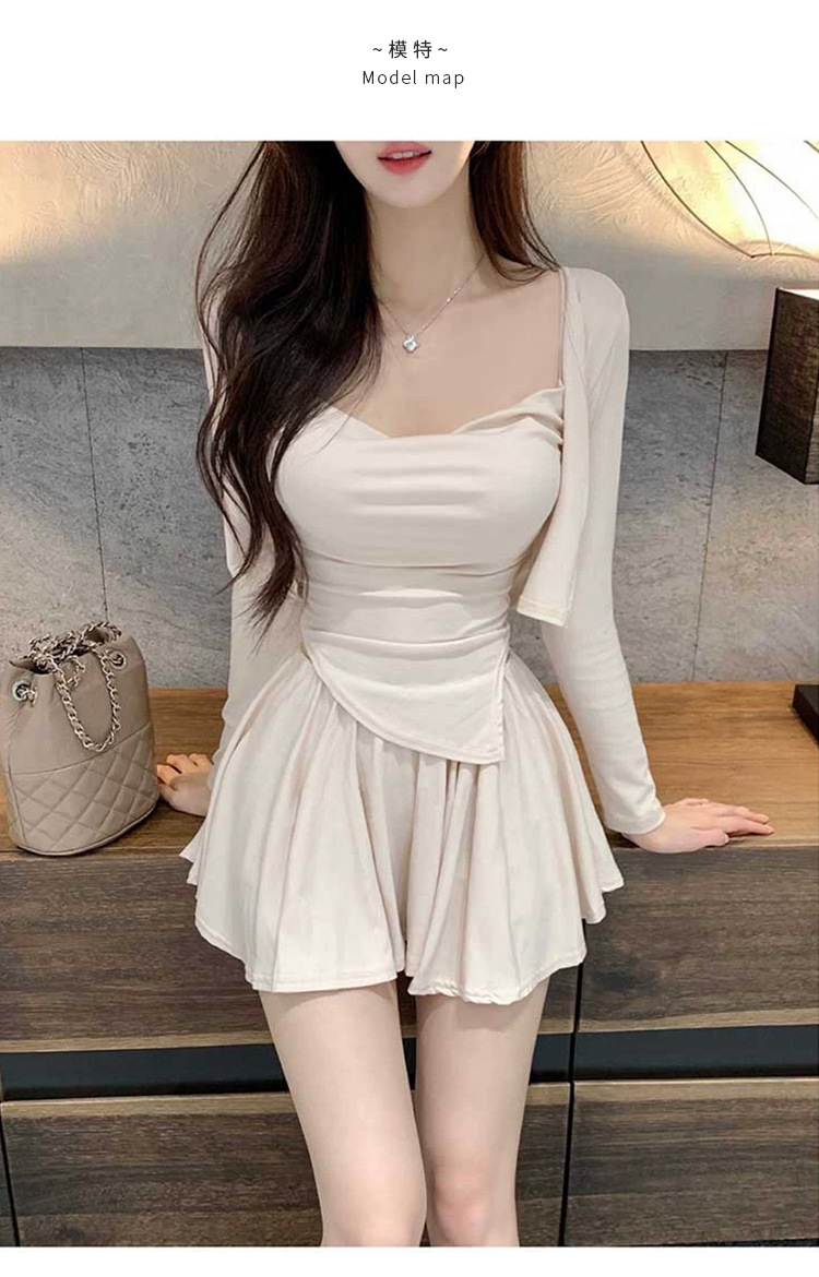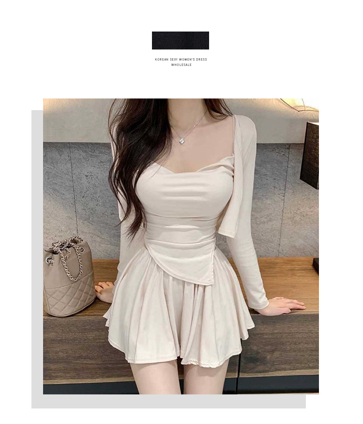 한국 동대문 우아한 섹시 스윙 칼라 스트랩 긴 소매 짧은 카디건 스커트 3 피스 세트 여성스토어 가기