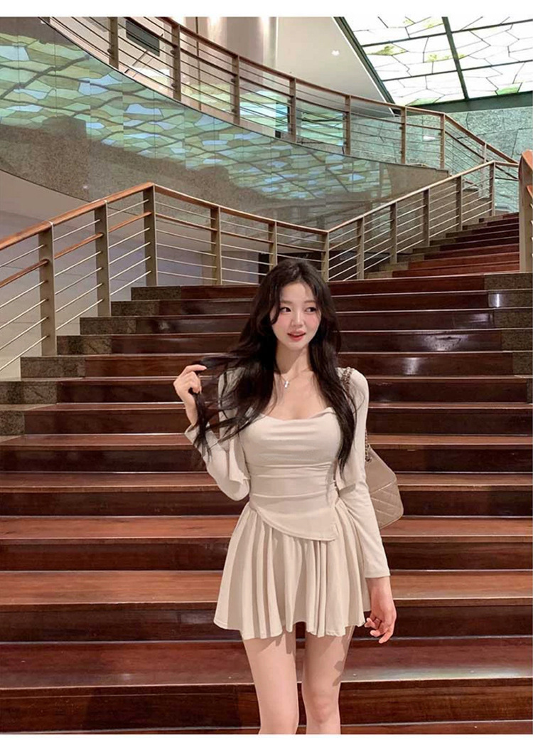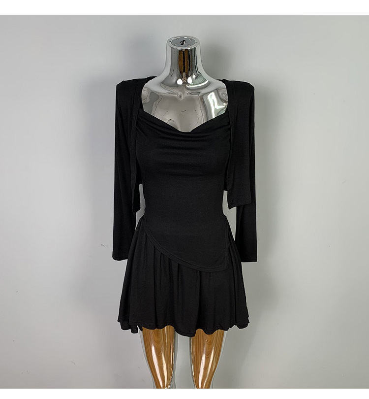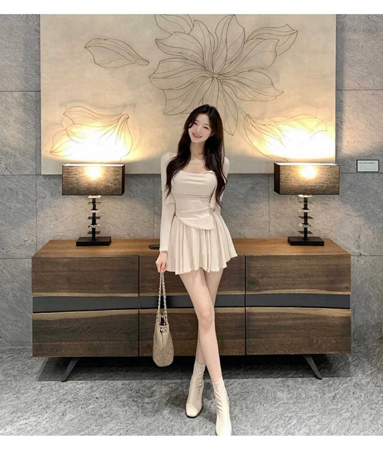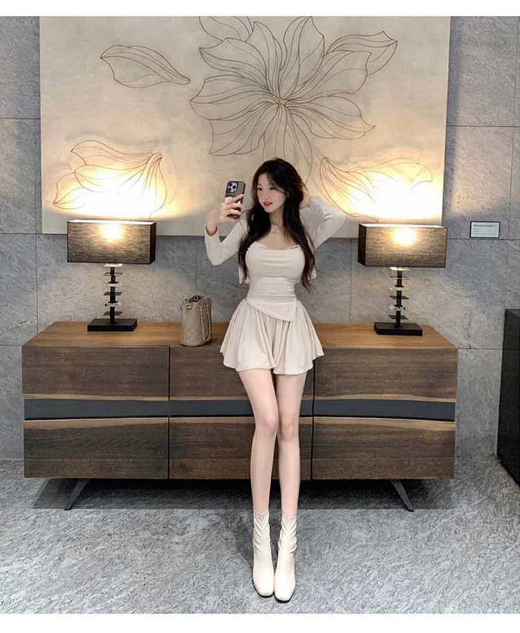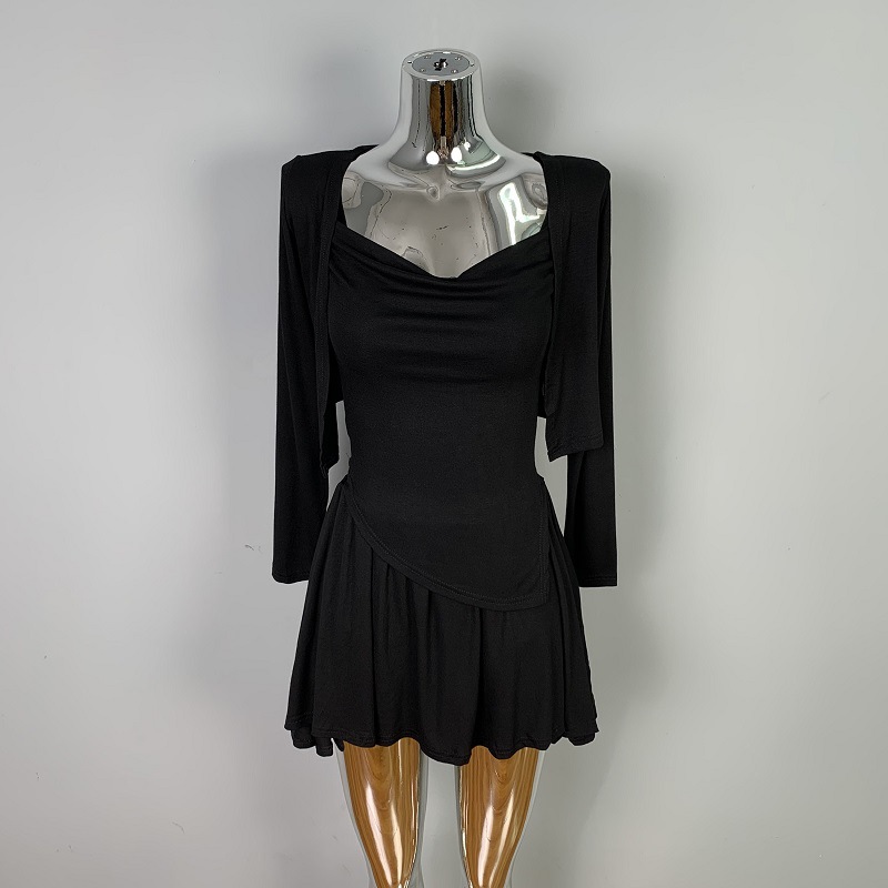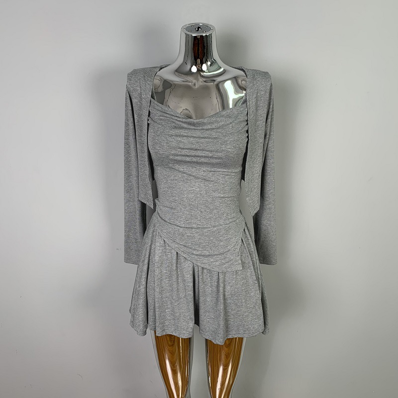 한국 동대문 우아한 섹시 스윙 칼라 스트랩 긴 소매 짧은 카디건 스커트 3 피스 세트 여성스토어 가기
