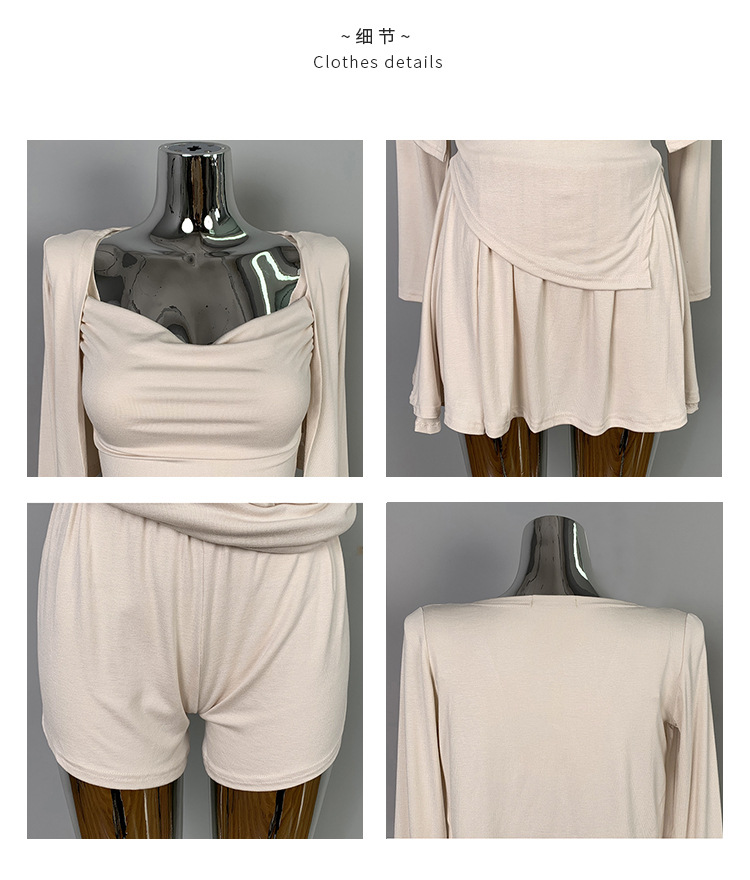 한국 동대문 우아한 섹시 스윙 칼라 스트랩 긴 소매 짧은 카디건 스커트 3 피스 세트 여성