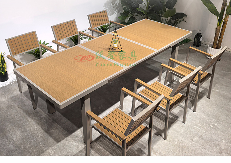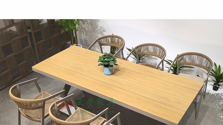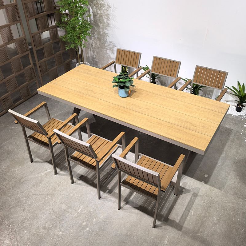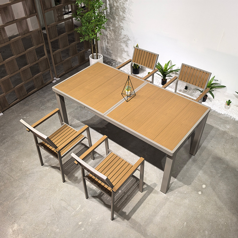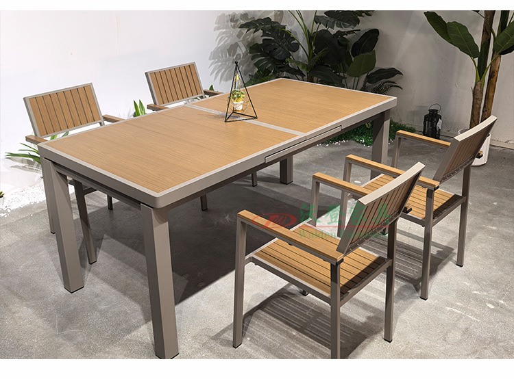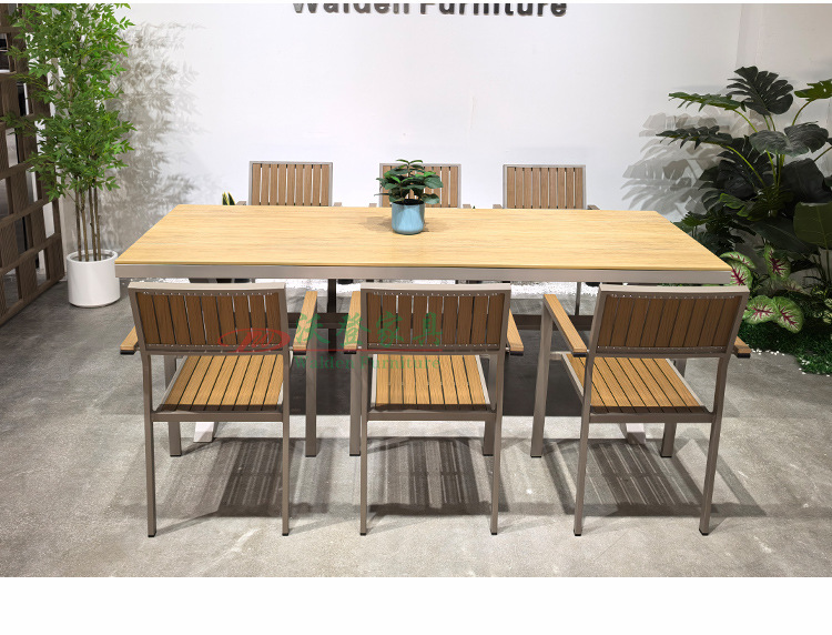 야외 모조 나무 테이블과 의자 발코니 정원 방수 선 스크린 테라스 우유 차 가게 카페 야외 식탁 및 의자 조합