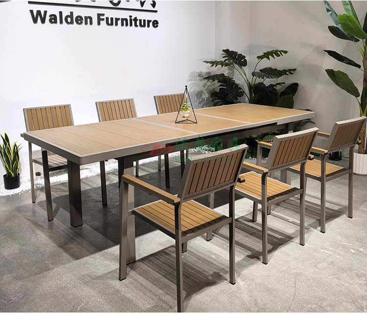 야외 모조 나무 테이블과 의자 발코니 정원 방수 선 스크린 테라스 우유 차 가게 카페 야외 식탁 및 의자 조합스토어 가기