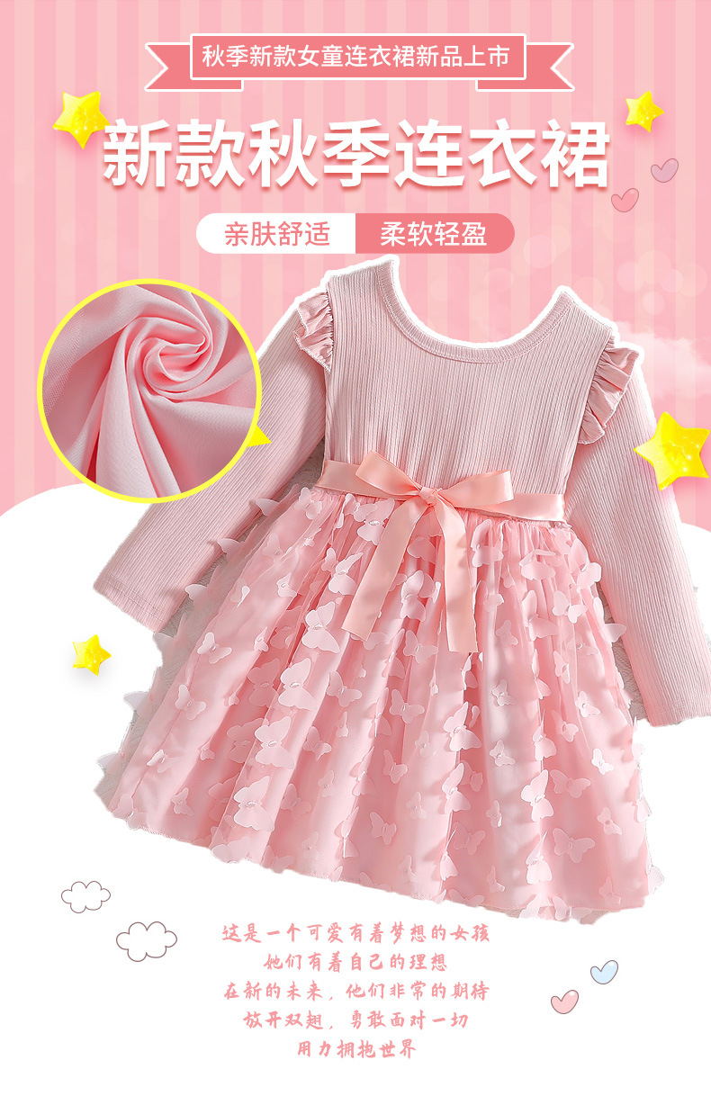아마존 해외 독립 홈페이지 2026 가을 겨울 여아용 입체 나비 장식 스윗 메쉬 벨트 긴팔 원피스스토어 가기