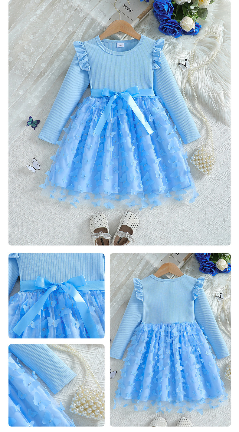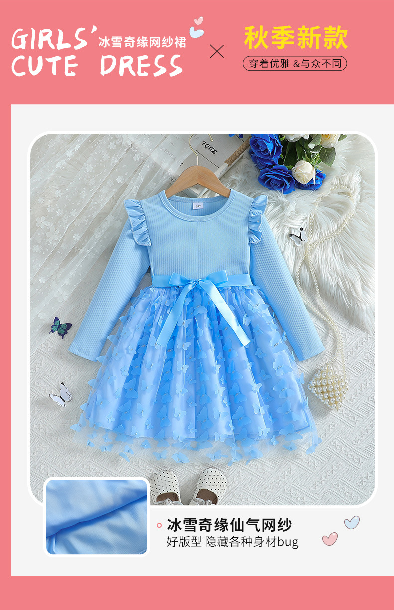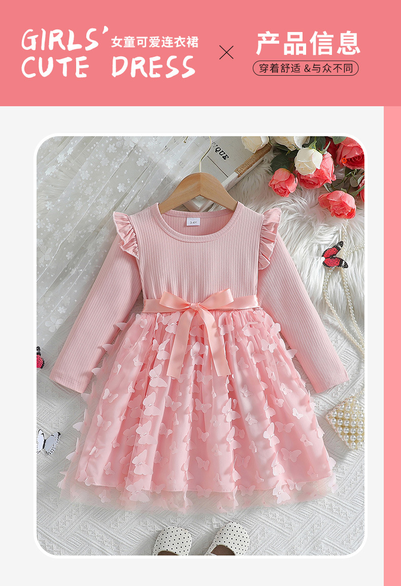 아마존 해외 독립 홈페이지 2026 가을 겨울 여아용 입체 나비 장식 스윗 메쉬 벨트 긴팔 원피스