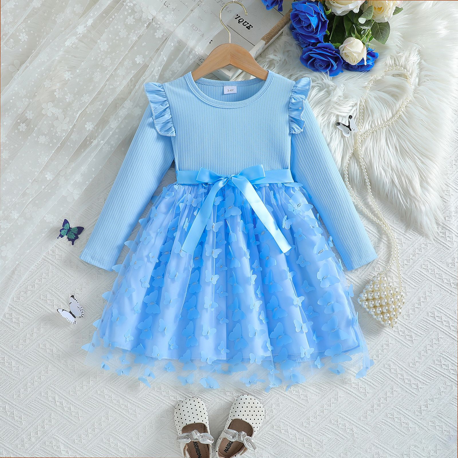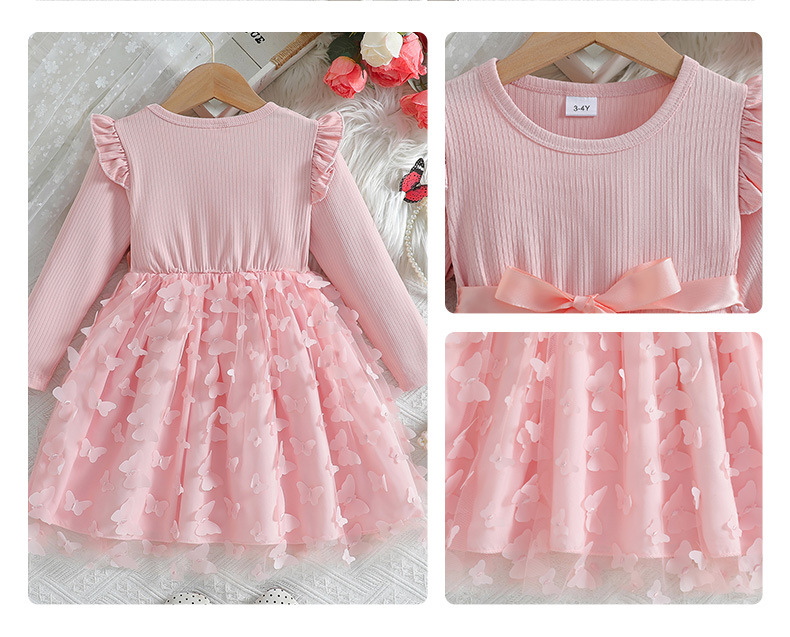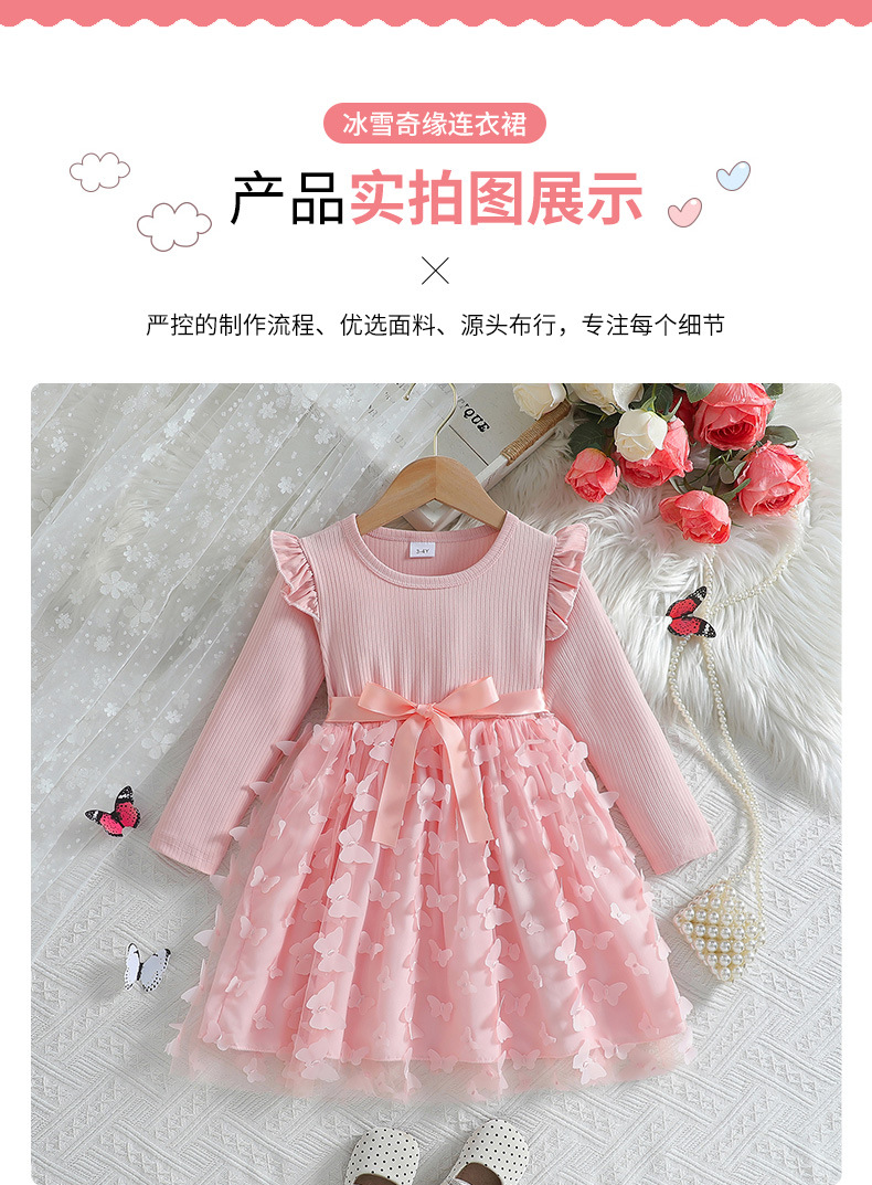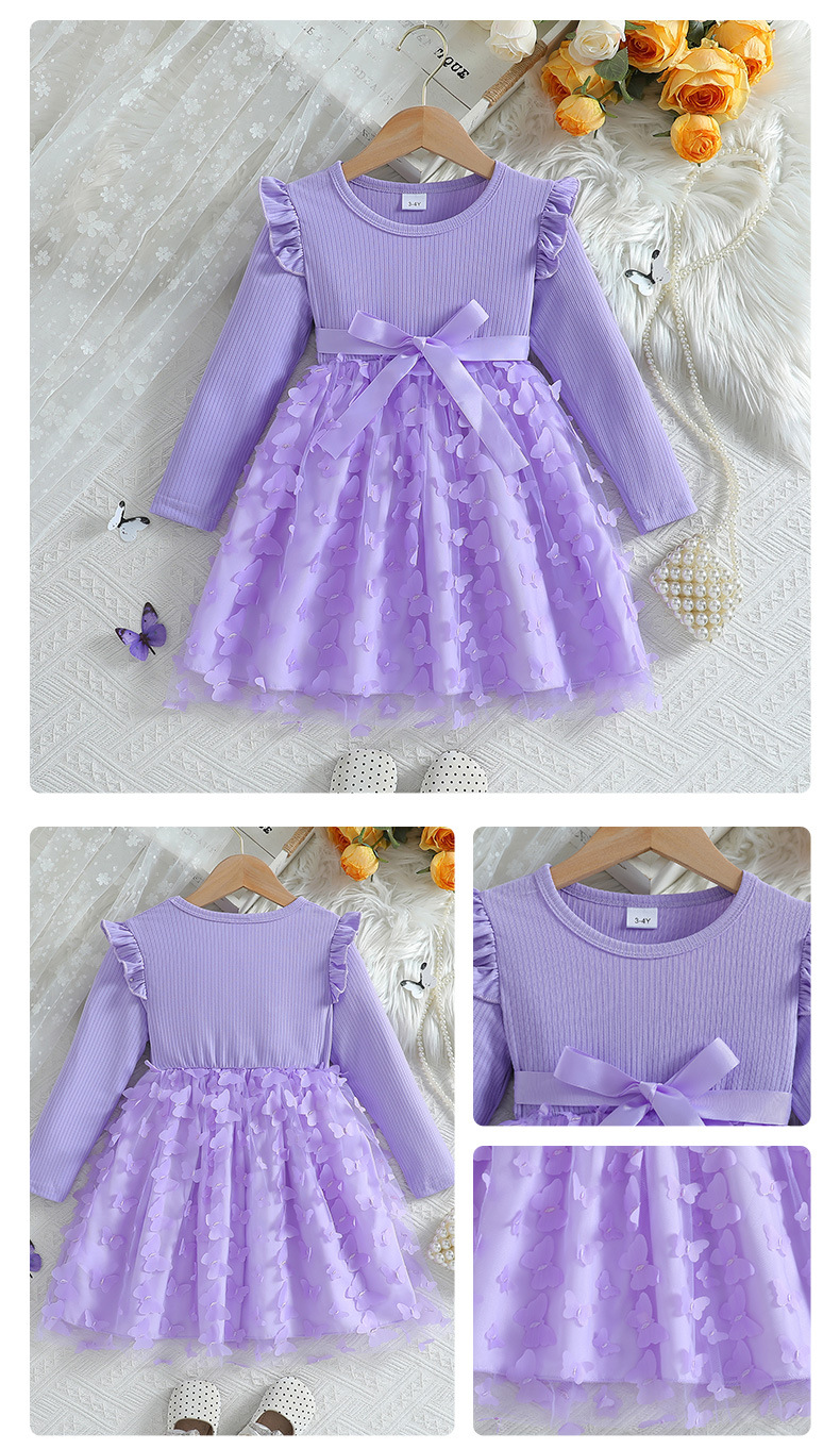 아마존 해외 독립 홈페이지 2026 가을 겨울 여아용 입체 나비 장식 스윗 메쉬 벨트 긴팔 원피스