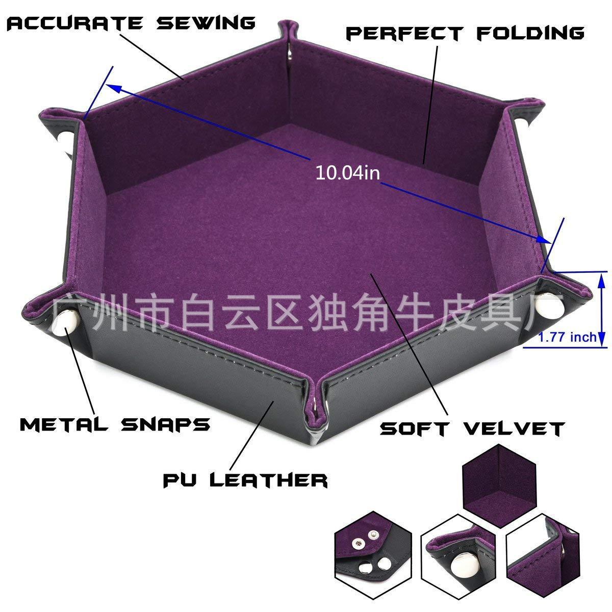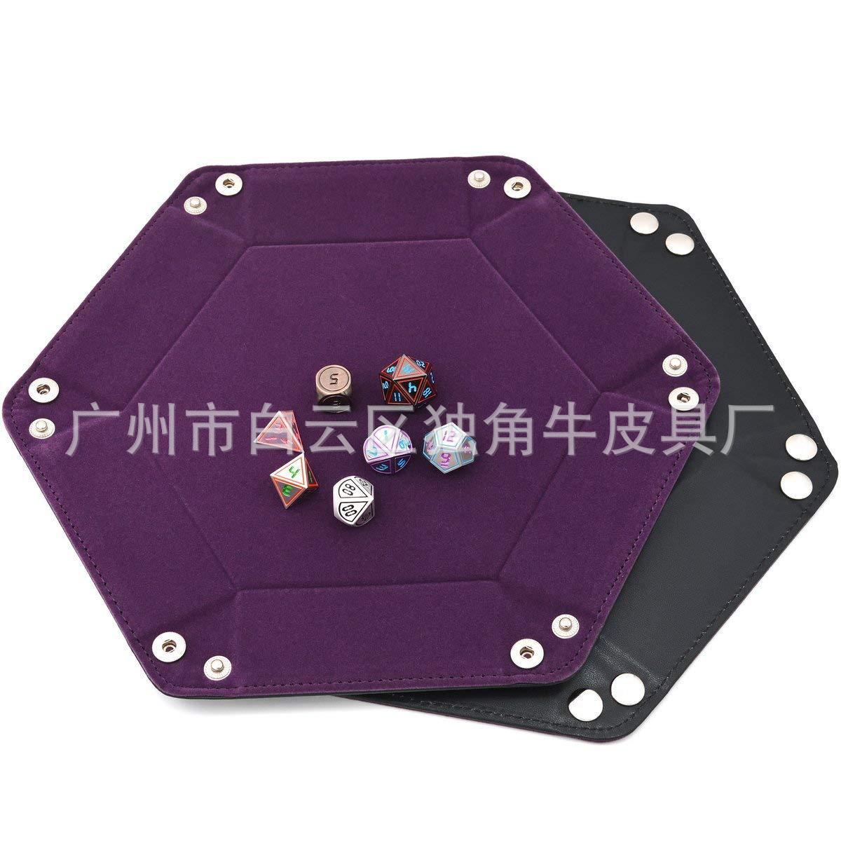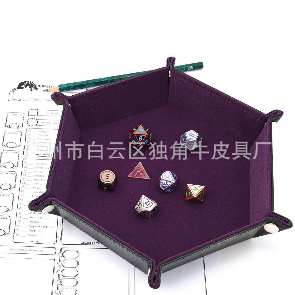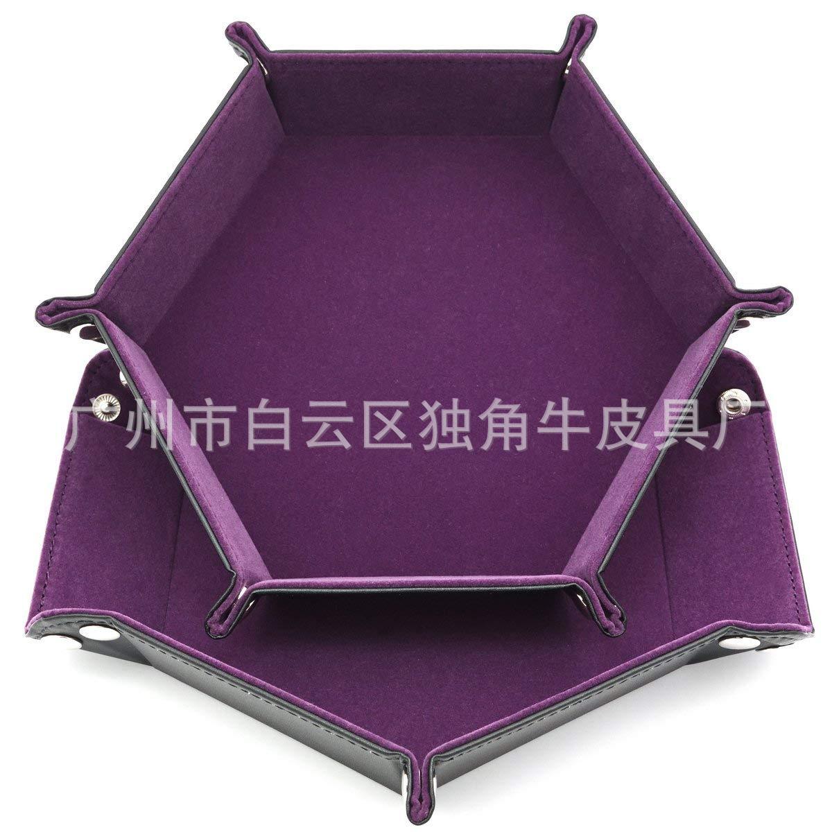 고급 가죽 육각형 보라색 플란넬 접이식 스토리지 랙 데스크탑 게임 주사위 가죽 스토리지 트레이 맞춤형스토어 가기
