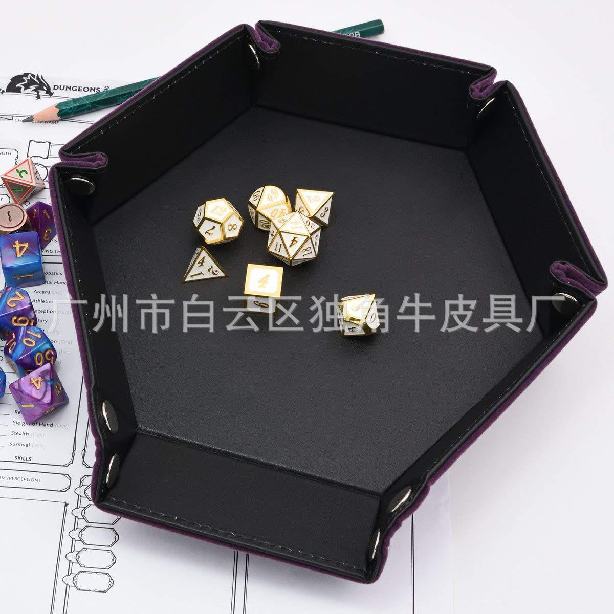 고급 가죽 육각형 보라색 플란넬 접이식 스토리지 랙 데스크탑 게임 주사위 가죽 스토리지 트레이 맞춤형