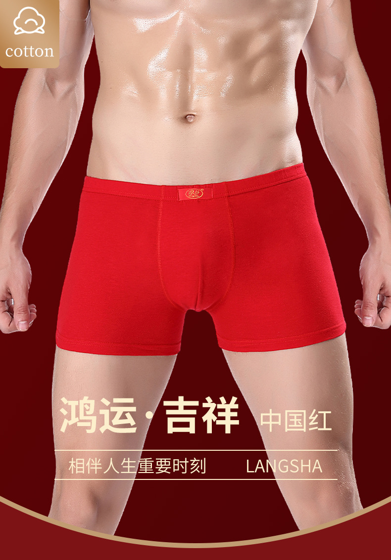 Longsha Benmingnian Red 속옷 남성용 순수 코튼 드래곤 Year Red Boxers 소년을위한 통기성 짧은 속옷스토어 가기