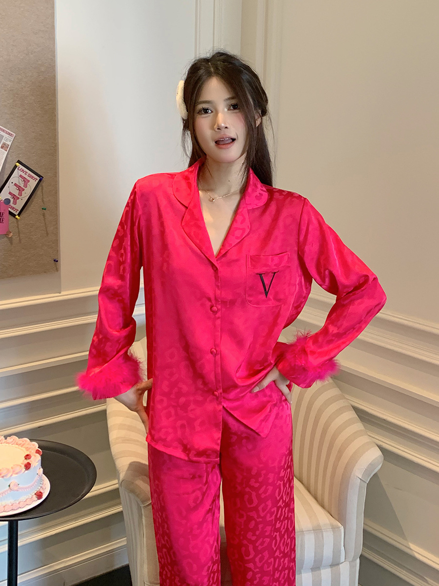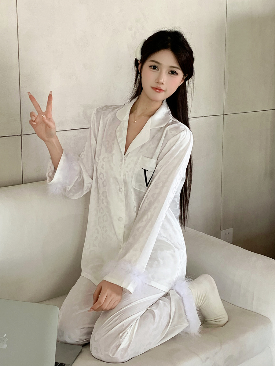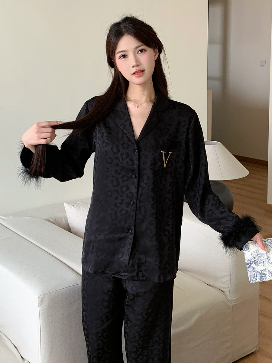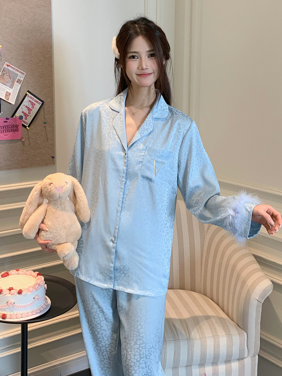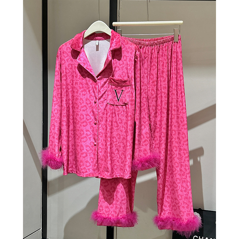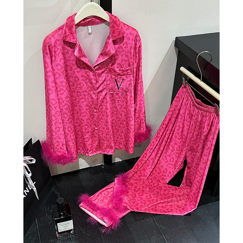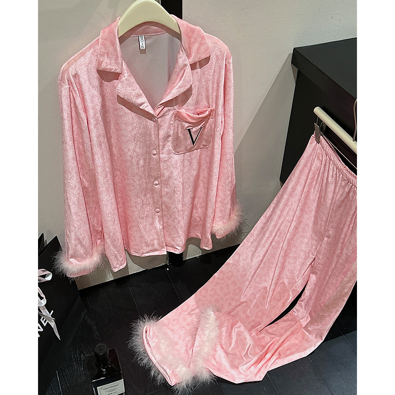 레오파드 깃털 가벼운 고급 고급 고급 파자마 여성 가을과 겨울 골드 벨벳 긴 소매 편안한 홈 의류 세트