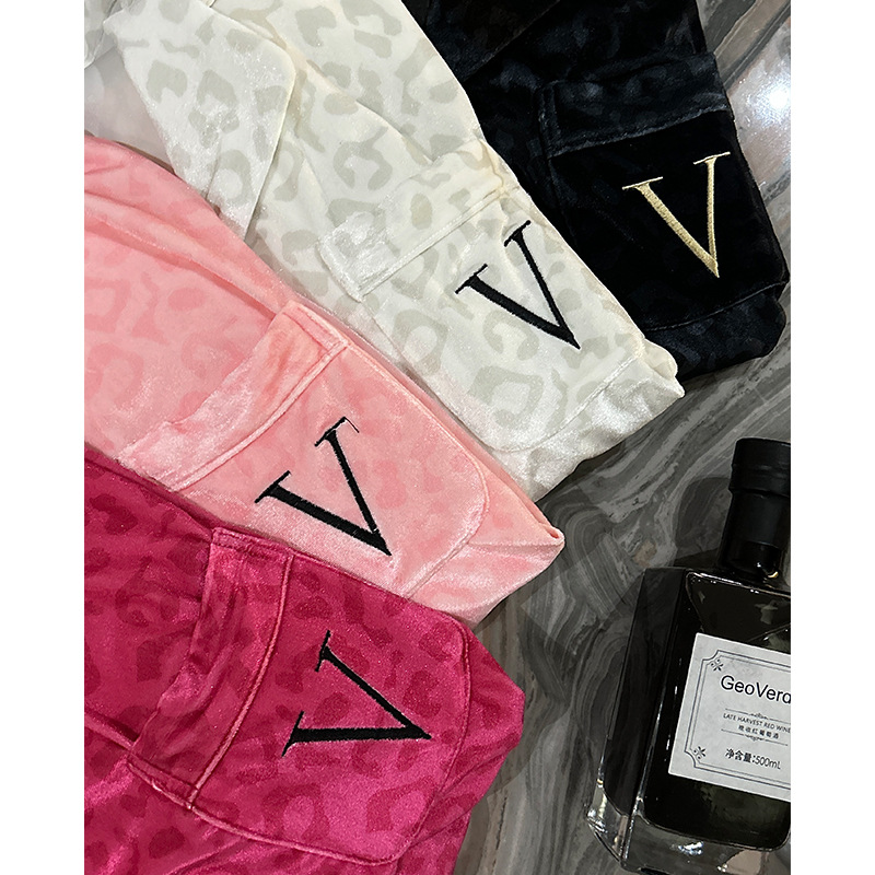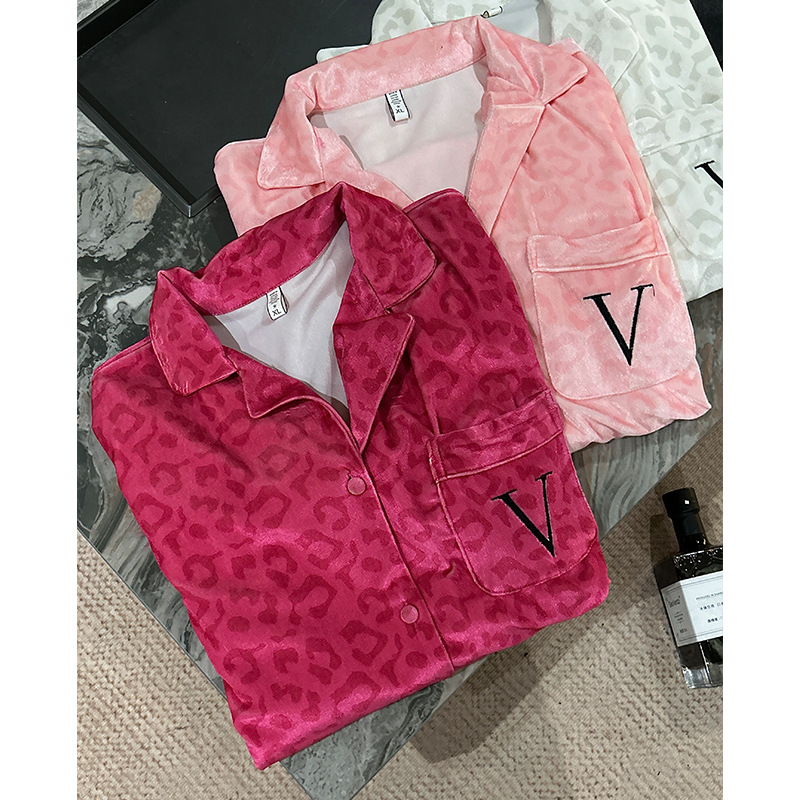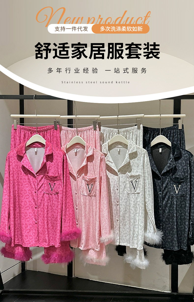 레오파드 깃털 가벼운 고급 고급 고급 파자마 여성 가을과 겨울 골드 벨벳 긴 소매 편안한 홈 의류 세트스토어 가기