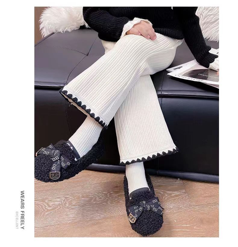 • 화이트 - 심플 쉘 엣지 [후리스] 부츠컷 팬츠