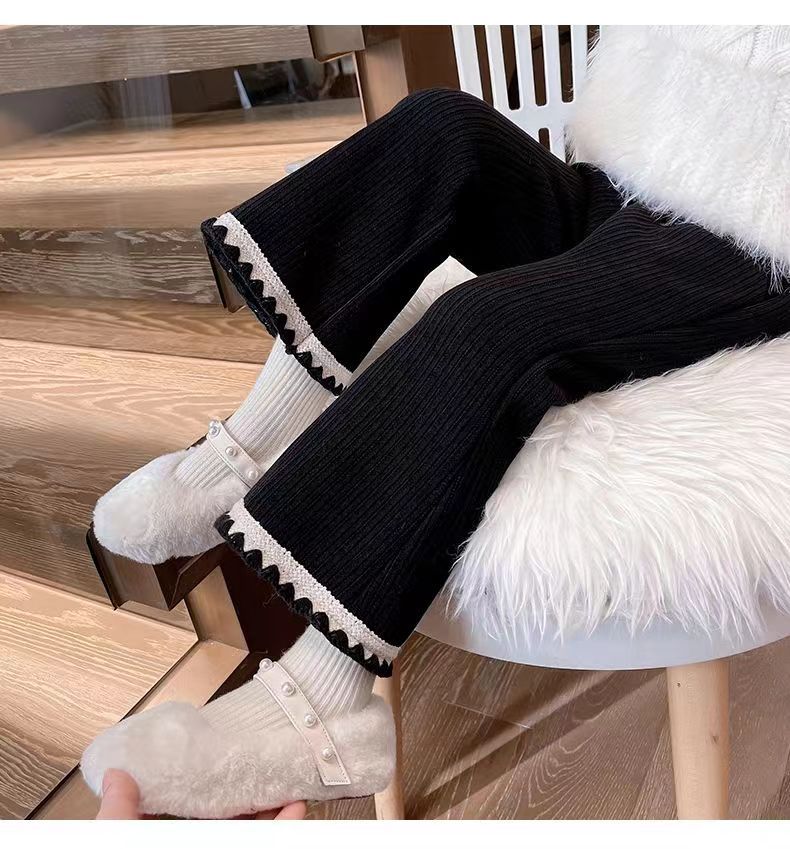 여자 새 가을과 겨울 2025 간단한 꽃 바지 서양식 캐주얼 바지 아기 여성 올매치 한국식 와이드 다리 바지 바지스토어 가기