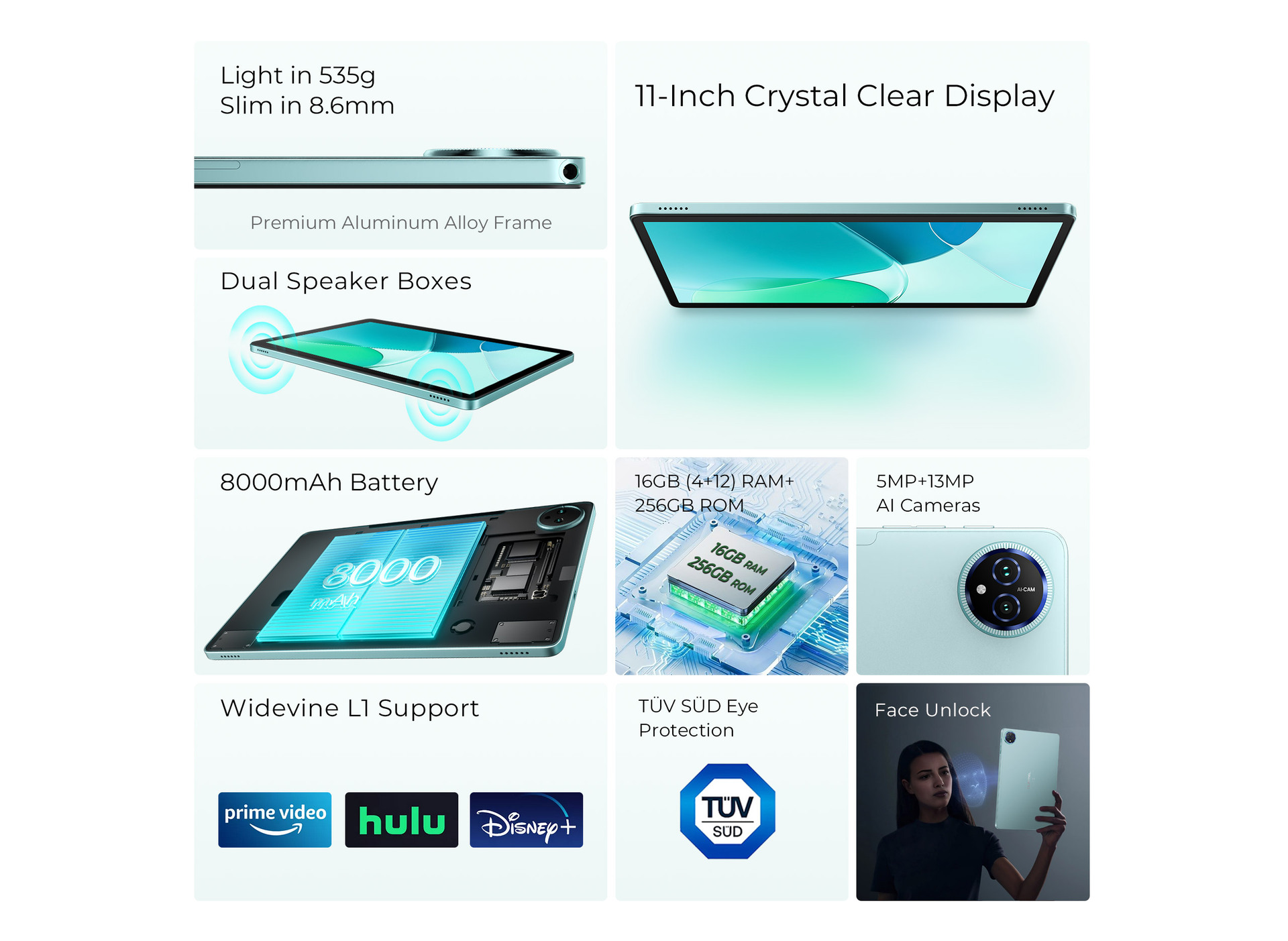 Ochi OT12 11 "4GB 256GB 8000mAh 안드로이드 14 태블릿 홍콩