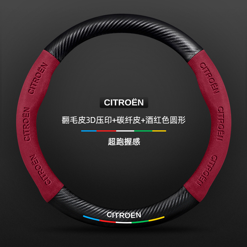 • 스웨이드 3D 엠보싱 + 탄소섬유 가죽 + 버건디 라운드 + 라벨 없음 [시트로]