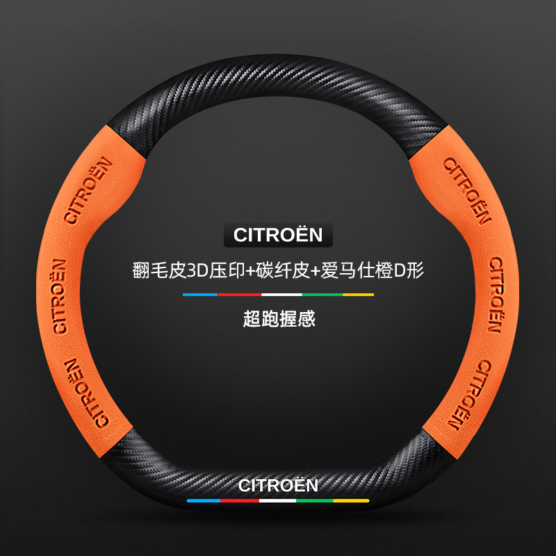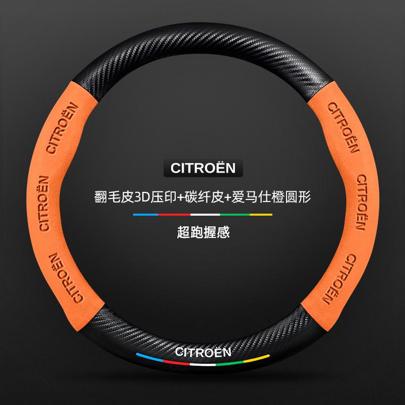 • 스웨이드 3D 엠보싱 + 탄소섬유 가죽 + 에르마스 오렌지 라운드 + 라벨 없음 [시트로]