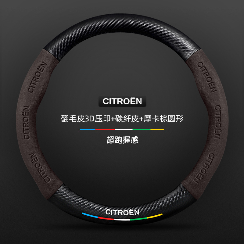 • 스웨이드 3D 엠보싱 + 탄소섬유 가죽 + 모카 브라운 라운드 + 라벨 없음 [시트로]